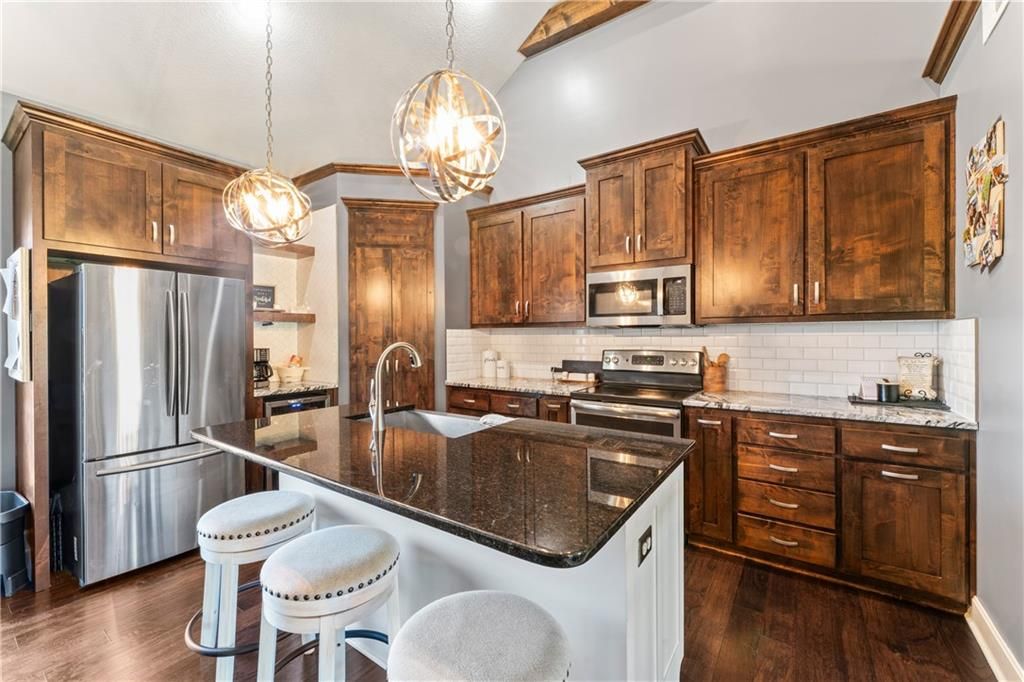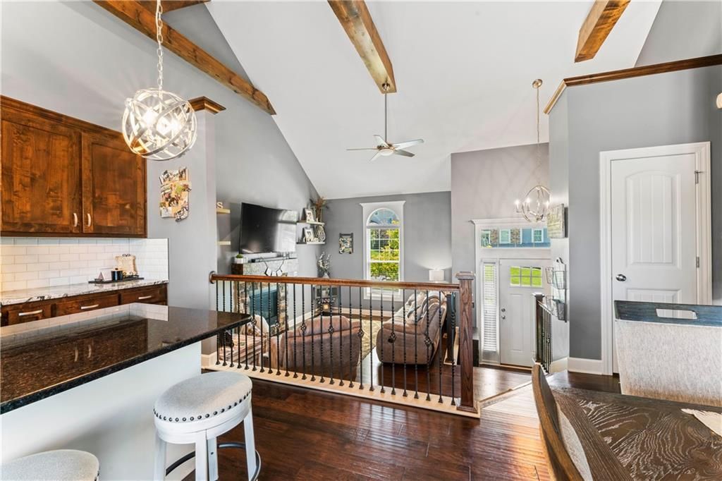 BIG PRICE DROP TO GET THIS HOME SOLD!! THIS HOME IS WAITING FOR YOU!! Welcome to this amazing home in a PERFECT location. You are mins from K10, perfect for that work commute. This home is a unique floor plan. "Front to back" However there are only 2 stairs to living room and then 3 to the kitchen. You are going to love this layout. This open floor plan is so perfect for entertaining. Kitchen is BEAUTIFUL and has upgrades you will love. Granite counters, walk in pantry, island and HUGE dining area. The wood beams on the ceilings give it the perfect touch. Cozy up in the living room w a nice warm fire. Primary Suite is HUGE w walk in closets. Primary bath features Large shower and a TUB. 2 other bedrooms up and full bath. Walk out basement features Large family room, 4th bedroom and full bath. Deck off the kitchen for your morning coffee looks over a AWESOME backyard that is fully fenced. Check out the measured floor plan included in the pictures. You will love this community!!!! Home also has a Large subbasement area for your storage needs.