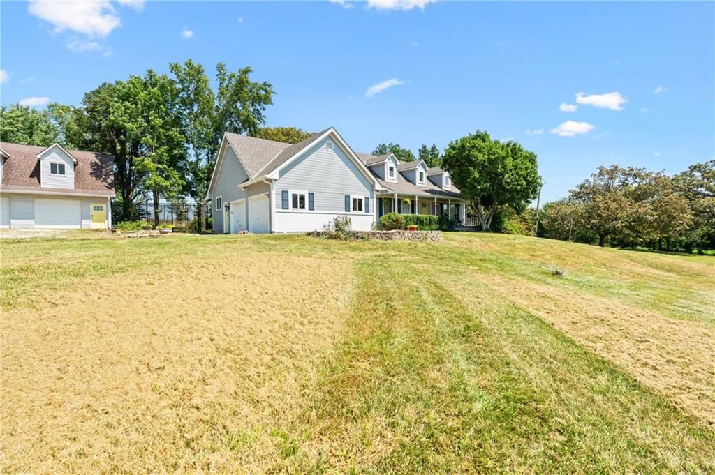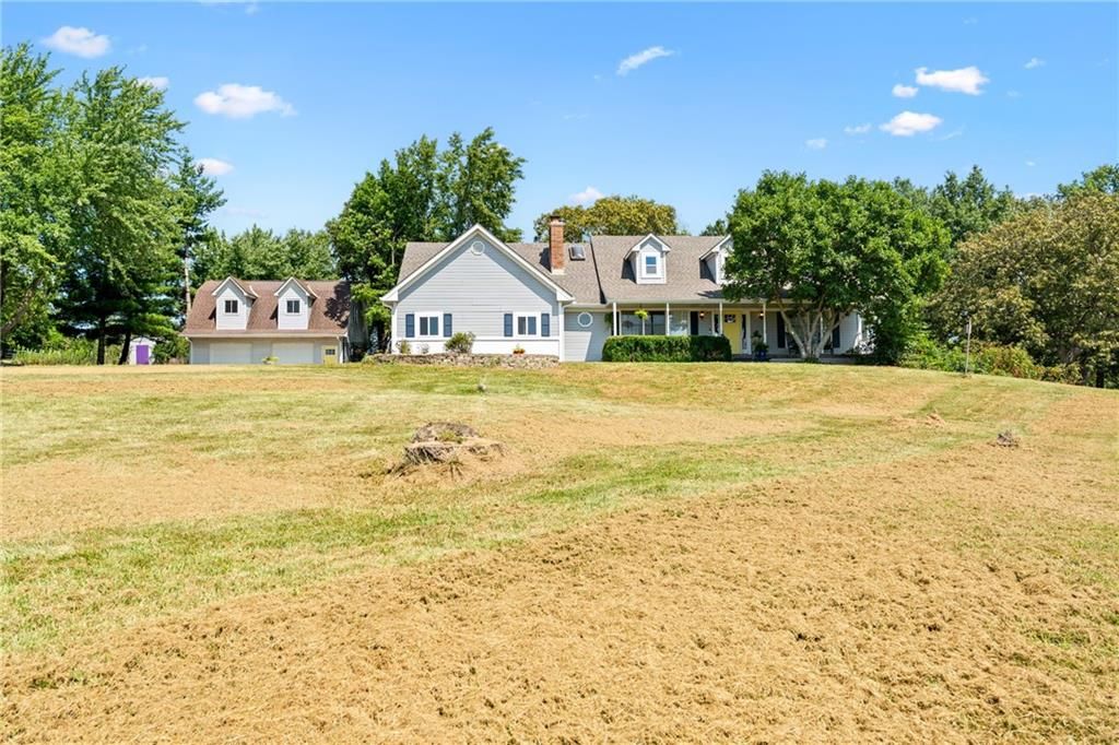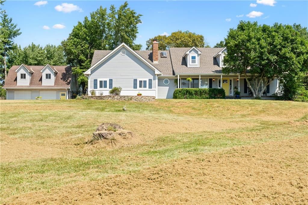 This property is magical and ready for its next chapter! 15+/- Acres of solitude, an updated house, 5 garages with 2 in a detached building with a huge unfinished loft. Non-Conforming 5th bedroom as well as a second full kitchen in the lower walkout. This home has fresh paint throughout, new kitchen and appliances, new zoned HVAC, newer roof, new flooring, a remodeled bathroom upstairs, and so much more! As soon as you step in from your covered front porch, you are greeted with a two-story foyer. Up the stairs takes you to two massive bedrooms and a full bathroom. The main floor offers you one-level living. Large and bright living room with a brick fireplace and stunning built-ins. Off the back is a new eat-in kitchen with island and space for a dining table. Through the new sliding glass doors, you will step onto a huge deck perfect for entertaining and fully fenced for those family pets while still enjoying the fields around you. The main floor also features a large formal dining room that will hold the entire family, a primary suite laundry room/mud room with cabinets. The lower level has a large family room, full kitchen, a non-conforming bedroom/office and a full new bathroom with a zero-entry shower. There is still finishable shop space and a walk-out with another garage. The detached 2-car garage was built in 2000 and is 32'x29' and has dedicated electrical. The huge loft upstairs could be finished into more living space/apartment with dormers or NEVER run out of storage space. This secluded home sits back from the road giving you a full 360 of privacy. The possibilities are endless!