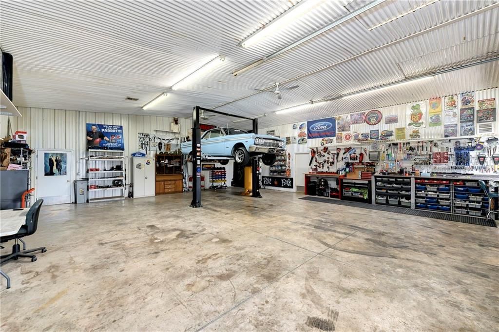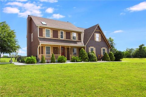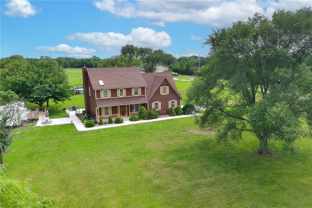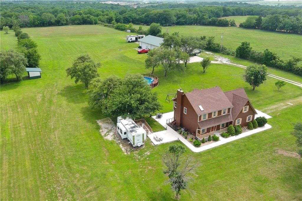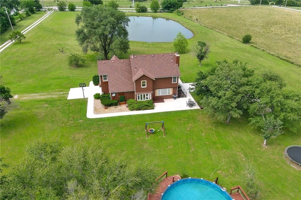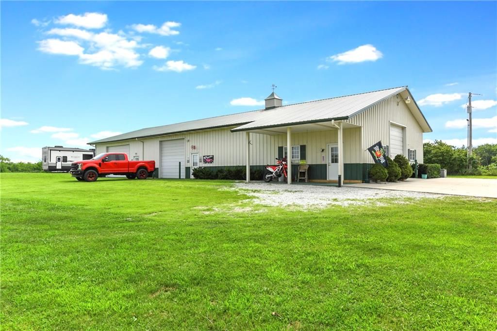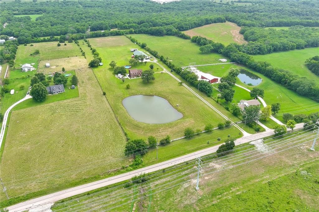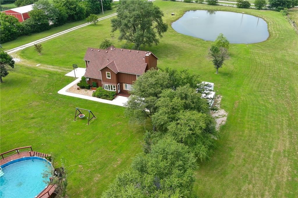 Versatile Estate with 4,400 Sq. Ft. Morton Building on 10 Scenic Acres in DeSoto, KS Unlock the potential of this exceptional property - perfect for entrepreneurs, hobbyists, or anyone seeking space to live, work, and play. Set on 10 gently rolling acres, this gated estate offers a mix of open pasture, mature trees, and a peaceful stocked pond. The land is well-suited for livestock, gardening, recreational use, or future outbuildings - giving you room to grow and the flexibility to create your vision. The standout feature is the impressive 4,400 sq. ft. Morton building, complete with heat, AC, a loft, and a full bath with a whirlpool tub. Whether you're running a small business, storing equipment, restoring cars, or simply need serious workshop space, this structure offers unmatched versatility. The two-story home combines modern comforts with country charm, featuring granite countertops, hardwood floors, and a spacious layout with four bedrooms and four bathrooms. Outside, enjoy serene views, a sparkling pool, and mature fruit trees that add to the estate's character and functionality. Located just minutes from K-10, this unique property blends rural tranquility with easy city access - ideal for work-from-home lifestyles or business operations.