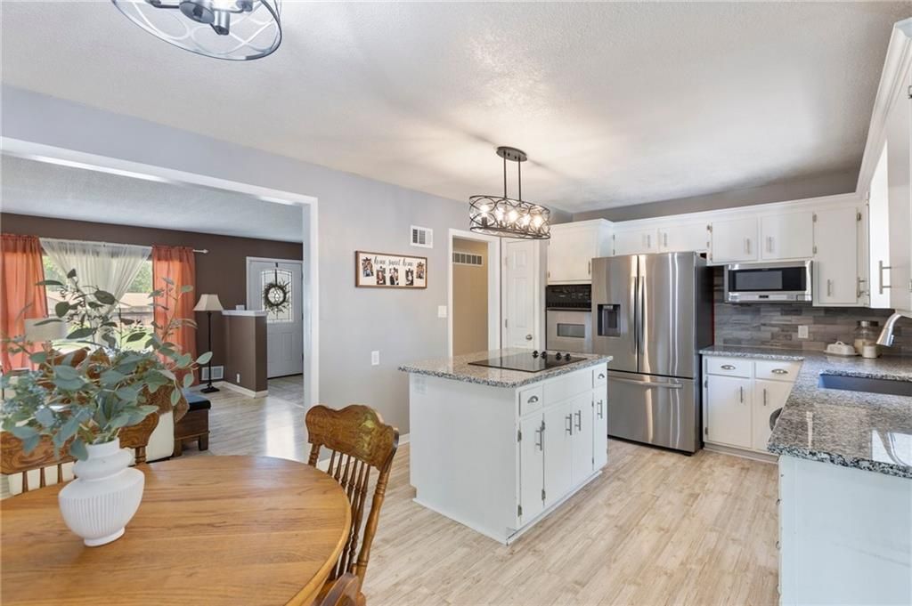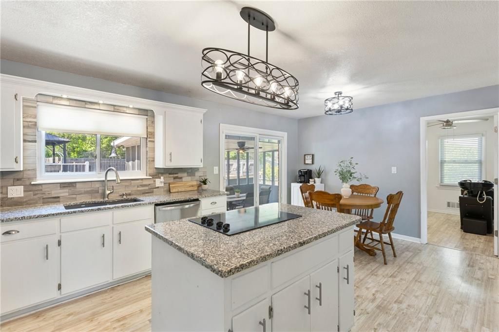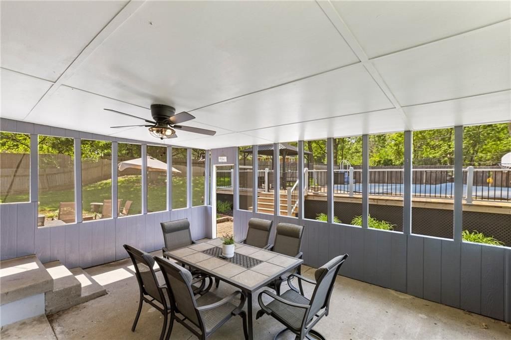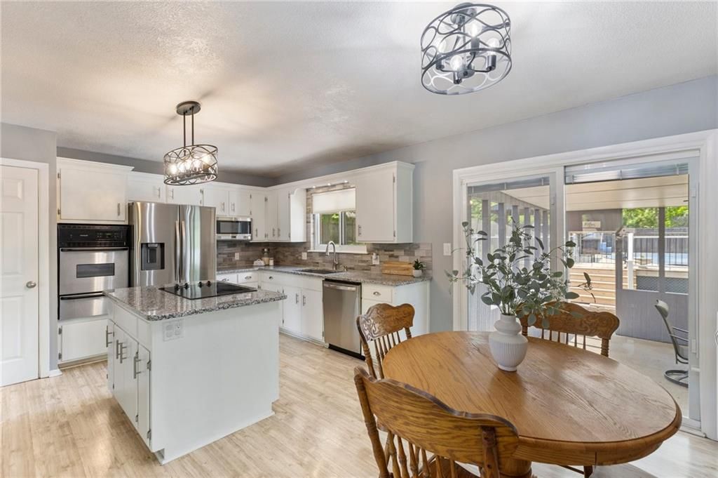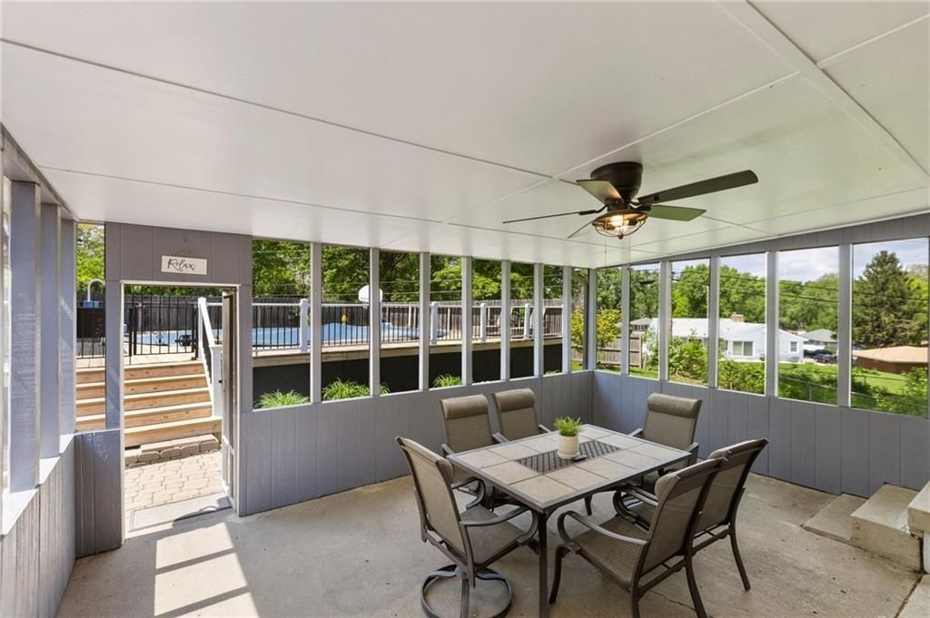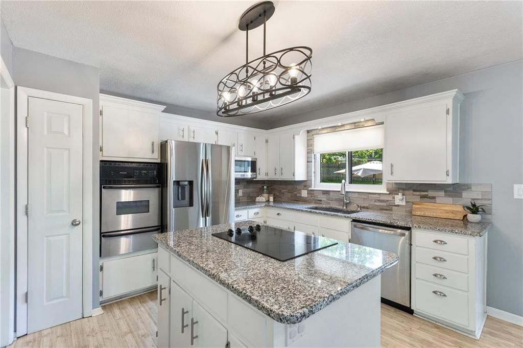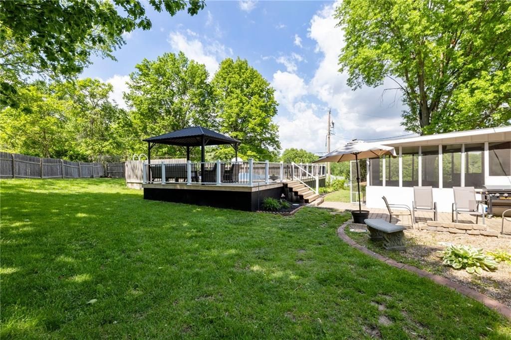 Multiple offers received. Offer deadline is 8 PM, May 19 for this Gorgeous, Move-In Ready Home - Ideal for Entertaining and Summer Living! This beautifully maintained, spacious home is perfect for hosting and relaxing all season long. Enjoy a bright and inviting front living room with newer windows that let in abundant natural light. The kitchen is a chef's delight, featuring granite countertops, a large sink, pantry, and a center island with cooktop. A versatile room just off the kitchen and dining area can serve as a home office, oversized pantry, kids' playroom or is currently outfitted as a salon with plumbing already installed. Step out to your private summer retreat - complete with a screened-in back porch, expansive deck, charming gazebo, and a luxurious pool, all set in a fenced backyard oasis. The primary suite boasts a walk-in closet and a private full bath. Two other bedrooms and a full bath are conveniently on the main floor. Downstairs, the finished basement includes a flexible bonus room - ideal as a non-conforming 4th bedroom, home gym, recreation area, or guest suite. The oversized two-car garage offers built-in workbenches and ample storage space. Nestled on a generous cul-de-sac lot in a friendly neighborhood near shopping, groceries, and sports venues, and a short drive under 12 miles to Kansas City's vibrant downtown, this home truly has it all. Start enjoying unforgettable summer gatherings in your incredible backyard paradise!