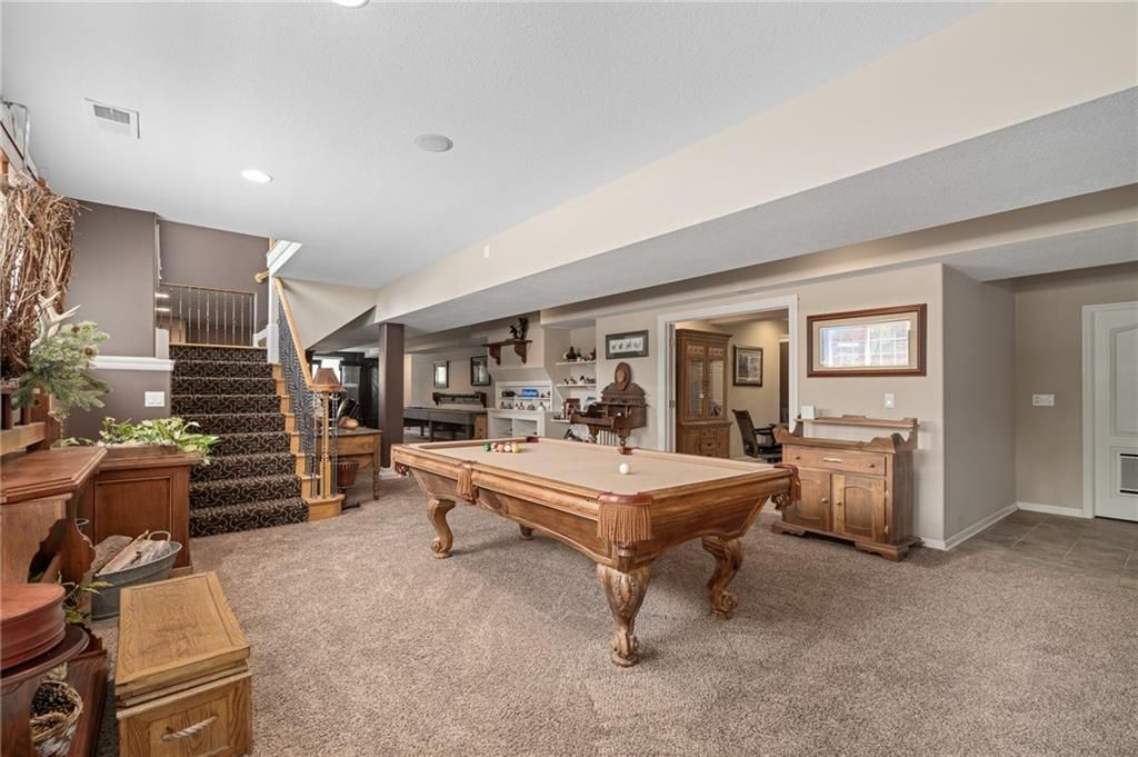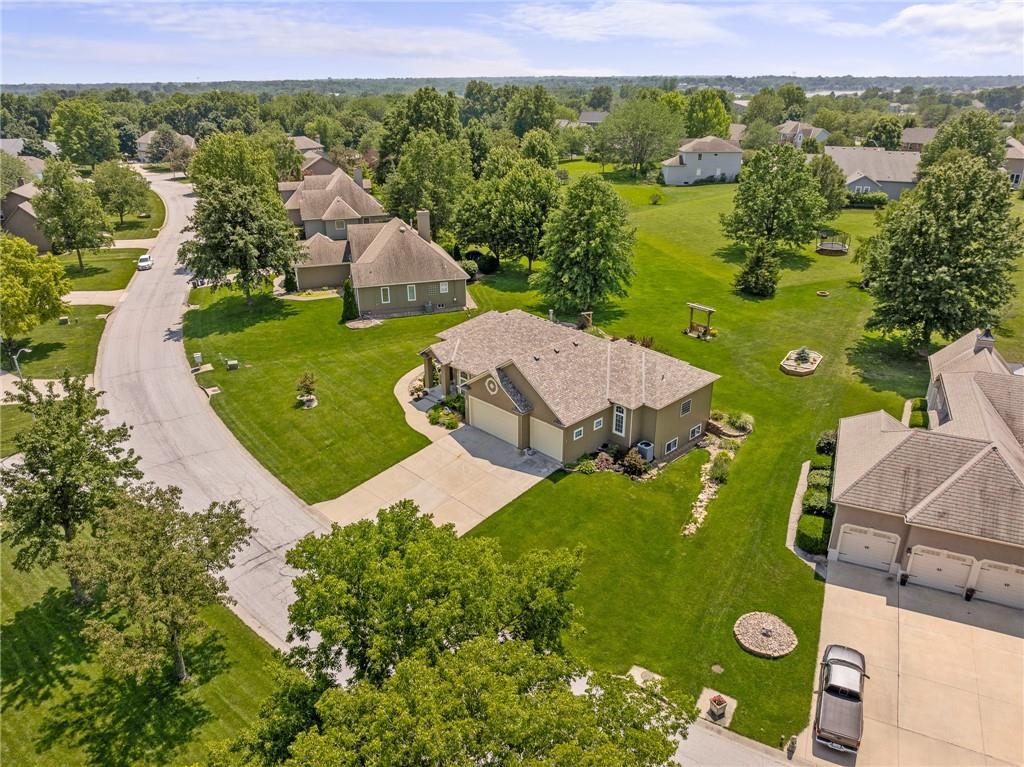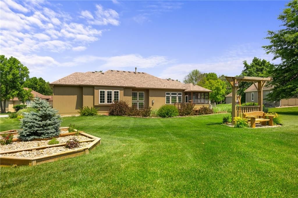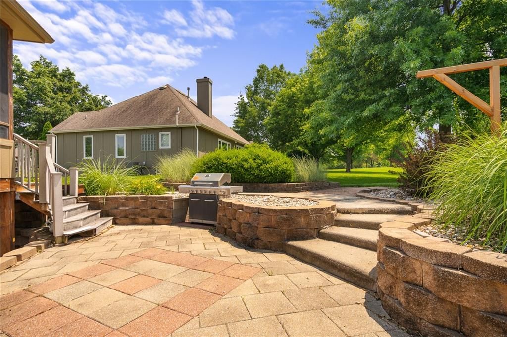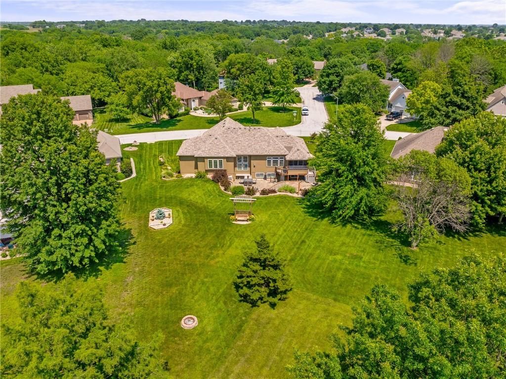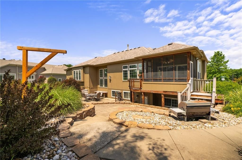 Stunning Reverse 1.5 Story in Lee's Summit - A True Entertainer's Dream! Welcome to this gorgeous, meticulously maintained home in the heart of Lee's Summit! This spacious reverse 1.5 story beauty offers effortless main-level living with main level primary suite, laundry room, and half bath, perfectly blending comfort and functionality. Step inside to find a private office just off the entry - ideal for remote work or a quiet reading space. The open-concept kitchen and living room create a warm and inviting atmosphere, filled with natural light and anchored by a cozy fireplace. The kitchen boasts abundant cabinet space, an island, walk-in pantry, and enjoy an eat-in kitchen and formal dining area - perfect for family meals and entertaining alike. The primary suite is a luxurious retreat, featuring double vanities, separate shower and tub, and a huge walk-in closet with built-ins and a bonus desk/vanity area - perfect for getting ready or a little extra workspace. Downstairs, the expansive walk-up basement offers endless possibilities with a family room, rec room, two additional bedrooms, and a full bathroom. You'll also find a bonus room (ideal for a gym or playroom), theater room for family movie nights, a mall workshop, and extra storage - truly something for everyone! Enjoy the outdoors with a screened-in deck off the dining room and walk down to a huge courtyard-style patio that's perfect for hosting guests or relaxing evenings under the stars. The in-ground sprinkler system and heated driveway add to the ease of maintenance and year-round comfort. Major updates include a newer roof and HVAC (4 years old) and a 1-year-old water heater - move in with peace of mind! Easy access to highway, and close to shopping, dining, and the Shamrock Hills Golf Club. This home checks every box - space, updates, location, and thoughtful design throughout. Come fall in love with your next home in Lee's Summit!