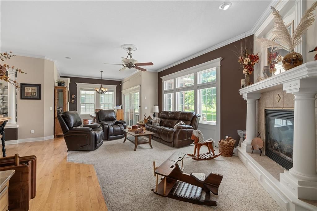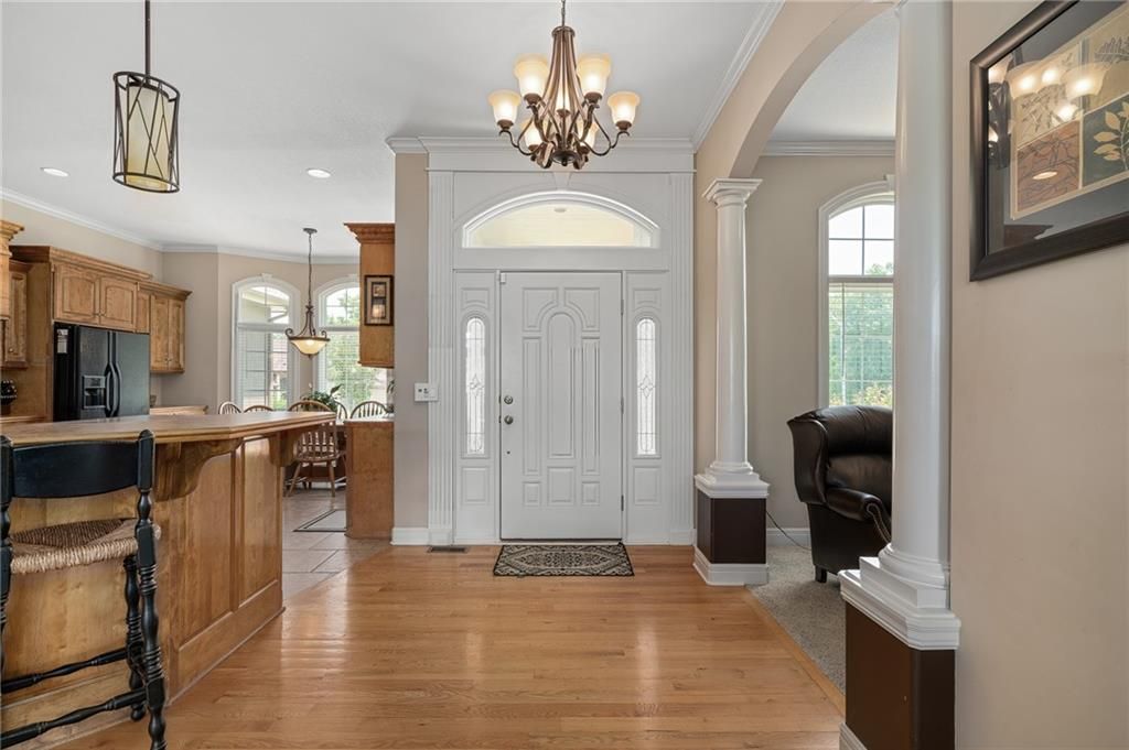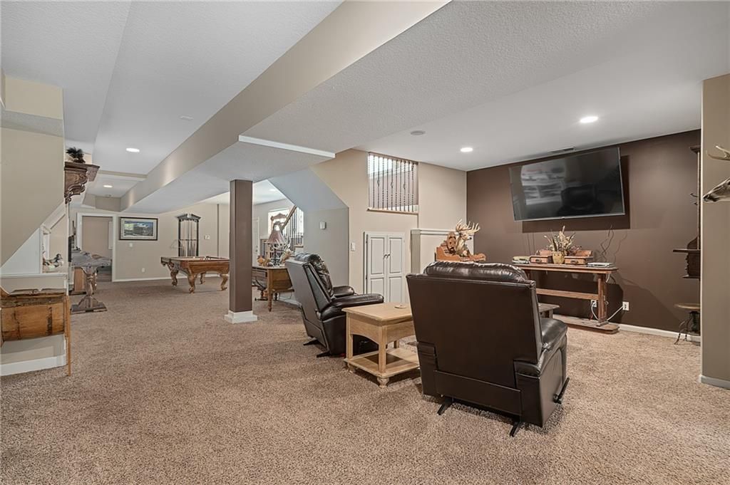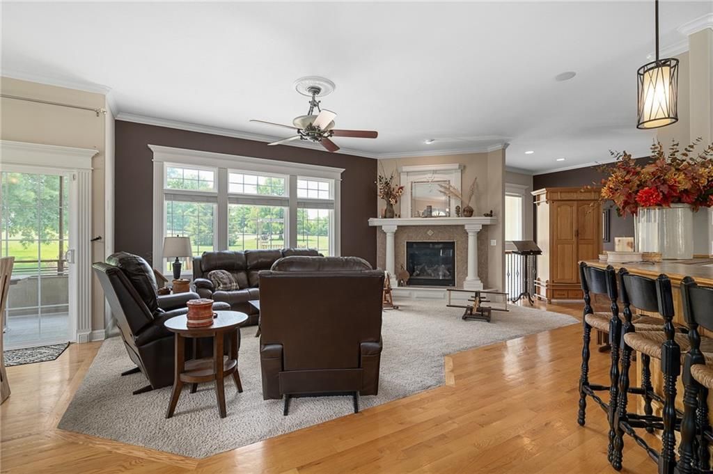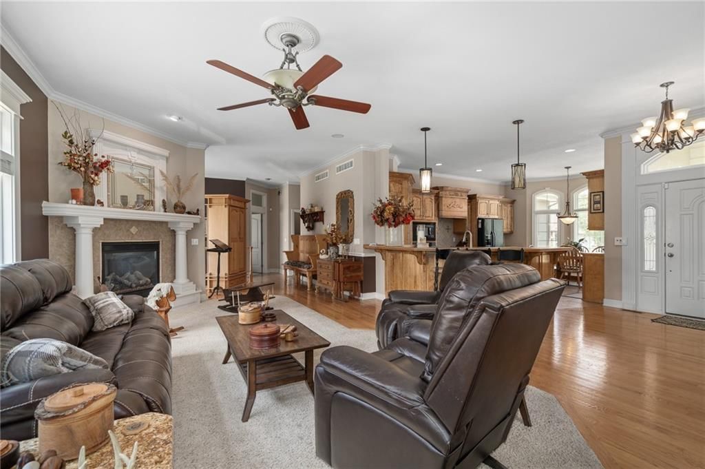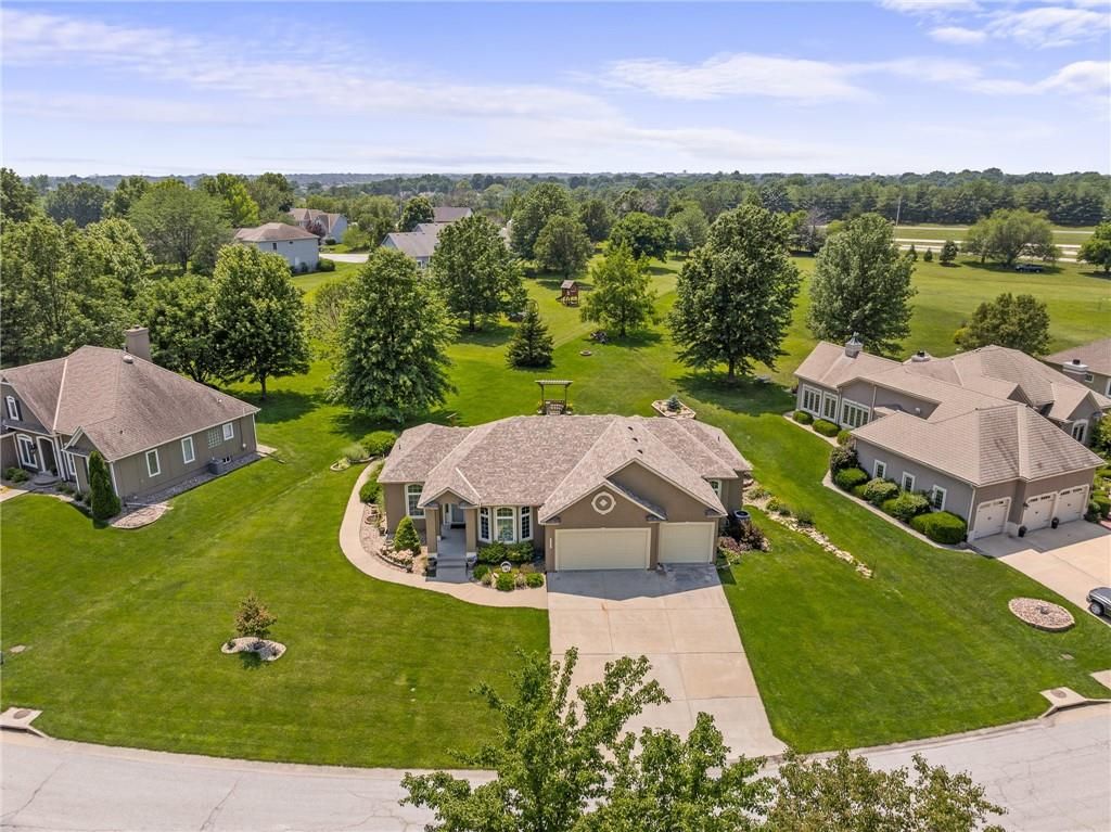 Stunning Reverse 1.5 Story in Lee's Summit - A True Entertainer's Dream! Welcome to this gorgeous, meticulously maintained home in the heart of Lee's Summit! This spacious reverse 1.5 story beauty offers effortless main-level living with main level primary suite, laundry room, and half bath, perfectly blending comfort and functionality. Step inside to find a private office just off the entry - ideal for remote work or a quiet reading space. The open-concept kitchen and living room create a warm and inviting atmosphere, filled with natural light and anchored by a cozy fireplace. The kitchen boasts abundant cabinet space, an island, walk-in pantry, and enjoy an eat-in kitchen and formal dining area - perfect for family meals and entertaining alike. The primary suite is a luxurious retreat, featuring double vanities, separate shower and tub, and a huge walk-in closet with built-ins and a bonus desk/vanity area - perfect for getting ready or a little extra workspace. Downstairs, the expansive walk-up basement offers endless possibilities with a family room, rec room, two additional bedrooms, and a full bathroom. You'll also find a bonus room (ideal for a gym or playroom), theater room for family movie nights, a mall workshop, and extra storage - truly something for everyone! Enjoy the outdoors with a screened-in deck off the dining room and walk down to a huge courtyard-style patio that's perfect for hosting guests or relaxing evenings under the stars. The in-ground sprinkler system and heated driveway add to the ease of maintenance and year-round comfort. Major updates include a newer roof and HVAC (4 years old) and a 1-year-old water heater - move in with peace of mind! Easy access to highway, and close to shopping, dining, and the Shamrock Hills Golf Club. This home checks every box - space, updates, location, and thoughtful design throughout. Come fall in love with your next home in Lee's Summit!