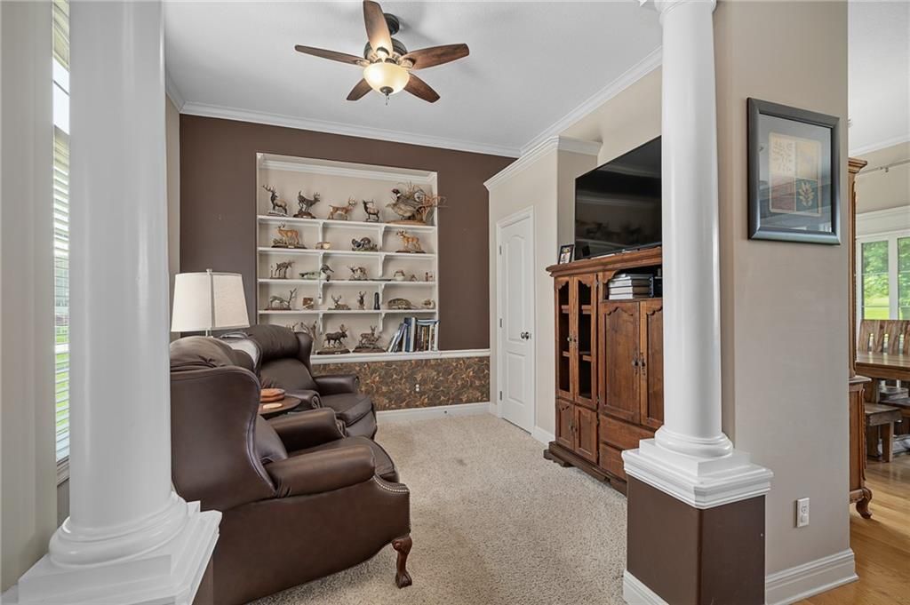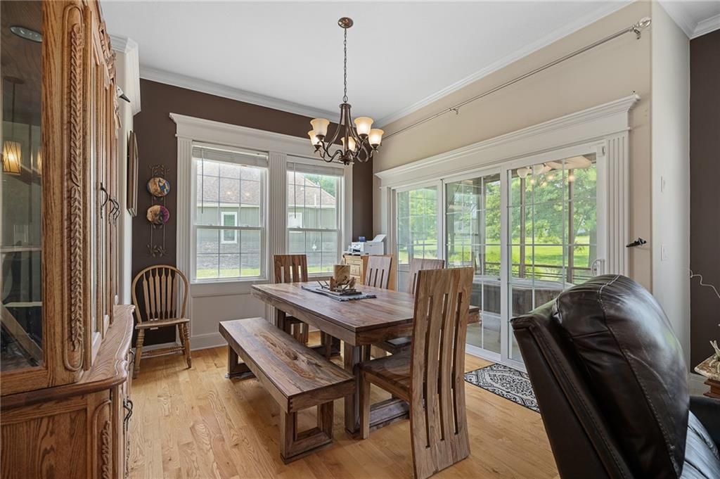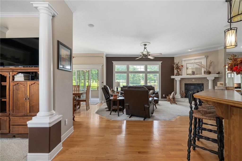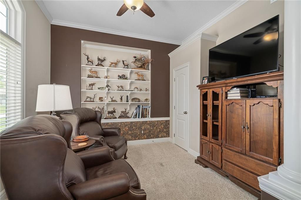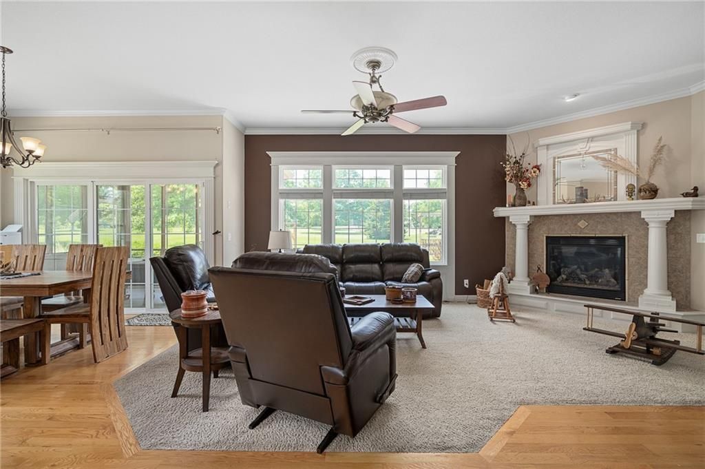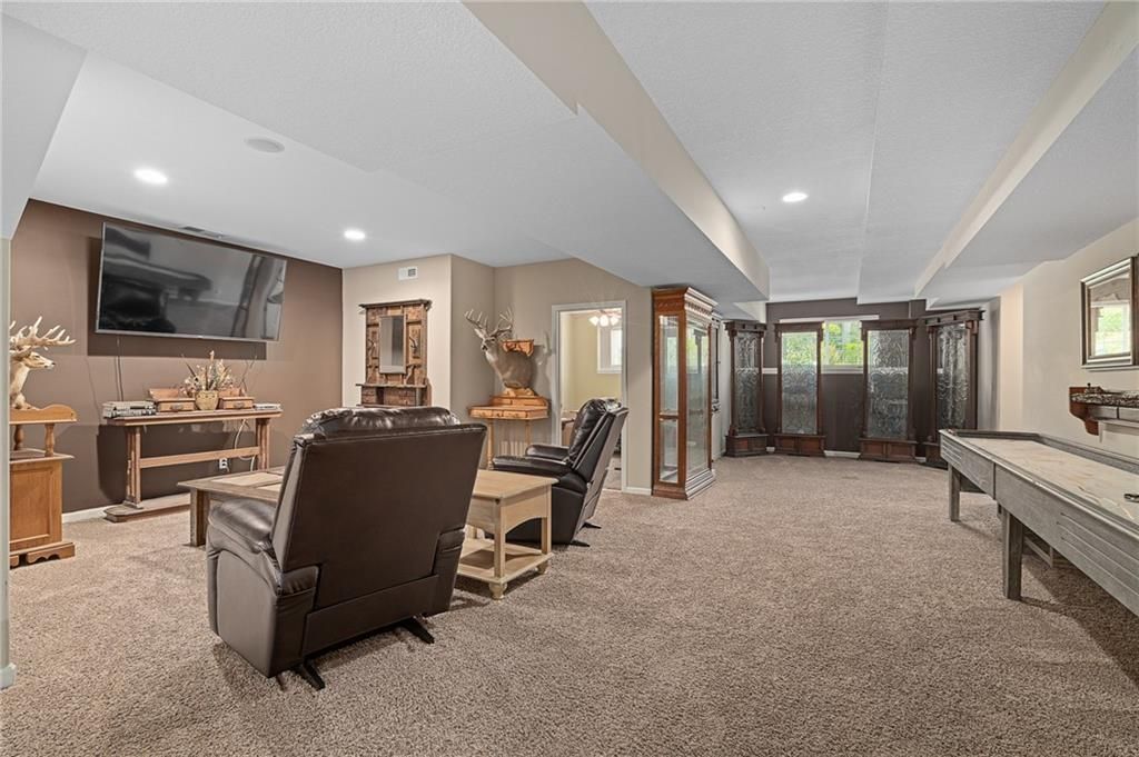 Stunning Reverse 1.5 Story in Lee's Summit - A True Entertainer's Dream! Welcome to this gorgeous, meticulously maintained home in the heart of Lee's Summit! This spacious reverse 1.5 story beauty offers effortless main-level living with main level primary suite, laundry room, and half bath, perfectly blending comfort and functionality. Step inside to find a private office just off the entry - ideal for remote work or a quiet reading space. The open-concept kitchen and living room create a warm and inviting atmosphere, filled with natural light and anchored by a cozy fireplace. The kitchen boasts abundant cabinet space, an island, walk-in pantry, and enjoy an eat-in kitchen and formal dining area - perfect for family meals and entertaining alike. The primary suite is a luxurious retreat, featuring double vanities, separate shower and tub, and a huge walk-in closet with built-ins and a bonus desk/vanity area - perfect for getting ready or a little extra workspace. Downstairs, the expansive walk-up basement offers endless possibilities with a family room, rec room, two additional bedrooms, and a full bathroom. You'll also find a bonus room (ideal for a gym or playroom), theater room for family movie nights, a mall workshop, and extra storage - truly something for everyone! Enjoy the outdoors with a screened-in deck off the dining room and walk down to a huge courtyard-style patio that's perfect for hosting guests or relaxing evenings under the stars. The in-ground sprinkler system and heated driveway add to the ease of maintenance and year-round comfort. Major updates include a newer roof and HVAC (4 years old) and a 1-year-old water heater - move in with peace of mind! Easy access to highway, and close to shopping, dining, and the Shamrock Hills Golf Club. This home checks every box - space, updates, location, and thoughtful design throughout. Come fall in love with your next home in Lee's Summit!