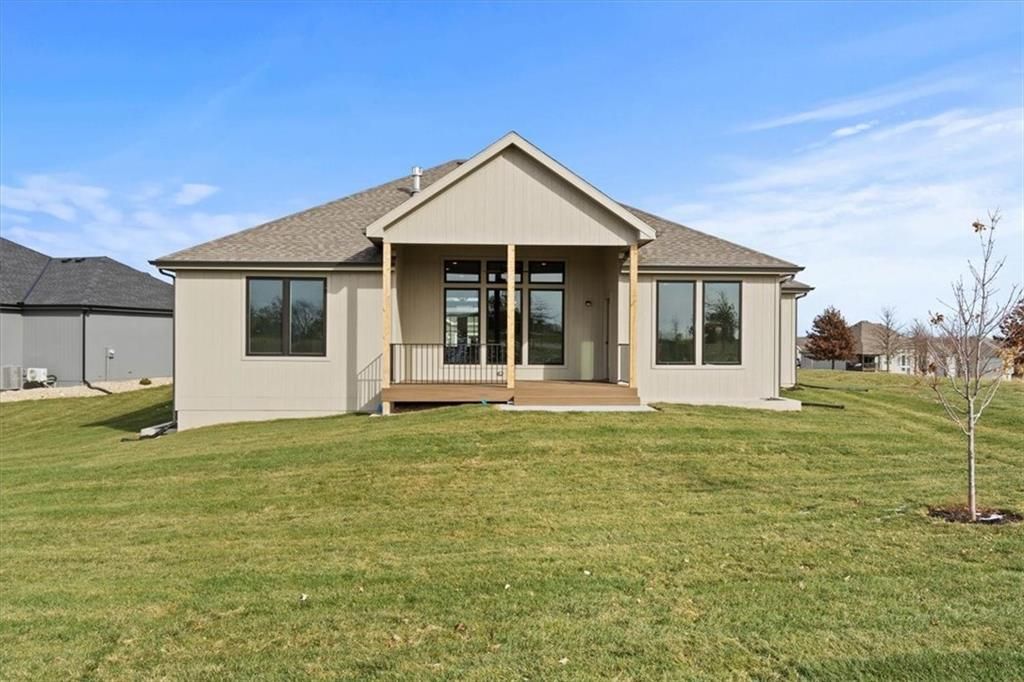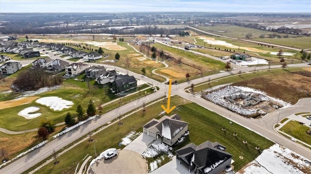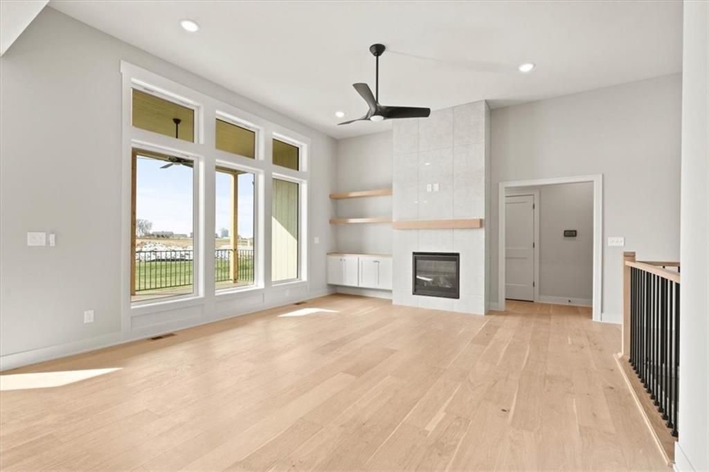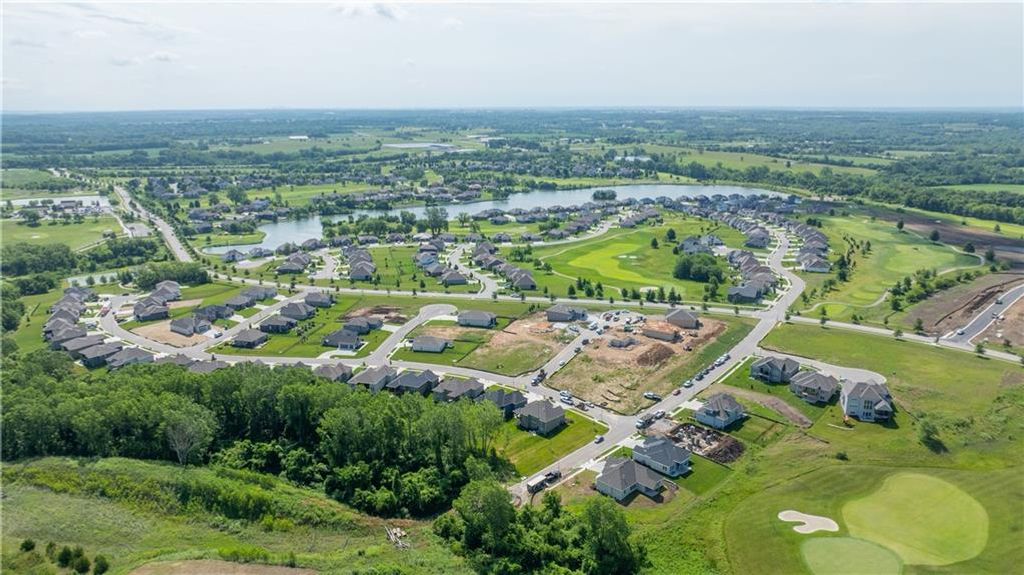 Lot 44 Villa - The Lexington by Pfannes Homes! GOLF COURSE LIVING in this open Reverse plan. This lovely home with ALL THE UPGRADES is READY for you!! Spacious Great Room includes fireplace with tile to the ceiling, cabinets on one side, and large windows with transoms above. The Kitchen has a nice Island, walk in pantry, quartz and drawers for convenient access to kitchen essentials. The Dining Area includes wainscoting and has access to the covered COMPOSITE deck. The large Main floor Primary Bedroom has a beautiful feature wall. Primary Bath Suite includes standalone tub and ZERO ENTRY walk-in shower. Laundry Room has access off the Primary Bedroom closet! Main floor 2nd Bedroom and 2nd Bathroom. Large finished Family Room in the lower level with nice wet bar as well as the 3rd and 4th Bedrooms and 3rd full bath. Plenty of storage room, including basement under the entire front stoop and porch. 3 Car Garage with tandem area on the 3rd garage bay perfect for the golf cart or workshop area. Minisplit installed in garage to keep it a comfortable temperature year round! This great home is on the end of the cul-de-sac with a view of the golf course across the street! Just 10 minutes to the Legends shopping and entertainment and 30 minutes to the airport, Falcon Lakes is conveniently located on K-7 for easy highway access. Acclaimed Basehor-Linwood Schools. Monthly HOA dues provide lawn maintenance including weed and feed and sprinkler turn on and off as well as snow removal over 2 inches. Neighborhood Restaurant at the golf course club house!