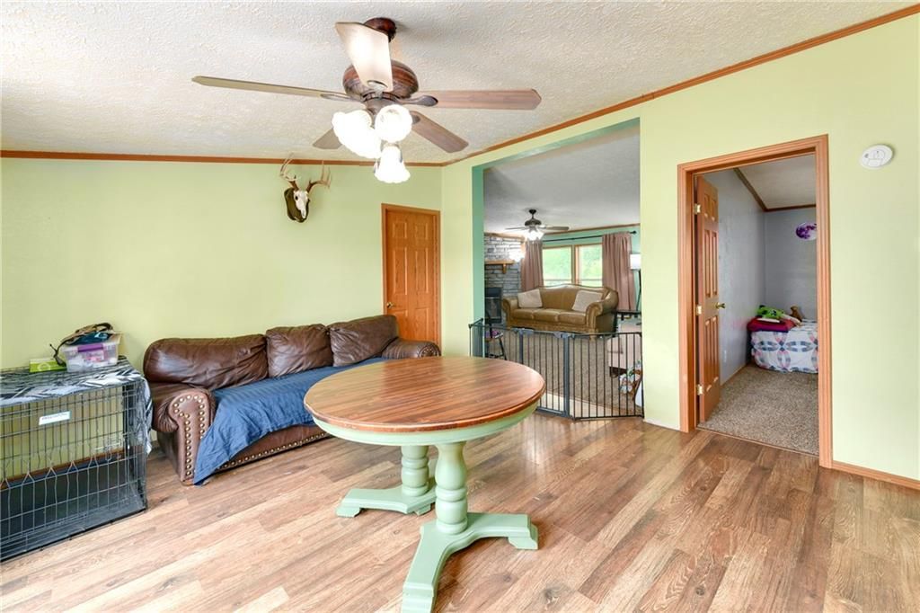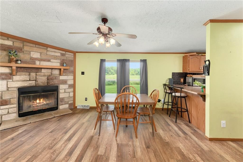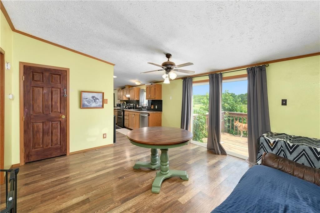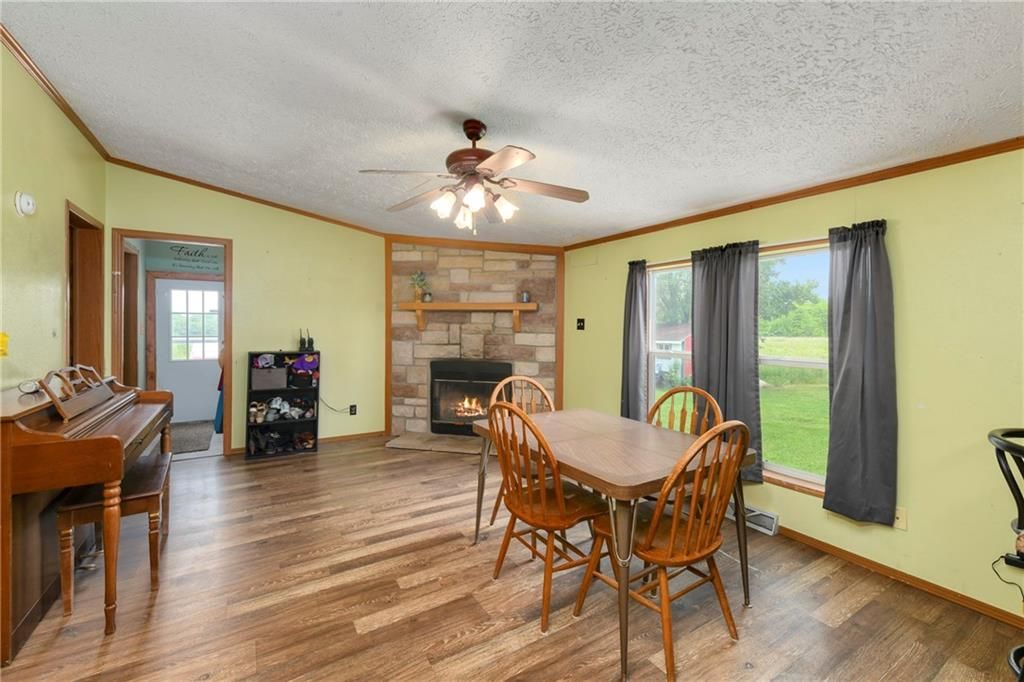 Welcome to your future haven. This single-level home, nestled in the heart of nature, is a perfect blend of comfort, convenience, and charm that will captivate your attention right from the first glance. The house boasts four spacious bedrooms, three well-appointed bathrooms, and a cozy den, perfect for those quiet, reflective moments or engaging conversations. The unique design includes a shared full bathroom between two bedrooms, providing an innovative approach to privacy and convenience. An inviting dining room, complete with a fireplace, sets the stage for memorable meals and gatherings. Adjacent to this, you'll find a second dining space within the kitchen, offering flexibility for casual meals or additional entertaining space. The family room, also graced with a fireplace, provides a warm and welcoming atmosphere for relaxation and family time. Step outside onto one of the two decks - one at the front and another at the back of the house. The rear deck offers a serene view of the sprawling, 10-acre property marked by metal posts along the boundaries. It's the perfect spot to sip your morning coffee or unwind after a long day, all while enjoying the picturesque views and natural wildlife that frequents the property. The property also includes two sheds, providing ample storage for tools, gardening equipment, or outdoor gear. The home's location just off a blacktop road ensures easy accessibility while maintaining the tranquility of its natural surroundings. The community is a vibrant mix of friendly neighbors and open spaces, with local amenities within easy reach. Whether you're a nature enthusiast, a peace seeker, or someone looking for a spacious home, this property caters to a variety of lifestyles. This home is more than just a place to live - it's a lifestyle. We invite you to experience it for yourself. Take the first step towards your new life at 46005 East State Route N, Creighton MO, 64739. Your dream home awaits!