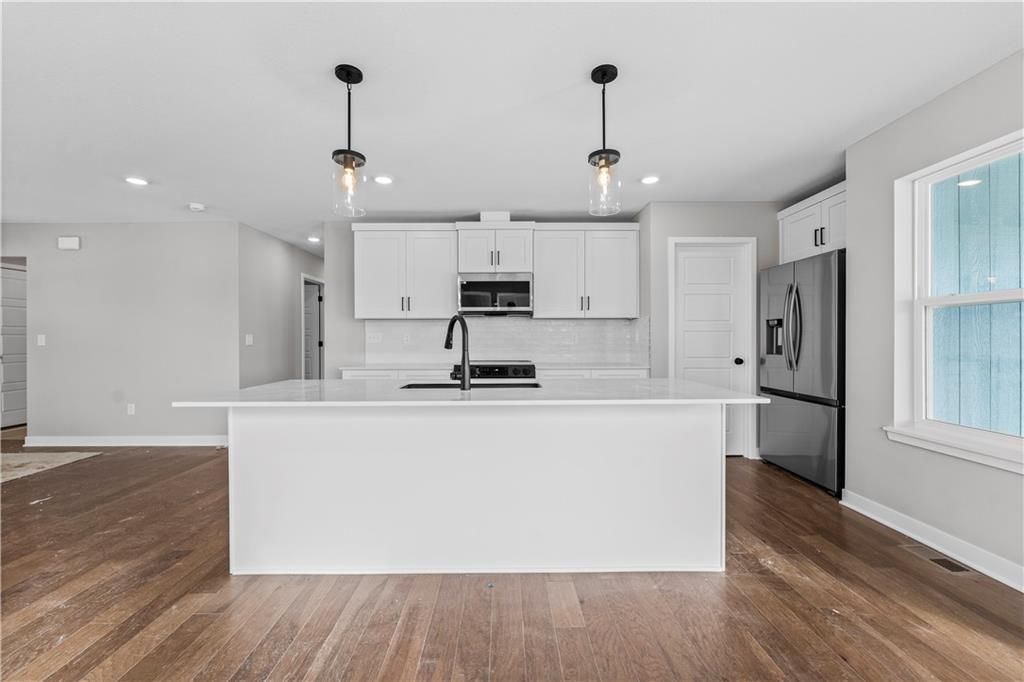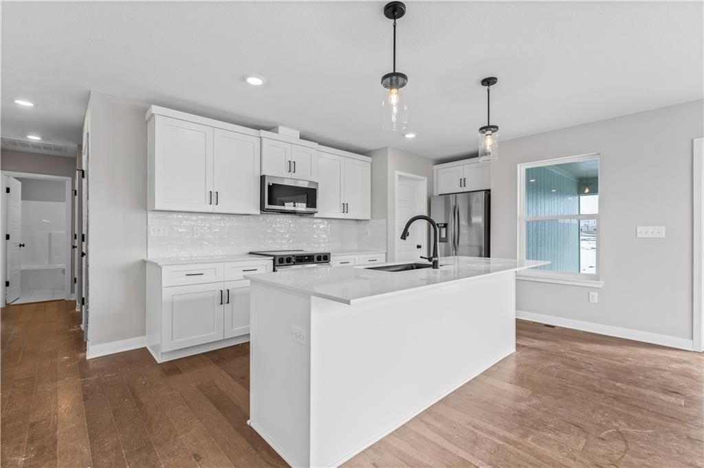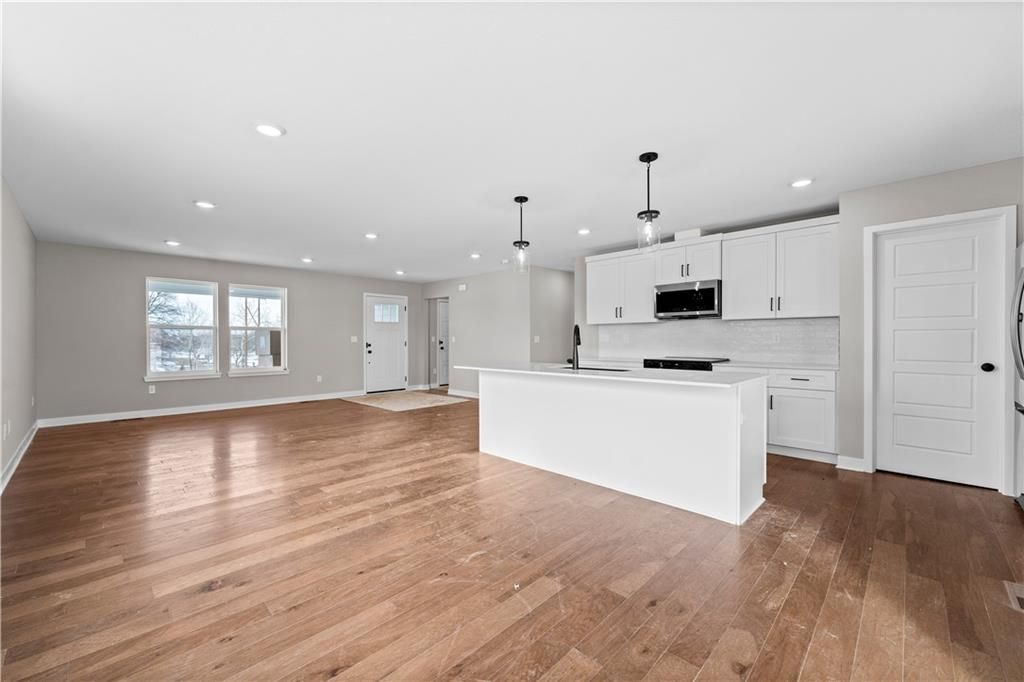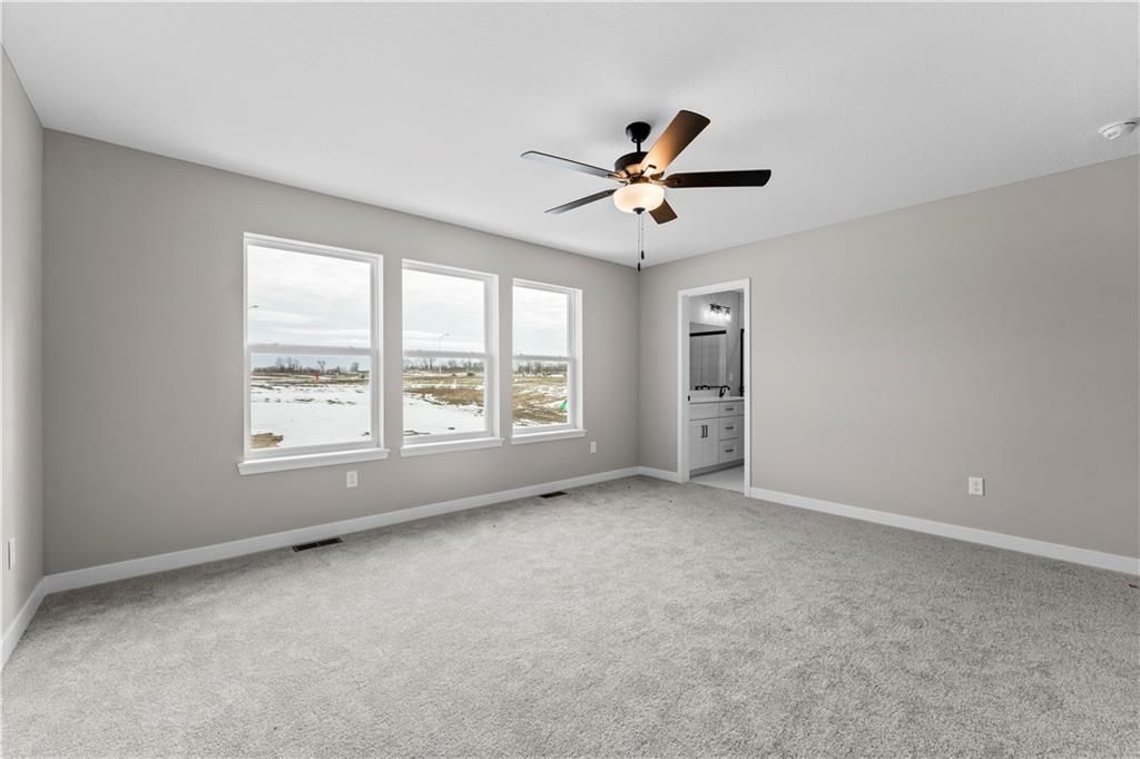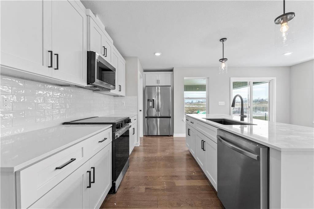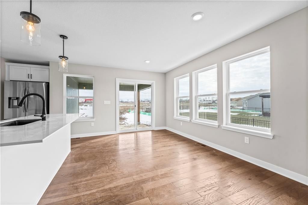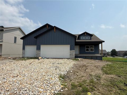 PRICE REDUCED! This stunning Heather ranch plan combines functional main-level living with thoughtful upgrades throughout. Enjoy an open-concept layout with a spacious kitchen, dining area, and great room that opens to a composite covered deck - perfect for outdoor entertaining. The primary suite features a large walk-in closet and private bath with a walk-in shower. Two additional main-floor bedrooms are conveniently located near the full bath and laundry room. This home also includes a daylight basement, offering natural light and future finish potential for a rec room, 2 more bedrooms, and a full bath. Bonus: a 3-car garage provides plenty of storage and space for all your needs. Home is estimated to be completed in September 2025. Contact Noelle Stephens at 913-808-2100 for detailed information or a private showing. Model Home: 408 Woodview Dr. Photos shown are of a previous model