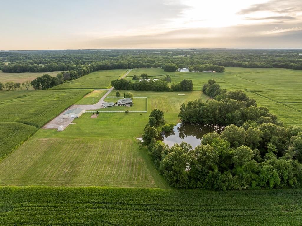 If you want the secluded country living experience, then look no further! This acreage is located close to the interstate but extremely secluded and surrounded by agriculture. 16+/- acres located on an over mile long gated driveway. As you pull into the acreage you can't help but notice the attention to detail. The large graveled driveway is perfect for those with equipment or may want to run a business from home. The property features a 4bd/4ba home with 4,740 sq ft of living space. Low maintenance metal exterior with beautiful landscaping, irrigated yard, irrigated rock landscape beds, and patio firepit. Adjacent you will find a large 1,200 sq ft detached 2-car garage. If you need a business location or just have a lot of toys, take advantage of the 55x60 shop with 2,400 sq ft which are fully insulated and full HVAC with a small office and restroom. The large shop features a separate electric meter, perfect for a business. There is also plenty of room on the acreage to fence for livestock and sitting in the NE corner, there is a beautiful acre stocked pond to enjoy. Very peaceful settings with no close neighbors