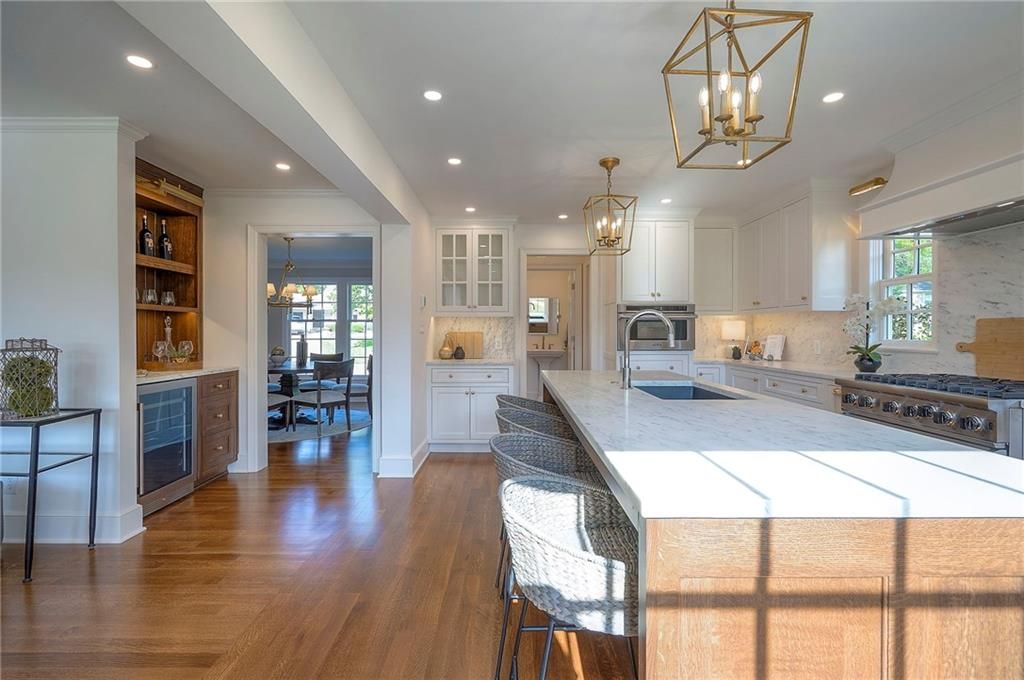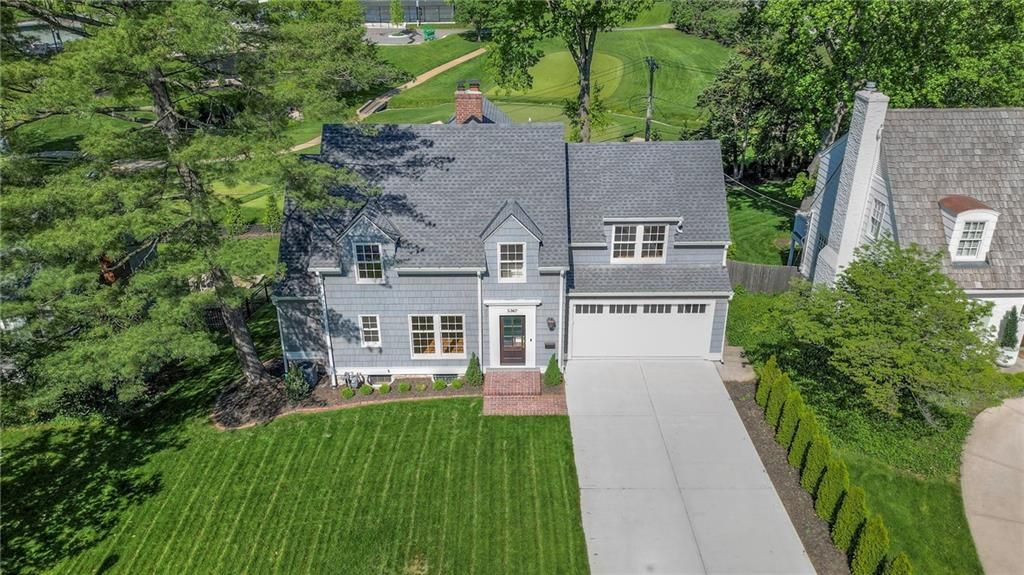 One of KC's best kept secret neighborhoods! This 5 bedroom, 3.5 bath, 3600+ sq. ft. home backs to picturesque Mission Hills Country Club Golf Course and boasts an extensive list of updates, including ALL NEW electrical, plumbing, sewer line, ductwork, exterior shingles, driveway, and more. Every level of this home has been remodeled to the highest standards, ensuring a perfect blend of modern luxury and original charm and character. You'll love the abundance of natural light and the attention to detail, including herringbone-patterned hardwoods, Inset cabinetry, custom built-ins, Visual Comfort lighting, solid-core doors, and Emtek hardware. The Chef's kitchen is the heart of the main floor, with a large island, Viking gas range, Danby marble countertops, and a dry bar with beverage fridge. The Kitchen flows effortlessly into the large family room with a marble surround fireplace, making it a great entertaining space. Four bedrooms are upstairs, including a primary suite with a generous walk-in closet (plus additional closet) and a large marble-finished bathroom. There is also a convenient upstairs laundry room and a classically designed hall bath with double sinks. You will be impressed by the DRY finished walk-out lower level that includes a 5th bedroom, full bathroom, ample rec space, two additional flex rooms perfect for a home gym or game room, and a dedicated office or study area with a beautiful built-in desk. The restored original brick patio has fantastic views overlooking the 11th & 12th holes. This is an exceptional value in Northeast Johnson County!