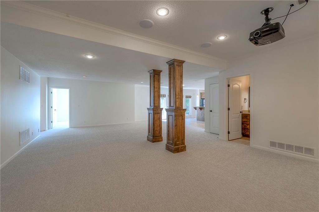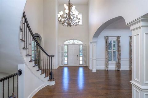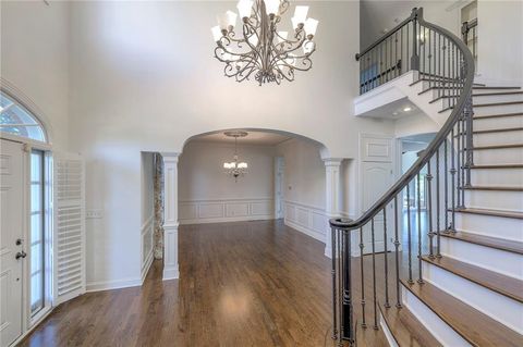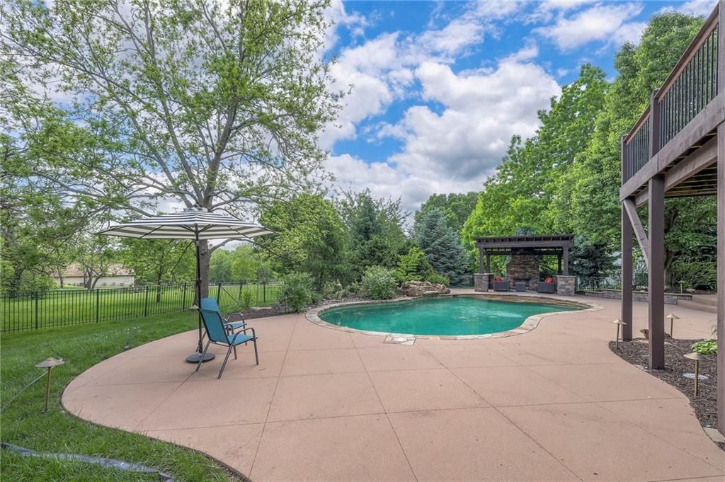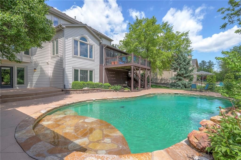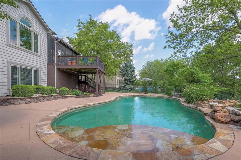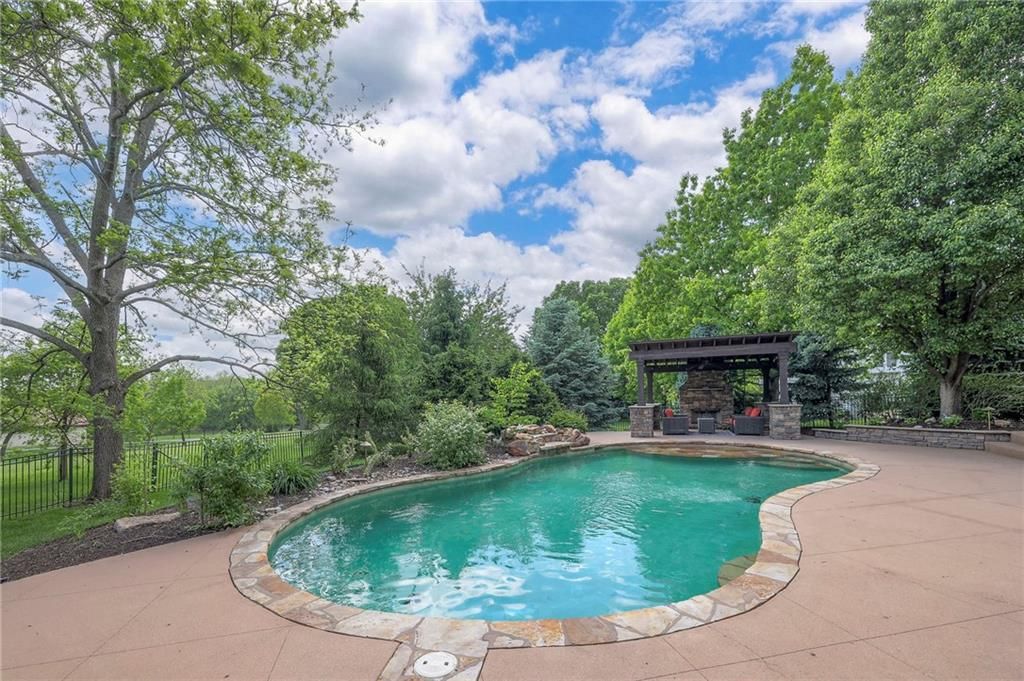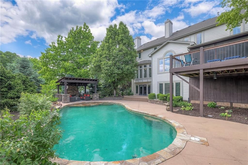 Better than new - Welcome to this Stately brick colonial home, with luxurious Heated Gunite Pool, all situated on a private lot in Prime Location! This Spacious 2-story home offers over 6,000 sq/ft of luxury living. The grand spiral staircase greets you at the entry, setting the tone for the elegance throughout, with additional staircase off the kitchen. With 5 bedrooms, 5 full baths, & 2 half baths, this residence is designed for both comfort & entertainment. Rich hardwood floors flow through both the main & upper levels, creating a warm & elegant atmosphere! Each bedroom includes its own ensuite & walk-in closet. The primary suite is a true retreat with a cozy gas fireplace, heated tile floors, dual closets, and a spa-inspired bath. Gourmet kitchen featuring gas range, walk-in pantry, expansive cabinetry, quartz & honed granite counters, complete with premium appliances, including the refrigerator! Speakers in place in basement, backyard, and screened in porch to help get the party started! Step outside to your master planned, private backyard oasis featuring a heated Gunite Saltwater pool with Water Feature & Deck Jets & an inviting outdoor fireplace, already complete and ready for you to enjoy saving you time & money! The walkout lower level offers an expansive living area, wet bar, home gym, guest suite with full bath, and an additional half bath. Basement has home theatre system. Recent updates include fresh interior paint, newly painted kitchen cabinets, and brand-new lower-level flooring. This Sophisticated home offers custom cabinetry throughout, abundant storage, mature trees, and a fully fenced private lot, this home blends sophistication, functionality, and privacy. Better than new, you could not recreate this home and setting, it's truly one of a kind. With a fantastic location close to top schools, shopping, dining, this home truly has it all. Don't miss the opportunity to own this exceptional property in highly sought-after Lionsgate-The Enclave!