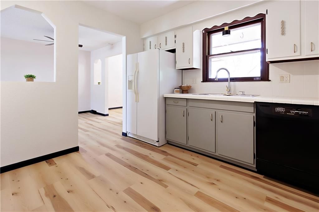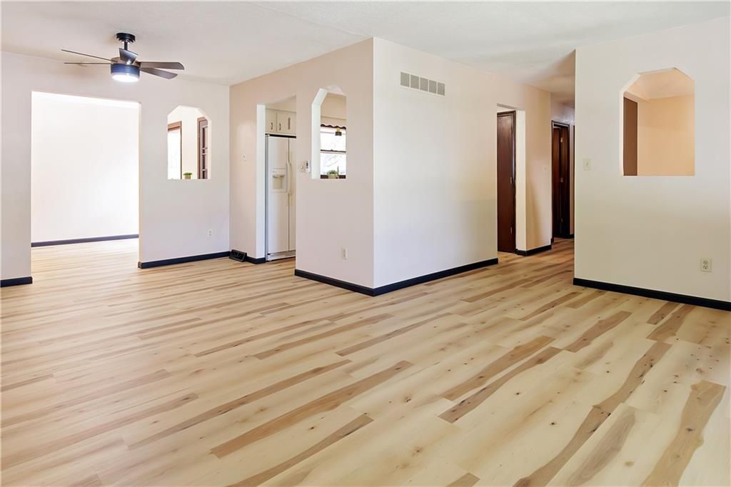 50k price improvement! Now buy a full size house for a townhouse price! 1st Time Home Buyers and Veterans: It's totally move in ready with all new wood flooring, new interior paint, pre-inspected with almost all deficiencies remedied. 4BR (three on main level and one 18x11 non conforming on lower level) 3BA, 2 car garage, walkout basement, 1976 sqft, built in 1968, Lot size is 10799 sqft or 0.248 acre. 2660 sqft gross. 1356 sqft on first floor. 1304 sqft gross sqft downstairs with 620 finished bsmt space and 684 unfinished bsmt space (garage). All new professionally crafted flooring and new interior paint. Fenced yard, walkout basement through the garage, across the street from Rhein Benninghoven Elementary School. Just south of Shawnee Mission Parkway between Pflumm and Quivira. Very close to Shawnee Villa Plaza to the northeast and HyVee to the northwest. Remember, home has been pre-inspected with almost all deficiencies repaired/remedied. Watch the walkthrough video. House is winterized so please don't use the facilities. Water will be back on for your inspection.