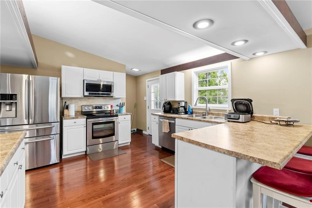 Price Reduced for this charming ranch style home with great bones and key updates! This 1300 square foot floor plan offers 3 bedrooms, 1.5 baths, vaulted ceilings in the main living area with an exposed beam and a cozy gas fireplace. The kitchen is fitted with sleek white cabinets, stainless appliances, and beautiful wood flooring. Other updates and features include a newer metal roof, fresh exterior paint, dual pane insulated windows, and a high efficiency HVAC system. The 2-car garage is attached by way of a breezeway and the lot boasts nearly 1 acre of space. If all of this wasn't enough, this property is conveniently located across the street from the city park and just down the road from Carrollton Schools.