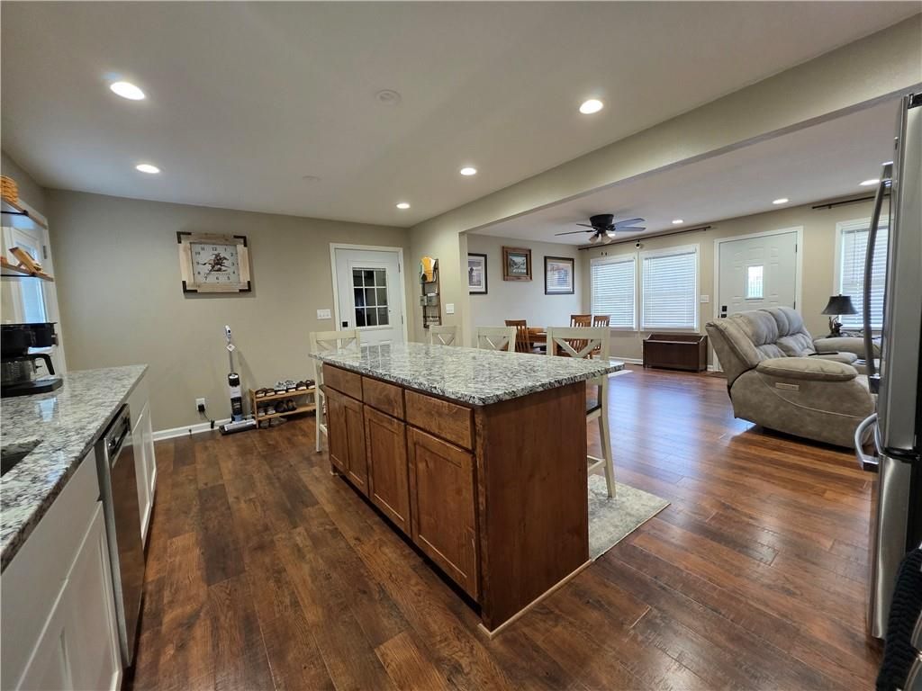 Would you love to live in a charming small community Step into this stunningly renovated 3-bedroom, 2-bath ranch home featuring a spacious open floor plan and stylish upgrades throughout. The eat-in kitchen boasts brand-new cabinets, gorgeous granite countertops, and all-new appliances - perfect for entertaining and everyday living. You'll also appreciate the large, updated bathrooms, new flooring throughout, updated windows, added insulation, and a new roof and gutters for long-term peace of mind. The partially finished basement offers room to grow with egress windows and the potential to add an additonal bedroom, a home office, or a family room. The two car garage features a new mini-split system ensuring year-round comfort while working on hobbies or projects. Outside, you'll love the new gravel and concrete pad, ideal for additional parking or outdoor entertaining. Located within the Santa Fe School District, this home is MOVE IN READY - just unpack and enjoy! Make a call now to schedule your showing!