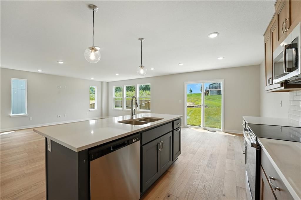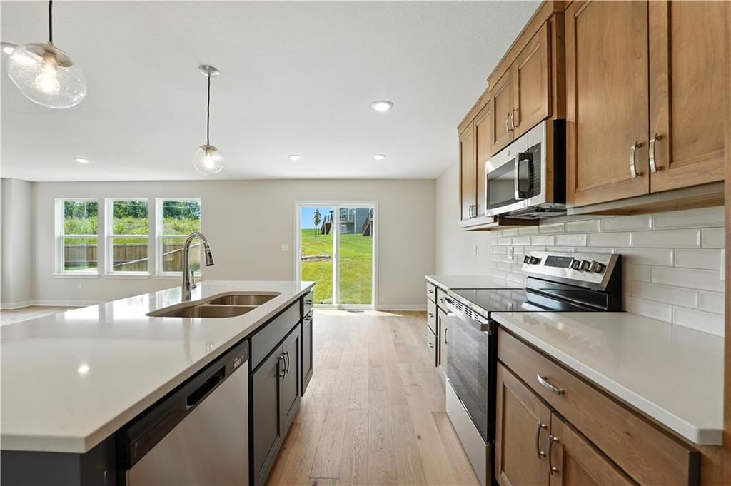 **Eligible for a limited time rate buydown on full price offers with a 30 day close - inquire for more details!** Ready for immediate move-in! Welcome to this charming 4-bedroom, 3.5-bathroom two-story home, nestled on a serene private street that culminates in a peaceful cul-de-sac. *Furnished model of this plan located at 773 Creekmoor Drive* The main level boasts an open floor plan, perfect for entertaining and daily living. The well-designed layout seamlessly connects the living, dining, and kitchen areas, creating a spacious and inviting atmosphere. Upstairs, you'll find all three bedrooms, including the generously-sized primary bedroom, along with a convenient laundry room. This thoughtful design ensures that privacy and functionality are seamlessly combined. The full unfinished lower level presents endless possibilities - create your dream space or use for extra storage. Eastbrooke at Creekmoor has it all! Designed around 108 acre Lake Creekmoor and the acclaimed 18 Hole Championship Golf Course, Creekmoor offers one of the most comprehensive residential amenities packages available, where homeowners with both active and relaxed lifestyles enjoy what feels like vacation all year long. Pools, tennis, pickleball, basketball, 24-hour fitness center, golf pro shop, Tavern on the Moor restaurant and bar, fishing, boating, SUP, and still more...it's ALL here! With an abundance of shops, restaurants and services minutes away and with easy access to Jackson and Johnson Counties, homeowners have all the benefits of metro living at their fingertips while enjoying home life outside the hustle and bustle. Whether making your first home purchase or your last, this is a destination community like no other.