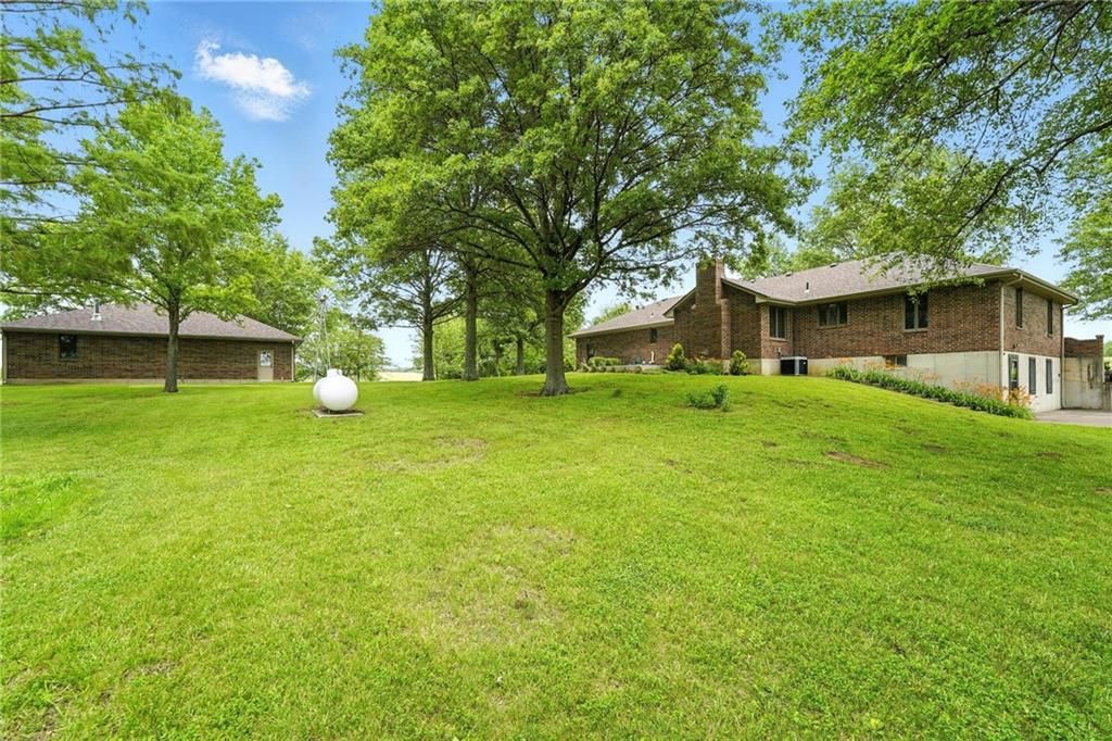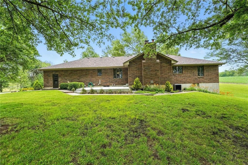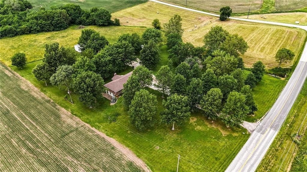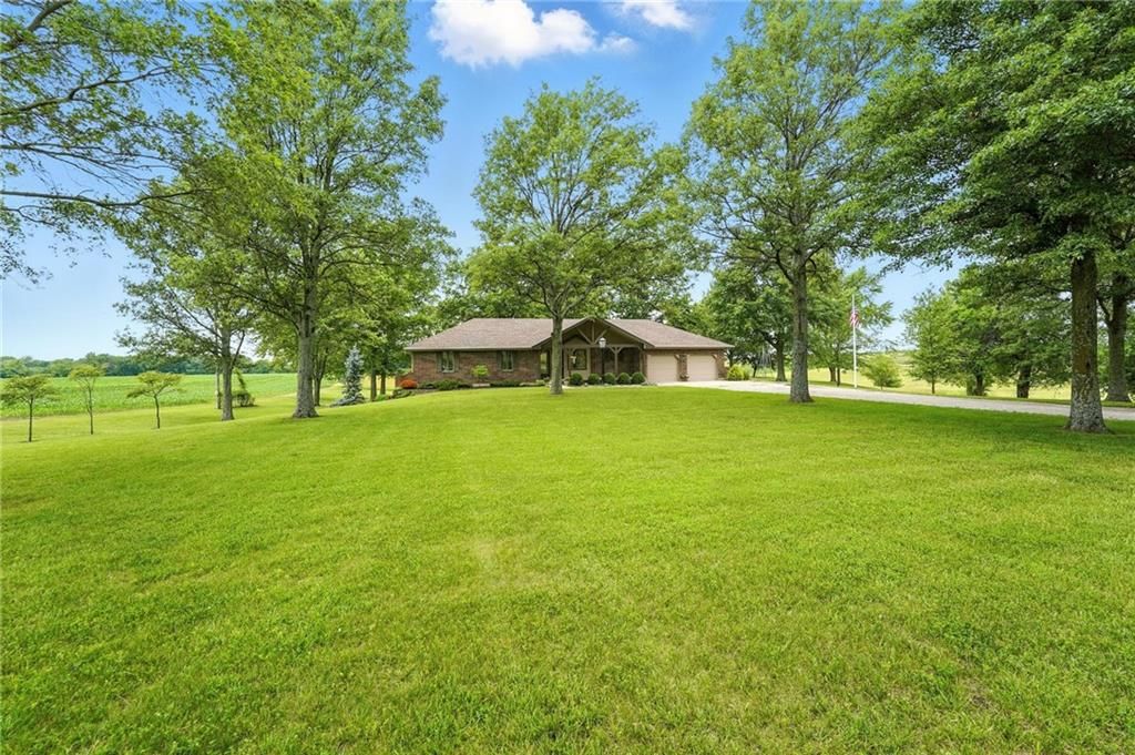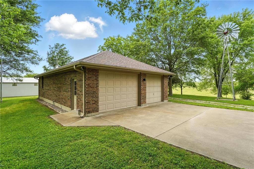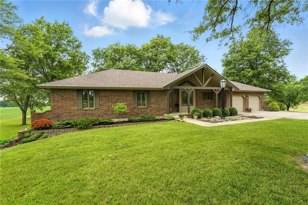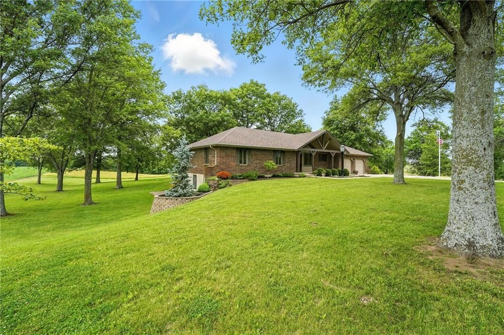 Stop the car... this is it! This home has been lovingly cared for and it shows in this all-brick home with 2-car garage (with new concrete floor), a detached all-brick shop with 1/2 bathroom and wood-burning stove and heater. Also, has an additional large outbuilding! Solid home with large room sizes and open floorplan with beautiful hardwood floors... all on a paved road! Kitchen has lots of space, cabinets and counter space. Laundry on main level right off the kitchen. Formal dining room and living room featuring fireplace. New patio with extra reinforcement to hold lots of weight if you choose to add on or install hot tub. Primary suite on main level features vaulted ceilings, its own private bathroom, dual vanity, separate shower and jetted tub. 2 additional bedrooms and full hall bathroom on main level are large rooms. Home is super clean and nice! Walkout basement is finished with additional space, storm shelter, plumbed for wetbar and features lots of recessed lighting and a wood-burning stove and additional bonus/flex room and full bathroom! This is gorgeous... rows of trees lining the long driveway, flagpole, windmill and dinner bell add additional charm and character this already wonderful property!