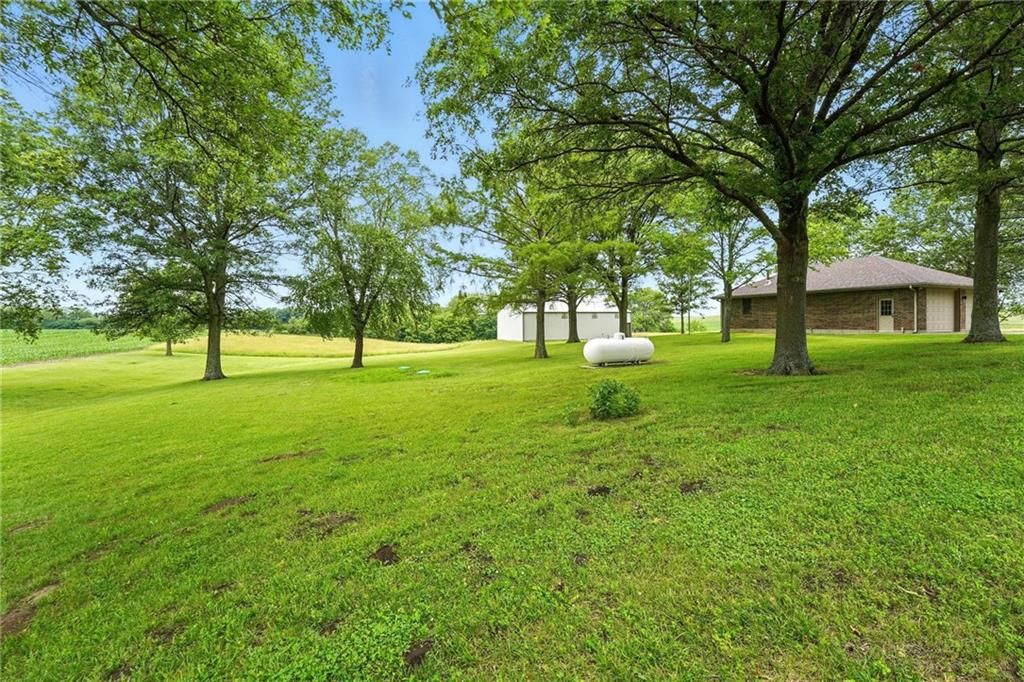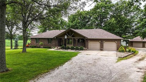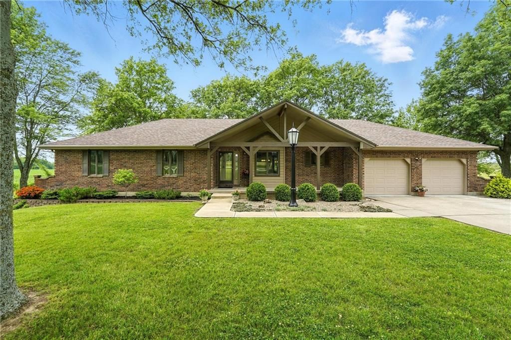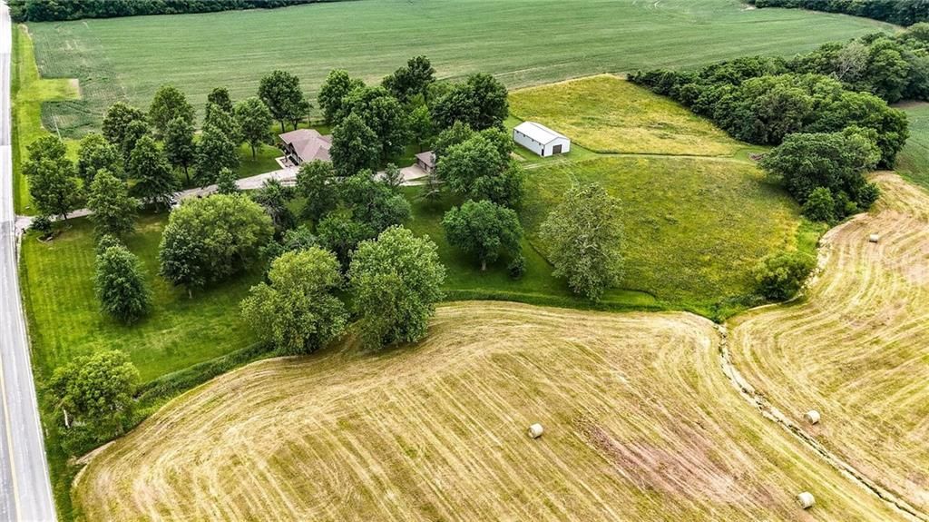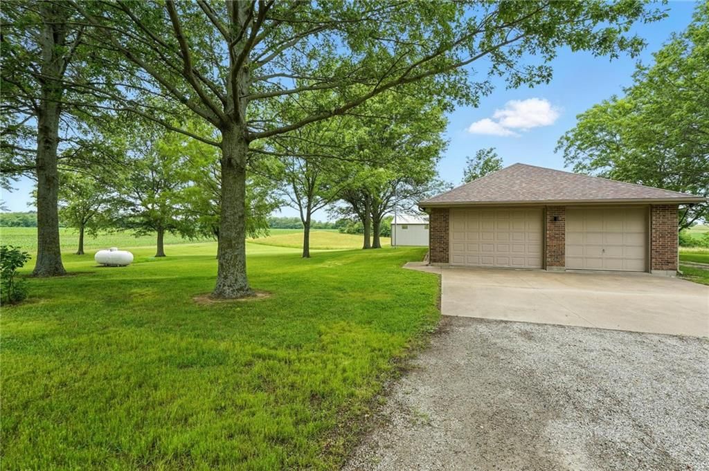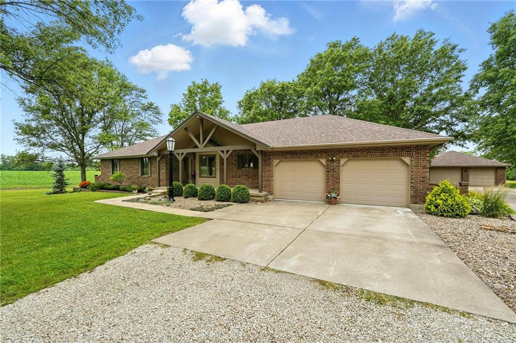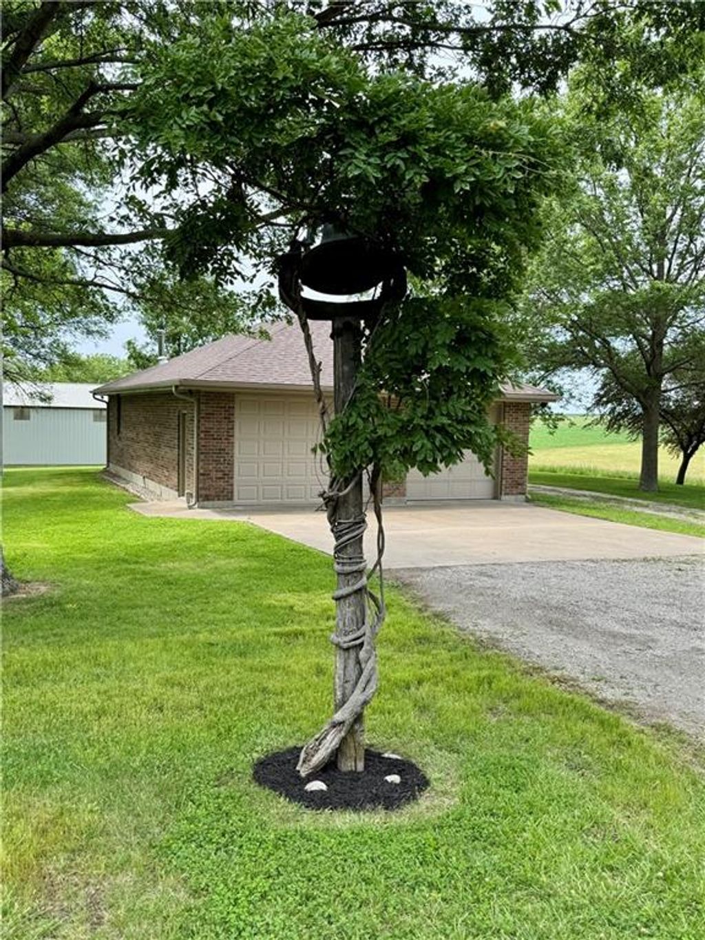 Stop the car... this is it! This home has been lovingly cared for and it shows in this all-brick home with 2-car garage (with new concrete floor), a detached all-brick shop with 1/2 bathroom and wood-burning stove and heater. Also, has an additional large outbuilding! Solid home with large room sizes and open floorplan with beautiful hardwood floors... all on a paved road! Kitchen has lots of space, cabinets and counter space. Laundry on main level right off the kitchen. Formal dining room and living room featuring fireplace. New patio with extra reinforcement to hold lots of weight if you choose to add on or install hot tub. Primary suite on main level features vaulted ceilings, its own private bathroom, dual vanity, separate shower and jetted tub. 2 additional bedrooms and full hall bathroom on main level are large rooms. Home is super clean and nice! Walkout basement is finished with additional space, storm shelter, plumbed for wetbar and features lots of recessed lighting and a wood-burning stove and additional bonus/flex room and full bathroom! This is gorgeous... rows of trees lining the long driveway, flagpole, windmill and dinner bell add additional charm and character this already wonderful property!