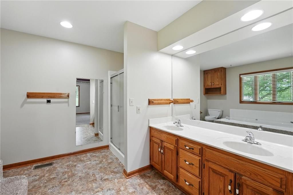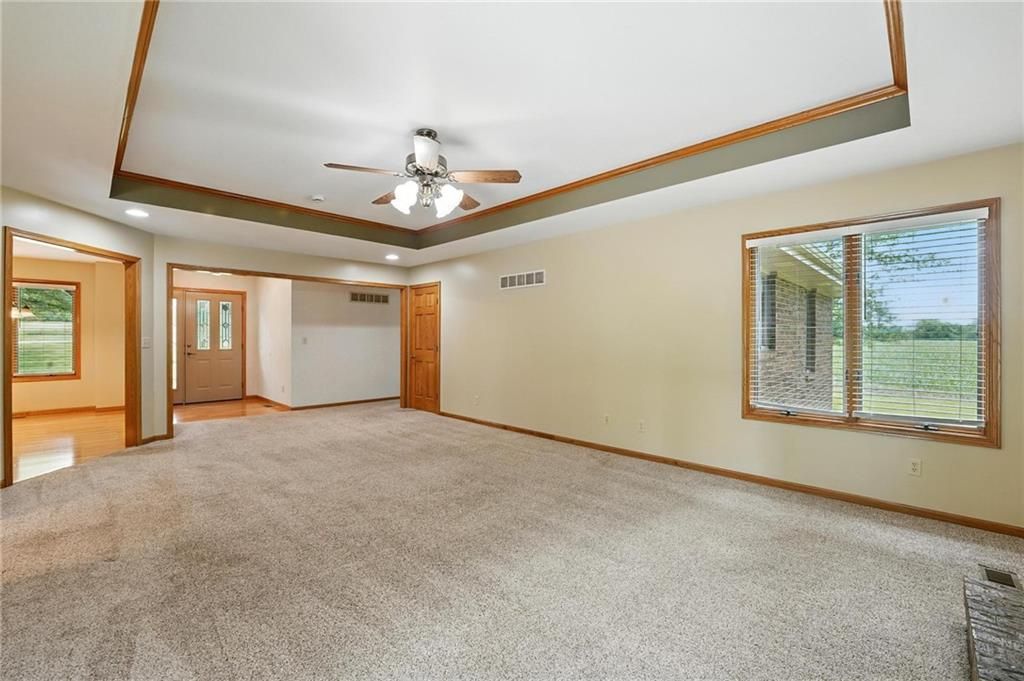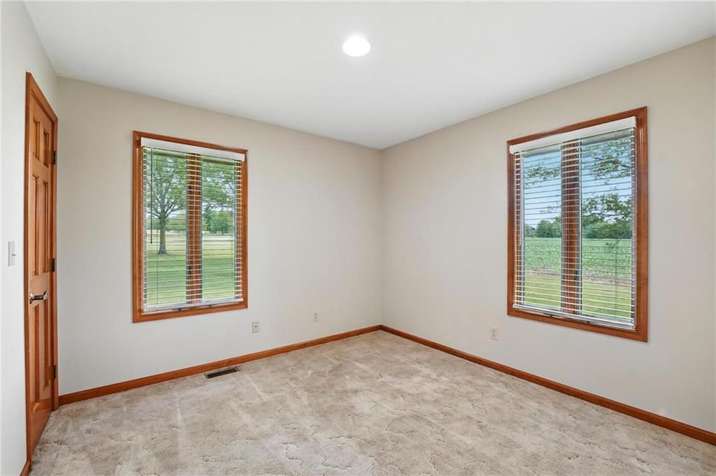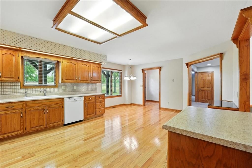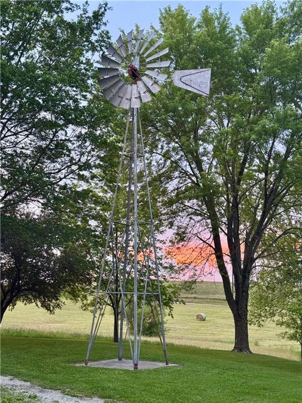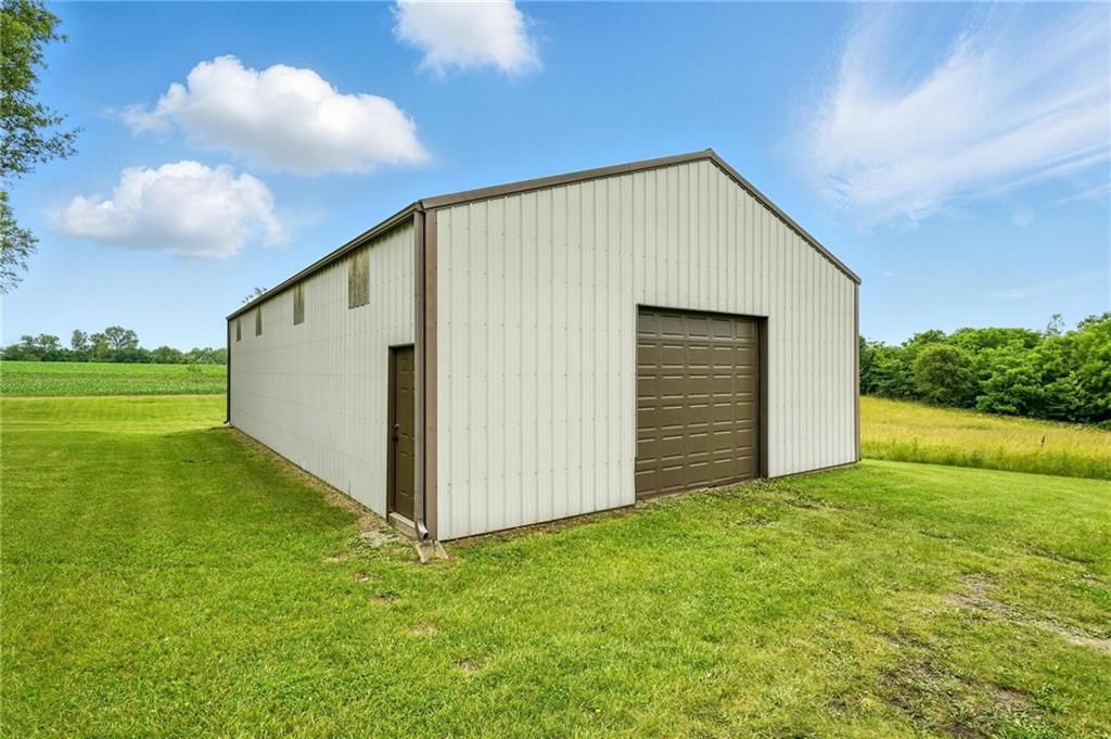 Stop the car... this is it! This home has been lovingly cared for and it shows in this all-brick home with 2-car garage (with new concrete floor), a detached all-brick shop with 1/2 bathroom and wood-burning stove and heater. Also, has an additional large outbuilding! Solid home with large room sizes and open floorplan with beautiful hardwood floors... all on a paved road! Kitchen has lots of space, cabinets and counter space. Laundry on main level right off the kitchen. Formal dining room and living room featuring fireplace. New patio with extra reinforcement to hold lots of weight if you choose to add on or install hot tub. Primary suite on main level features vaulted ceilings, its own private bathroom, dual vanity, separate shower and jetted tub. 2 additional bedrooms and full hall bathroom on main level are large rooms. Home is super clean and nice! Walkout basement is finished with additional space, storm shelter, plumbed for wetbar and features lots of recessed lighting and a wood-burning stove and additional bonus/flex room and full bathroom! This is gorgeous... rows of trees lining the long driveway, flagpole, windmill and dinner bell add additional charm and character this already wonderful property!