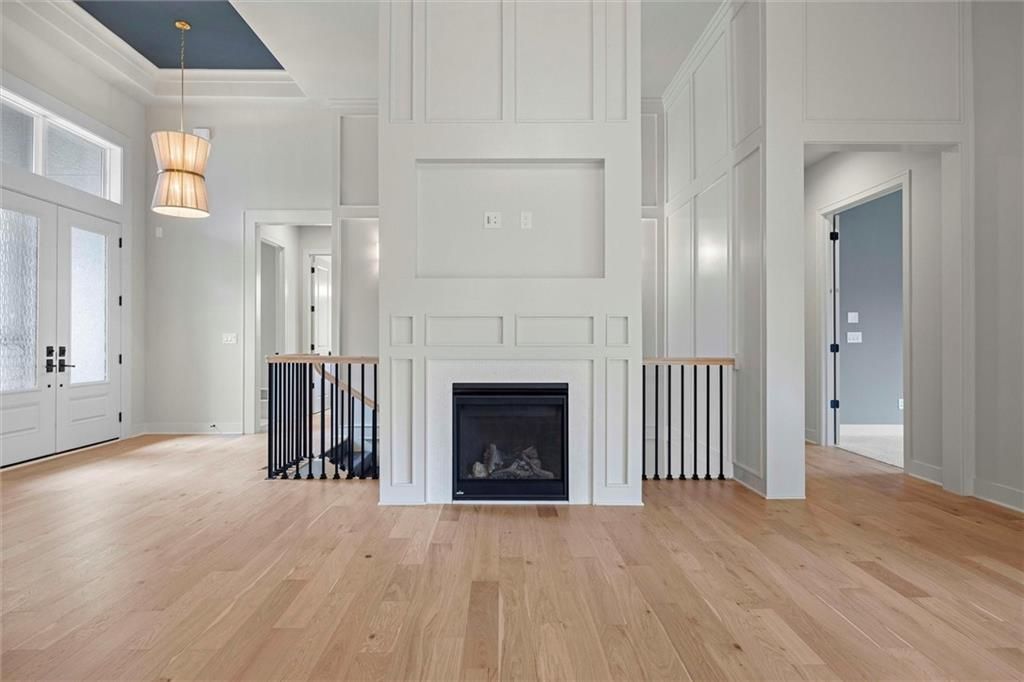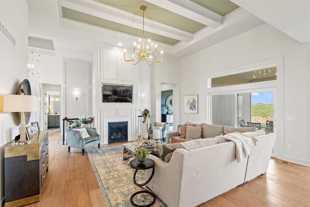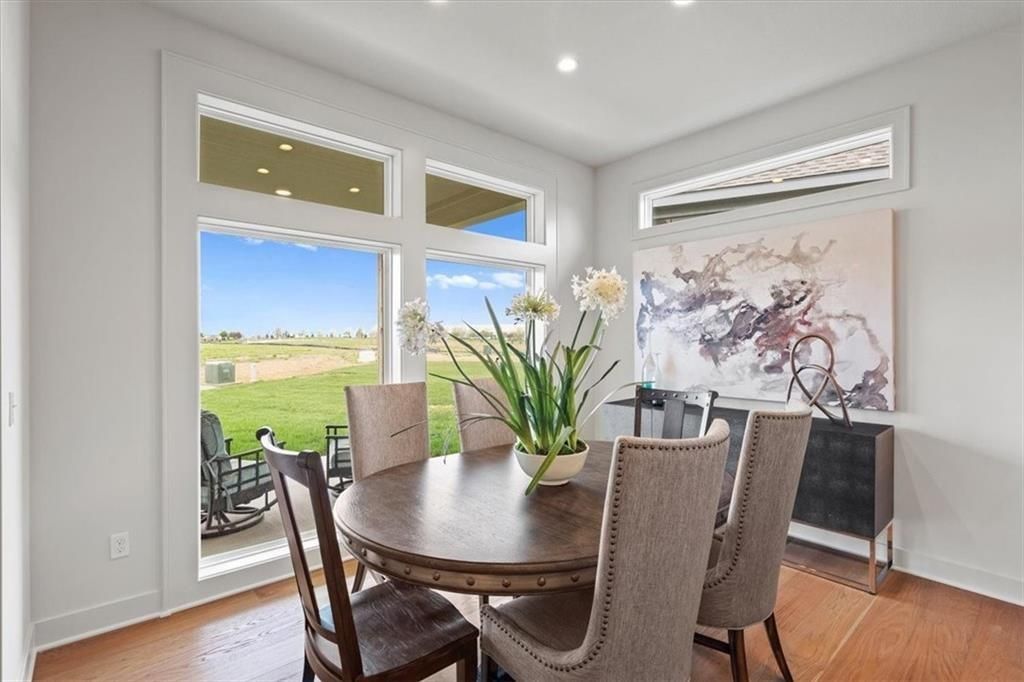 The award-winning Fleetwood Reverse 1.5 Story home by Don Julian Builders is MOVE-IN READY at Bristol Highlands in Shawnee on lot 27, a walkout homesite backing to peaceful treed green space with occasional wildlife sightings. This home whispers, "I've made it," with 3,320 square feet, 4bedrooms, 3 bathrooms, 13' ceilings, a primary suite, laundry room, pocket office, and second bedroom with full bath all on the main floor. Enjoy an oversized covered composite deck and patio below, perfect for quiet mornings or evenings unwinding. The finished lower level features two bedrooms with a Jack-and-Jill bath, a large recreation room, wet bar, and a half bath for guests. Future amenities include a clubhouse, resort-style pool, play area, sport courts, and more! Located in a premier Shawnee location close to parks, trails, shopping, dining and top-rated De Soto schools, all 5 minutes from Shawnee Mission Park (largest park in JoCo), Lake Lenexa, 7 premier golf courses, Lenexa City Center and Marketplace with the new Restaurant Row plus the numerous festivals in Shawnee and Lenexa throughout the year!