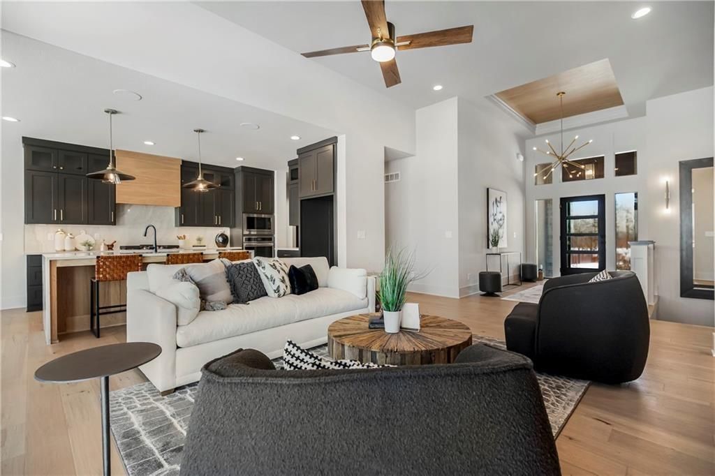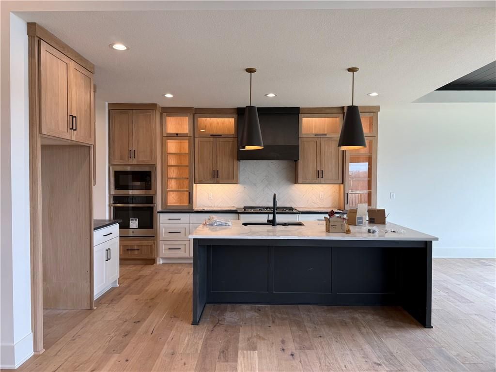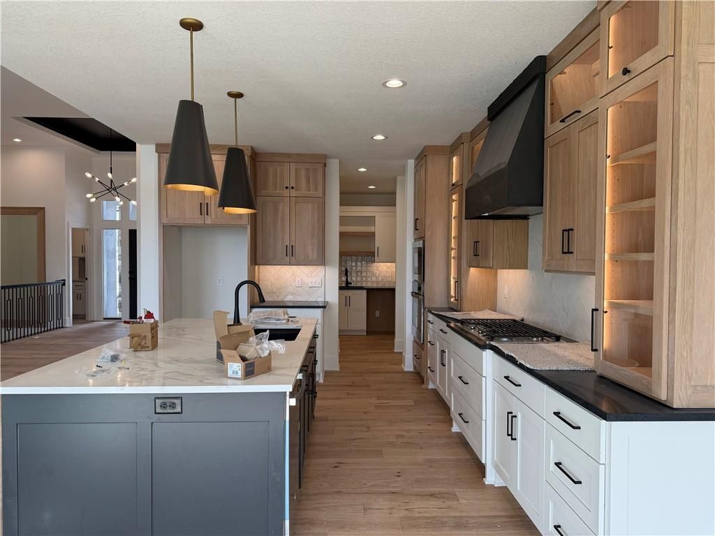 The Heather plan by Walker Custom Homes is under construction on Lot 72, a walkout homesite with treed views and over 3,000 square feet of thoughtfully designed living space in Bristol Highlands Manors. Move-in ready late Spring 2026. This Reverse 1.5 story home includes 4 bedrooms, 4 full bathrooms, an oversized prep pantry with a sink, and a covered deck with a gas fireplace - perfect for quiet mornings or winding down in the evenings. Upgraded black windows add a modern touch, while the layout offers flexibility to fit your lifestyle. Fully sodded with full-yard irrigation included. Bristol Highlands blends everyday life with peaceful nature views with nearby conveniences - like Lenexa's vibrant City Center dining and Shawnee Mission Park's endless outdoor fun. The upcoming pool, clubhouse, and sport courts are just the start of what's making this neighborhood one to watch. Add in award-winning De Soto schools (shoutout to Mill Valley!), and it's clear why homes here are going quickly. Don't miss your chance to personalize your new home and settle in to this community that's ready to welcome you.