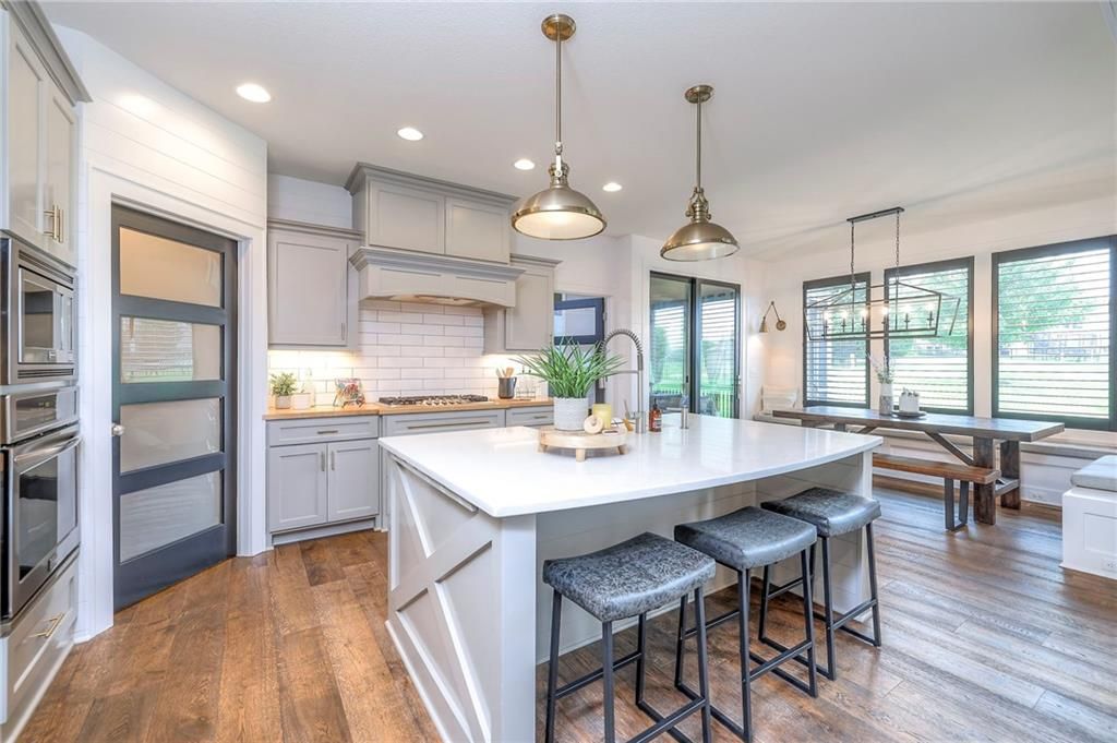 Dramatic $50,000 price adjustment! This exceptional custom-built 1.5-story home by JS Robinson offers a rare blend of thoughtful design and timeless craftsmanship. Situated in the desirable Bristol Ridge subdivision, the home features wide-plank hardwood floors, a spacious great room with a masonry fireplace, and a well-appointed kitchen with granite and butcher block countertops, stainless steel appliances, an oversized walk-in pantry, and a charming built-in breakfast nook with shiplap and bench seating. With 6 true bedrooms, including one that functions beautifully as a private home office, this home provides flexibility for a variety of lifestyles. The main-floor primary suite includes a spa-inspired en suite. The main level also includes a dedicated laundry room and access to a screened-in patio with privacy and sun protecting drapery - perfect for enjoying peaceful evenings. Upstairs, a bonus loft offers versatile space for a second living area, playroom, or study. The finished lower level includes an additional great room, a sixth bedroom, and a full bathroom - ideal for guests or extended family. The backyard backs to shared green space, creating a sense of openness and privacy that is hard to find. Custom finishes and thoughtful details continue throughout this stunning home.
