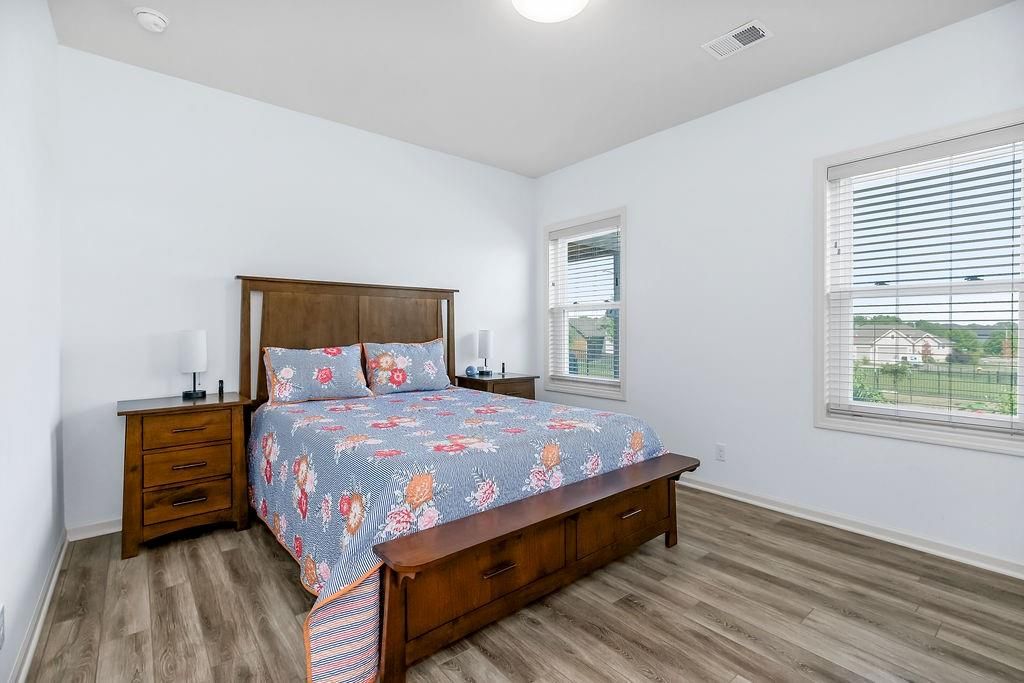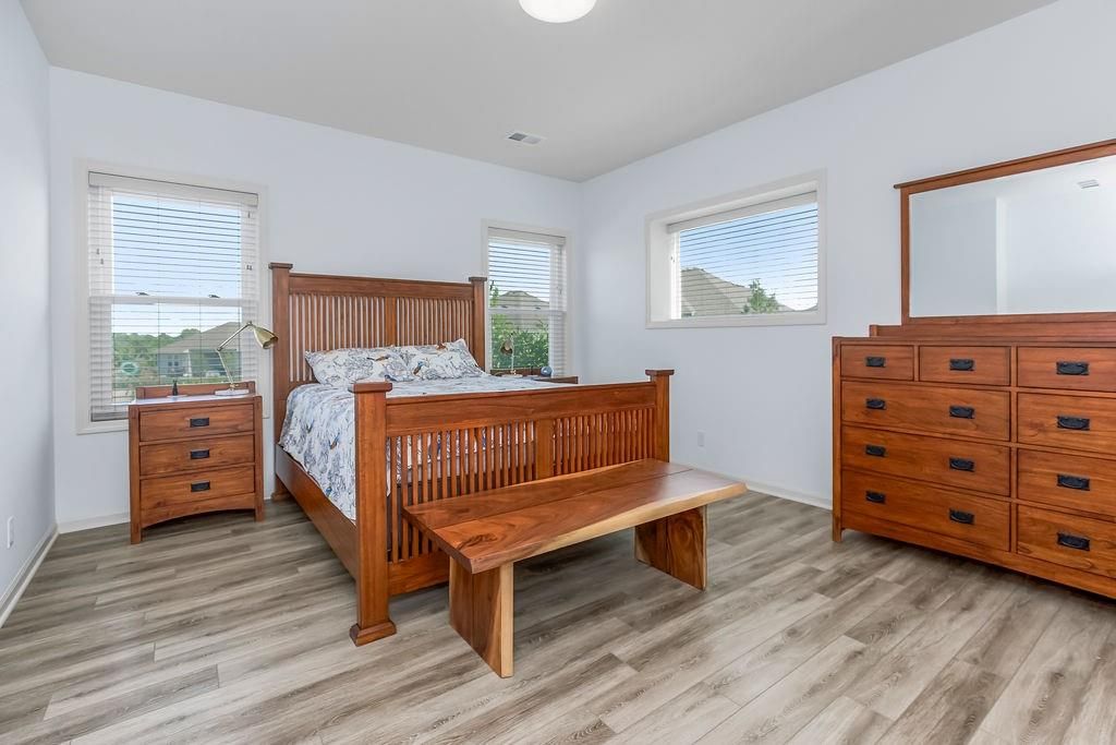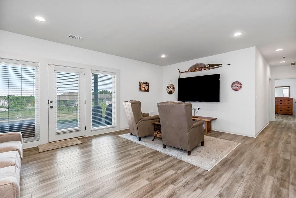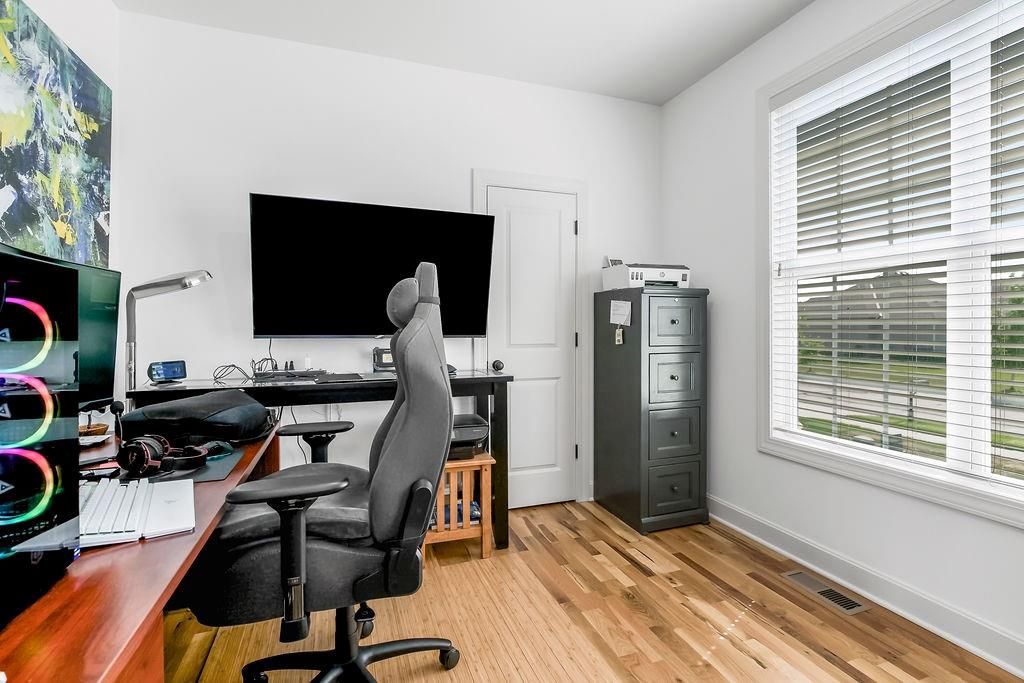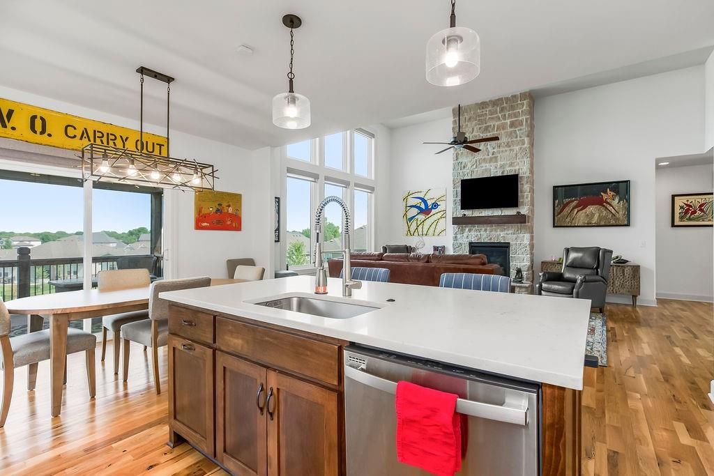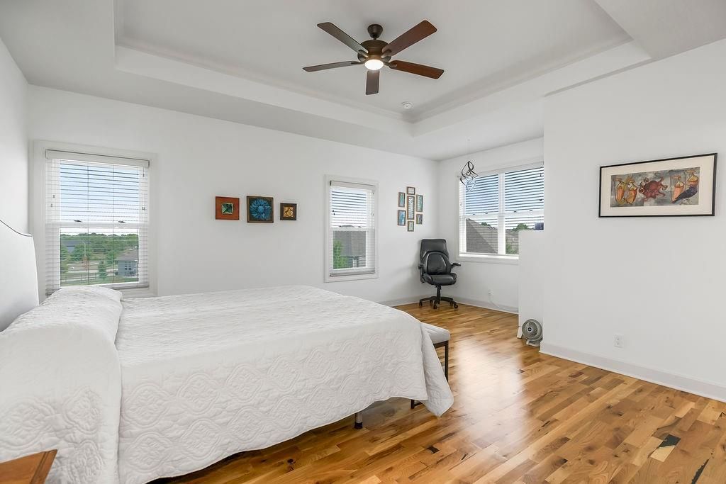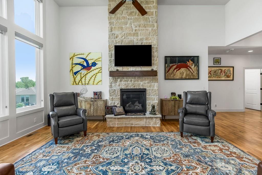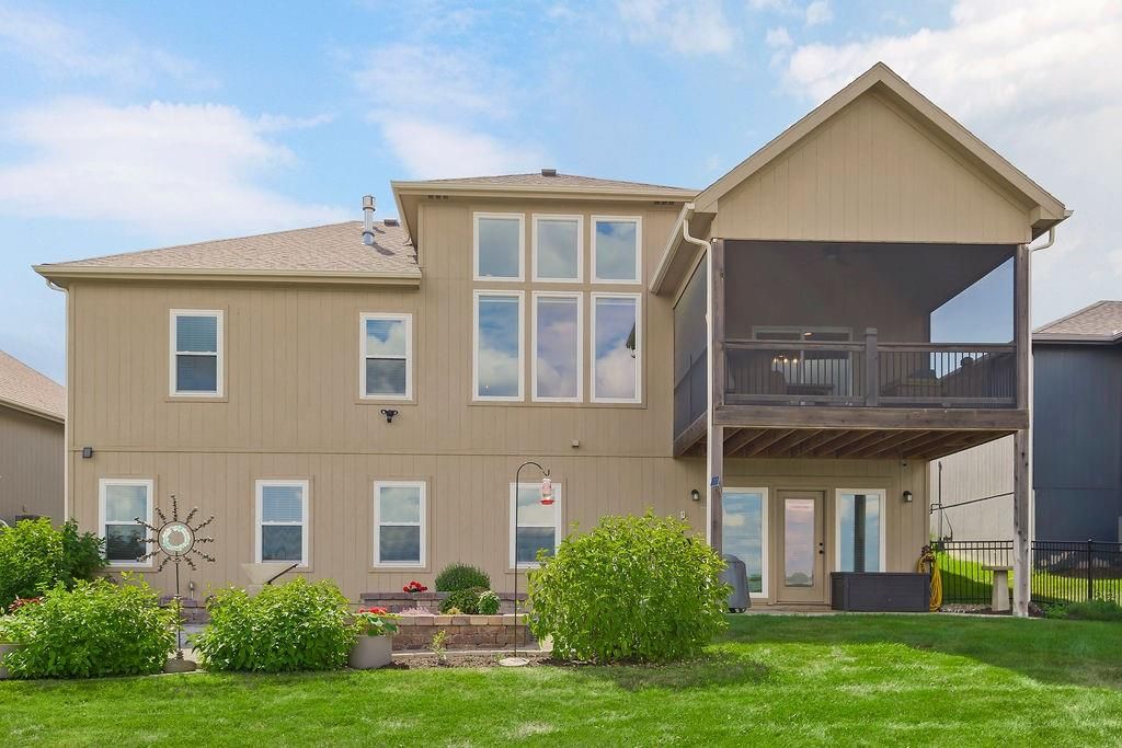 Welcome to this beautifully maintained, 5-year-young Ranch/Reverse 1.5 story home, perfectly situated on one of the best lots in the neighborhood within the desirable Cedarcrest subdivision. This thoughtfully designed home offers style, space, and modern comfort throughout. Step inside to rich hardwood floors, soaring vaulted ceilings, and an inviting feature fireplace that anchors the main living area. The main-level master suite includes a spa-like bath and walk-in closet, while an additional room on the main floor makes a perfect home office, nursery, or guest space. Downstairs, enjoy a spacious walkout basement complete with a wet bar, perfect for entertaining, plus two generously sized bedrooms and tons of additional storage. Outdoor living is just as impressive, with a screened-in deck ideal for relaxing evenings, and raised, irrigated garden beds for the green thumb in the family. All of this just 5 miles from Lenexa City Center and 15 miles from The Legends - offering quick access to shopping, dining, entertainment, and more. With the peace of mind that comes with a like new home, this is a rare opportunity you won't want to miss!
