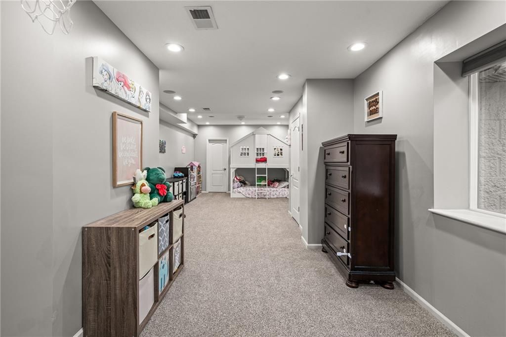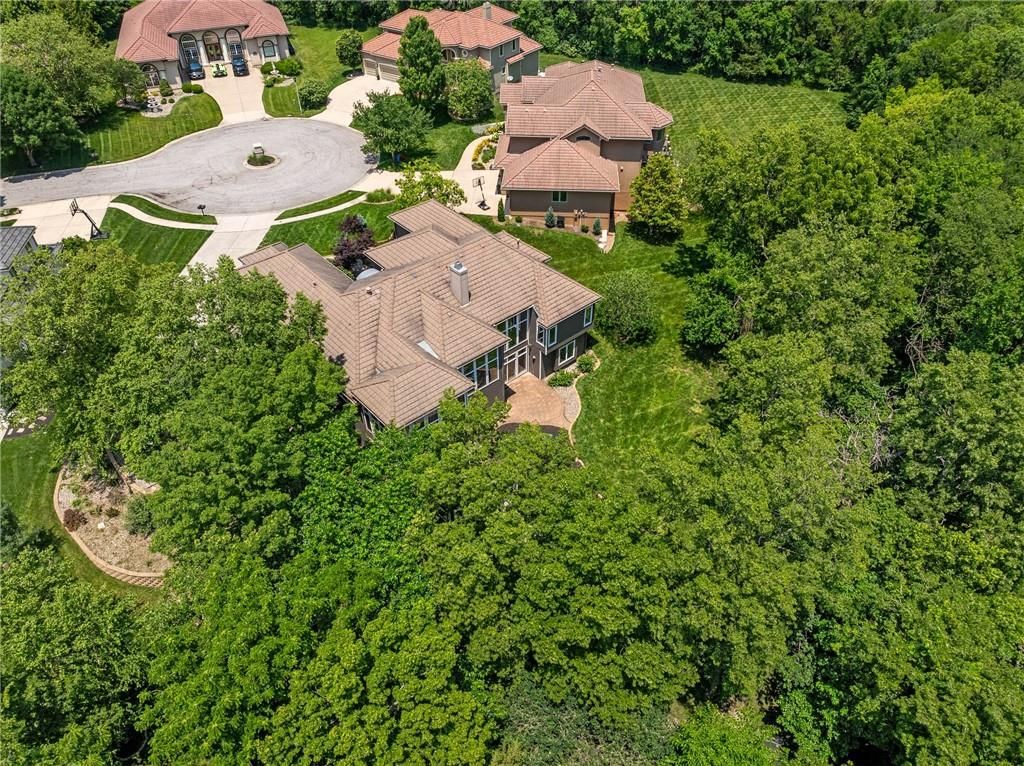 A rare opportunity in Woodland Reserve. This custom Don Julian reverse 1.5-story sits on a stunning, wooded half-acre at the end of a quiet cul-de-sac. With soaring ceilings and large windows that frame peaceful, tree-filled views, the home is filled with natural light and thoughtful design. The main level includes formal dining, a living room with see-through fireplace, hearth room, home office, and a well-appointed kitchen with custom cabinets, quartz counters, stainless appliances, double ovens, and walk-in pantry. A bright four-season sunroom opens to the deck. The spacious primary suite features a tray ceiling, built-ins, and a double-sided fireplace into a stunning en suite bath with heated tile floors, dual vanities, oversized shower, soaking tub, and walk-in closet. Also on the main level: a second bedroom with private bath, powder room, and laundry. The finished walk-out basement includes three more bedrooms (two with private baths), a family room with fireplace and wet bar, a media room, second powder room, and additional laundry. A four-car garage and built-in shed provide ample storage in this beautifully maintained home. Don't miss your chance to see this rare offering in Woodland Reserve!