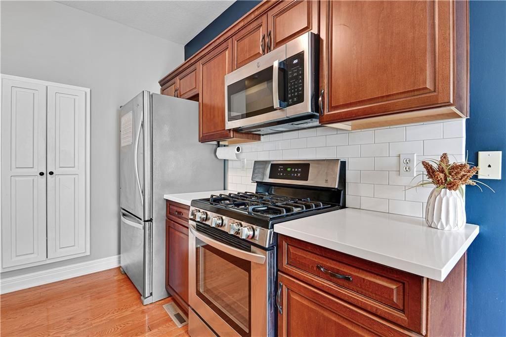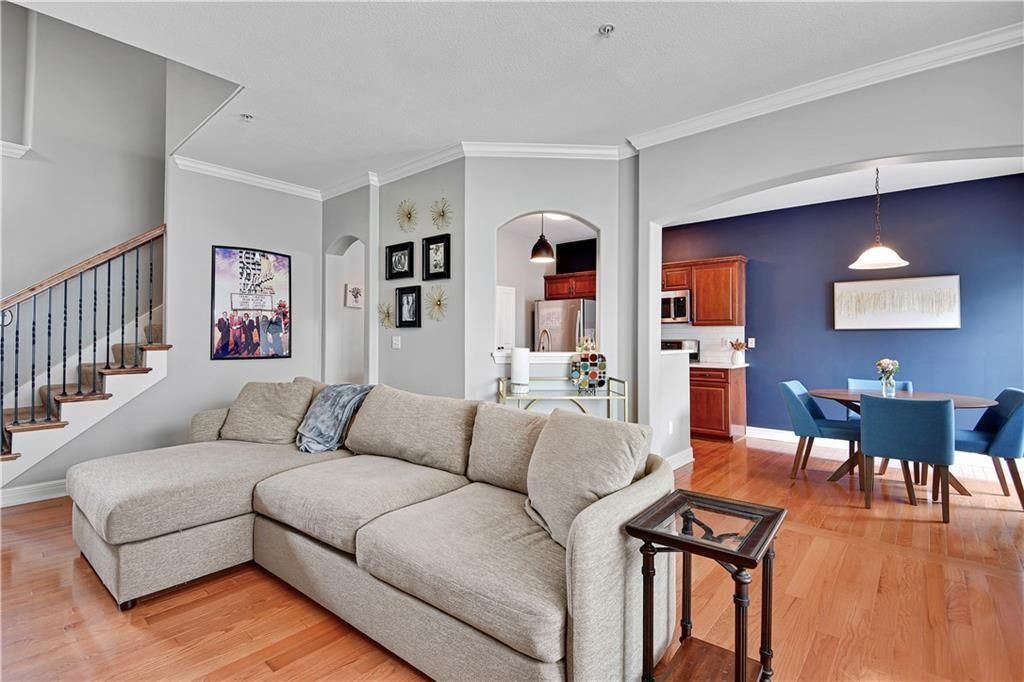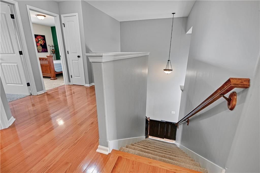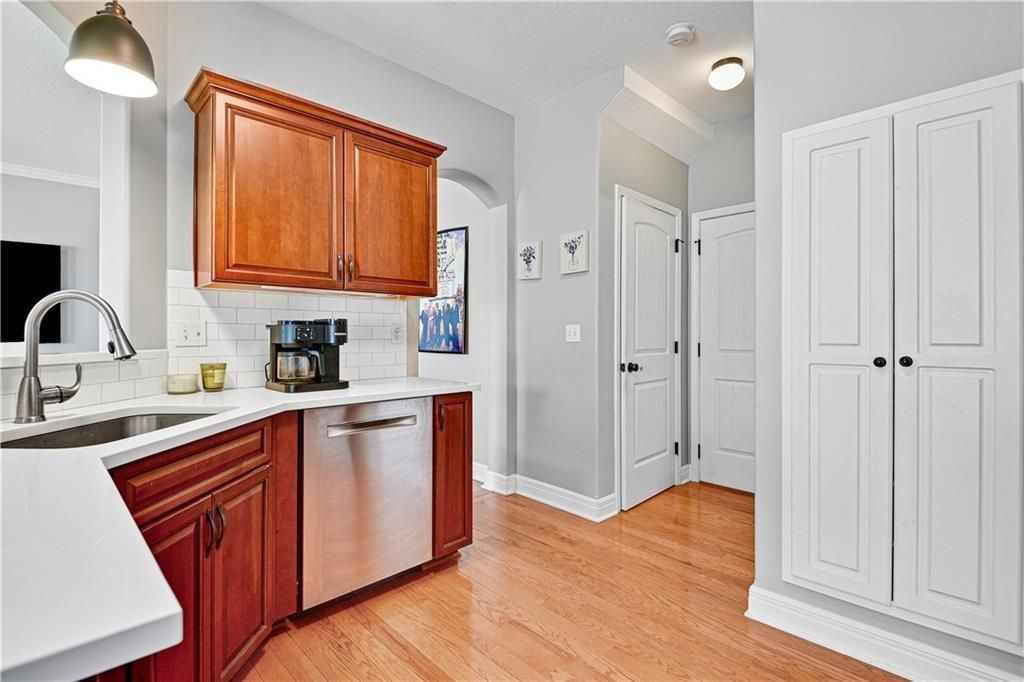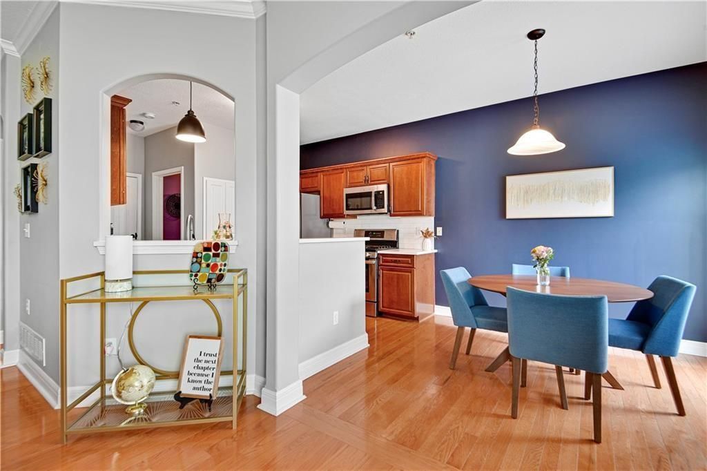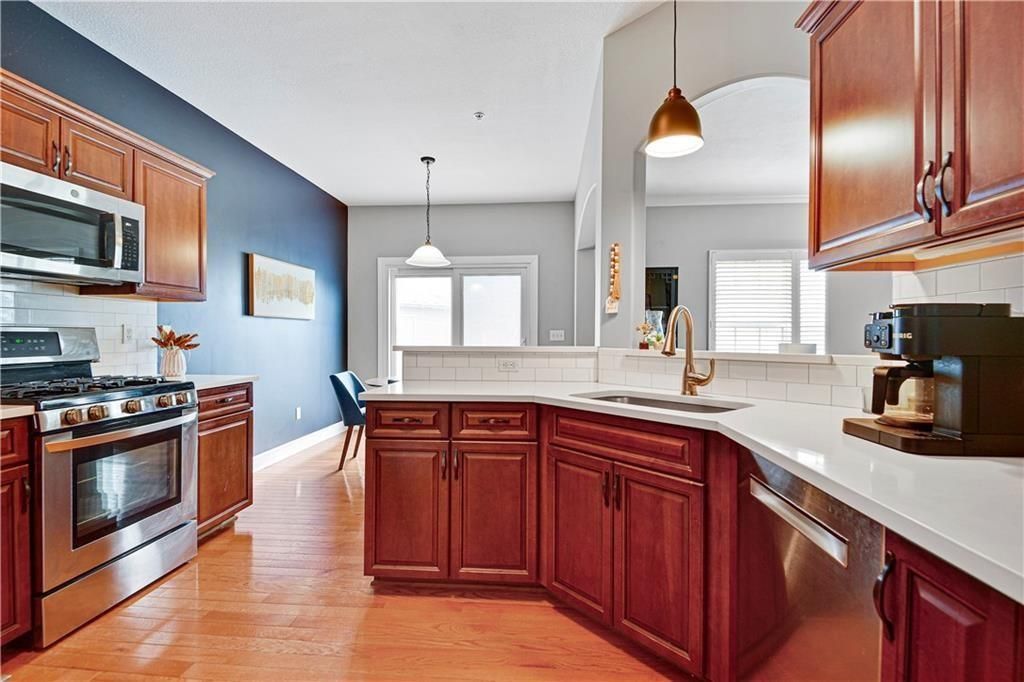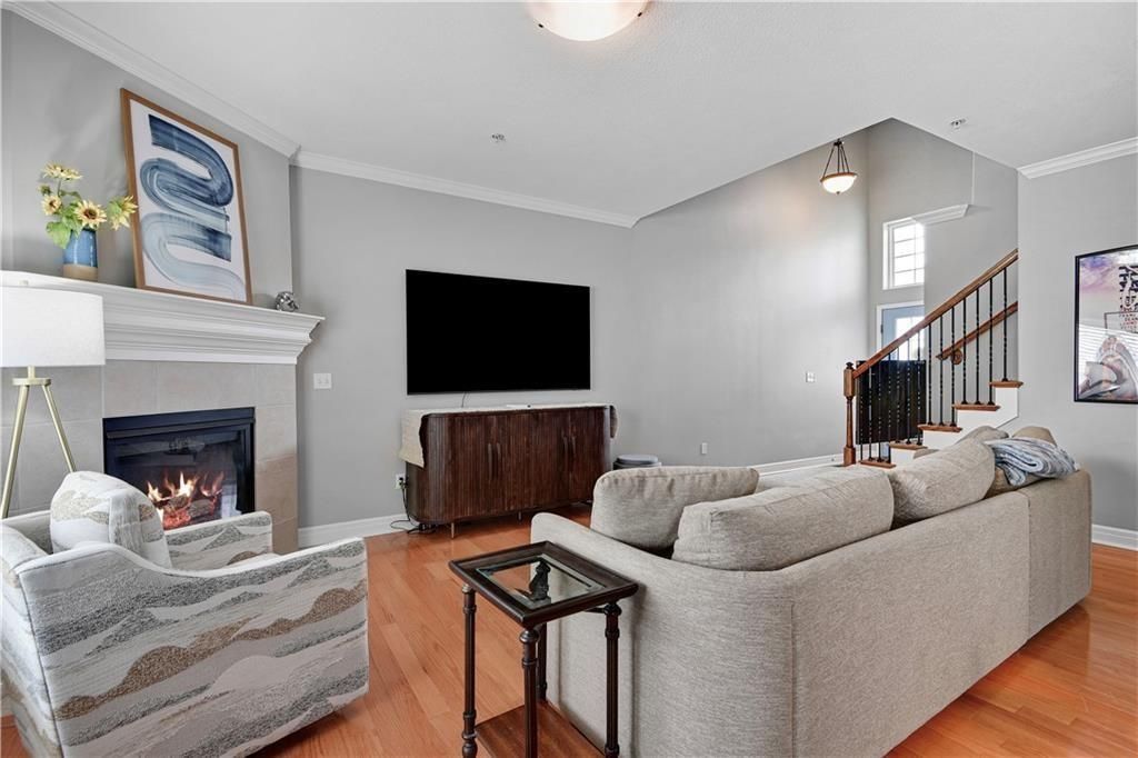 Welcome Home! Beautifully Maintained Townhome Near The New Lenexa City Center! Step into this meticulously cared-for townhome just minutes west of Lenexa City Center! Featuring gleaming hardwood floors throughout the main level and primary suite, this home offers both elegance and comfort. The vaulted living room creates a spacious, airy feel and includes a cozy gas fireplace - perfect for relaxing or entertaining. The chef's kitchen boasts stunning quartz countertops, rich stained cabinetry, and stainless steel appliances, including a gas stove. Just upstairs, a versatile loft space is ideal for a home office or reading nook. Retreat to the expansive primary suite with a large walk-in closet, dual vanities, and a spacious walk-in shower. Two additional bedrooms upstairs share a full hallway bath. Rare for the area, the finished basement includes a 4th bedroom and a bonus flex room - perfect for a gym, media room, or guest space. HOA includes: full lawn care, trash, water, exterior property insurance, roof repair/replacement, and exterior painting. This is low-maintenance living at its best!