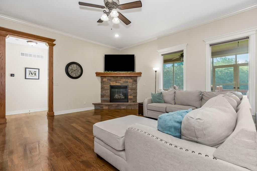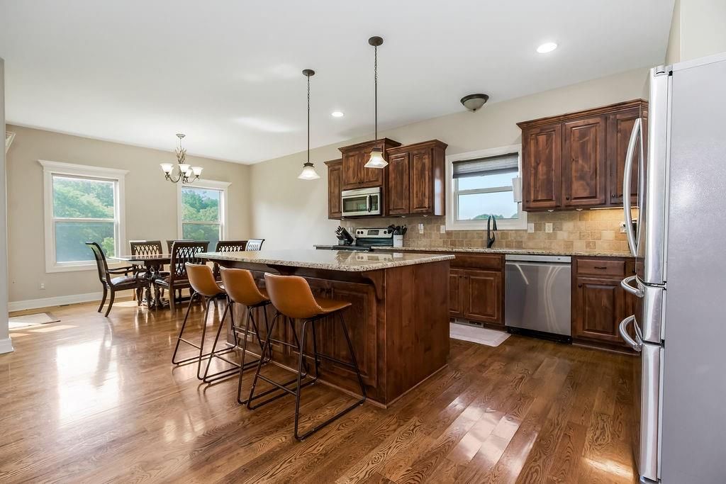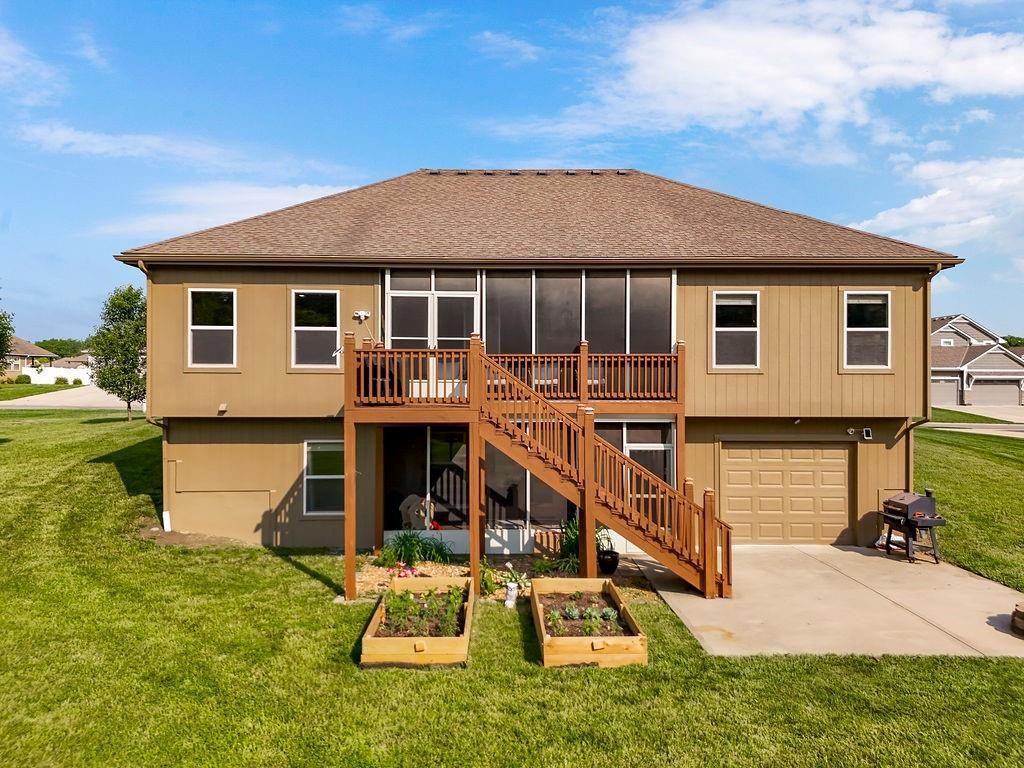 Nestled on a scenic 1.4-acre lot in the sought-after Hickory Hills Subdivision, this stunning reverse 1.5-story home offers the perfect blend of country charm and modern living. With 4 bedrooms, 3 full bathrooms, and over 3,000 square feet of beautifully finished space, this property is sure to impress. Step inside to discover an open, airy floor plan filled with natural light, soaring ceilings, and gleaming hardwood floors. The heart of the home is the chef's kitchen, featuring a spacious island, stainless steel appliances, a walk-in pantry, and the wonderful garage to pantry closet, and seamless flow into the dining and living areas - ideal for entertaining or relaxing with loved ones. The main level includes a generous primary suite with brand new carpeting with a spa-like en suite bath and walk-in closet, plus a second bedroom and full bath. The fully finished walk-out lower level expands your living space with two additional very spacious bedrooms, a full bath with double vanity, and a large family room complete with a wet bar - perfect for movie nights or game day gatherings. You'll also find a fourth garage on this level, ideal for lawn equipment, tools, or extra storage. Outdoor living is just as inviting, with a screened-in deck off the main level and a matching screened patio below - both overlooking the spacious, tree-lined backyard with a creek running along the back edge. It's the perfect setting! Additional features include a 4-car garage, newer HVAC system, water heater, and added insulation for peace of mind and energy efficiency. Located just minutes from town amenities, this home offers the serenity of the country with the convenience of the city. Don't miss your chance to make 900 Buckeye Lane your forever home - schedule your private showing today!
