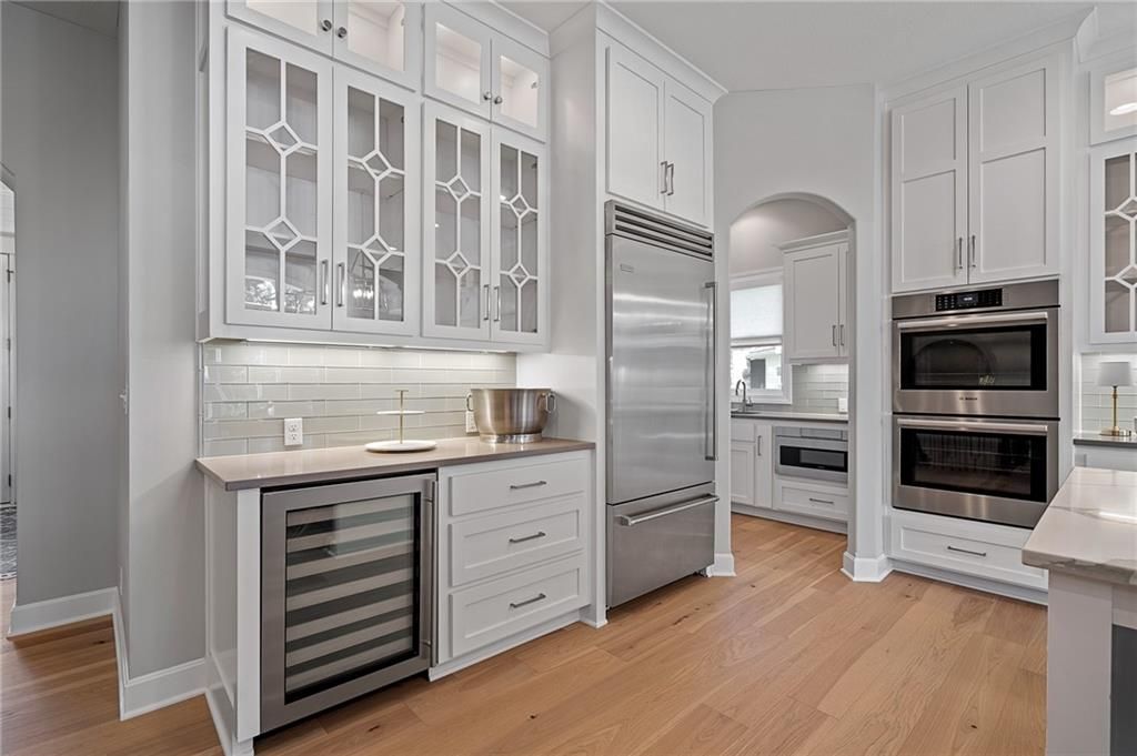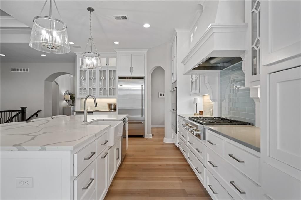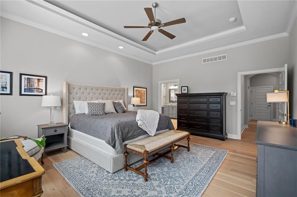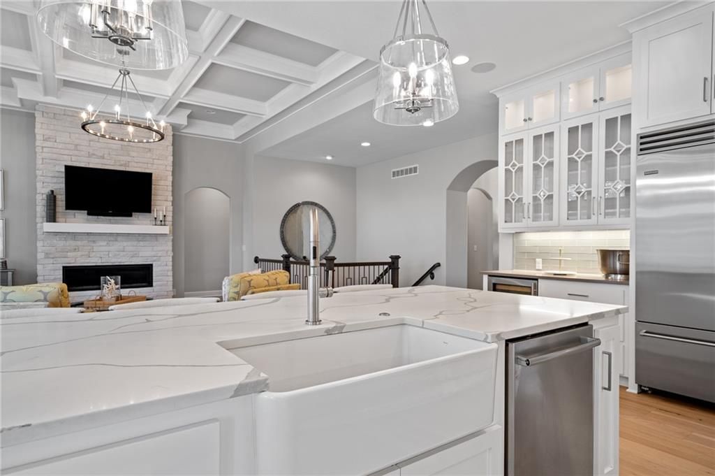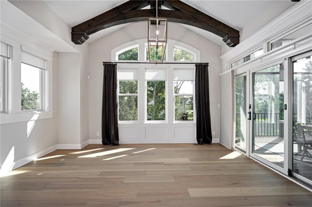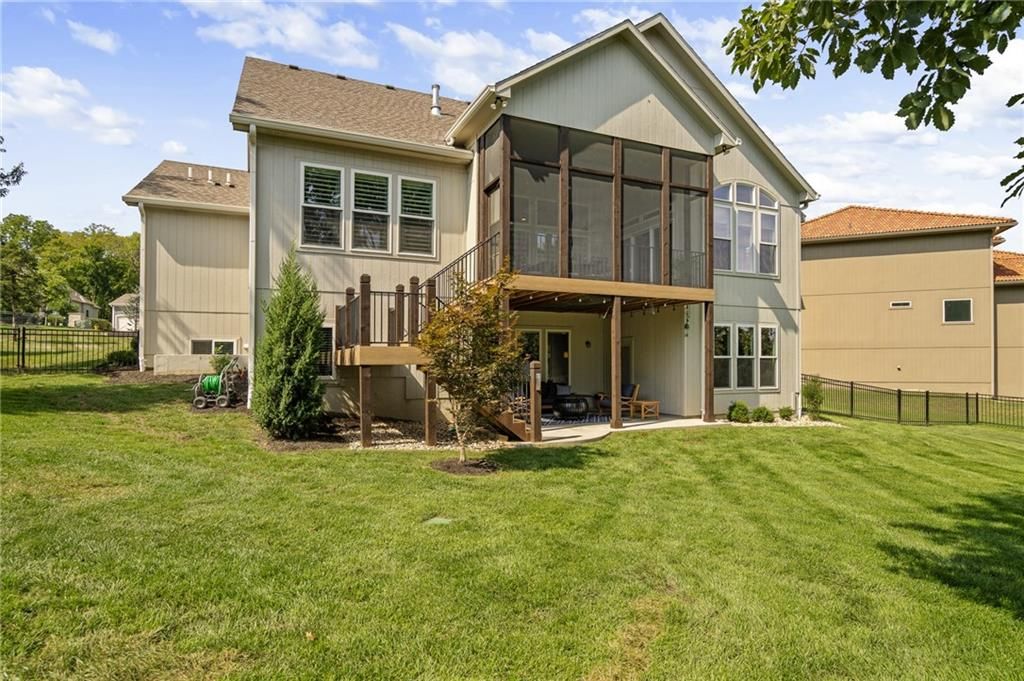 Beautiful 4-bedroom, 3.5-bath home with 4,004 sq. ft. of living space, perfectly situated on 0.47 acre cul-de-sac in the highly sought-after Timber Rock neighborhood of Lenexa. Owner/agent This zero-entry home offers true main-level living with no steps from the garage or front entry, wider hallways and archways, and a zero-entry shower in the primary suite. The open main level features new hardwood floors on main level (excluding the office/front bedroom and primary bath). Upgraded Anderson windows throughout. The chef's kitchen is a dream with professional grade appliances: Wolf range top and vent hood, built-in dual-compressor refrigerator/freezer, Bosch dishwasher, double ovens, farm sink with new pull-down sprayer faucet, a prep kitchen, huge pantry, wine cooler, and a drawer-style microwave (1 year old). Retreat to the main-floor primary suite, complete with access to the covered deck, heated bathroom floors, dual vanities, Jacuzzi soaking tub with custom built-ins, and an oversized walk-in closet. Enjoy year-round comfort and low utility costs with upgraded insulation, dual-zoned variable HVAC, and 9' ceilings on the lower level. Entertain with ease on the screened-in deck overlooking the fenced backyard or in the expansive walkout lower level with patio access to the large, fenced backyard with mature trees. Additional highlights include: Laundry on main level Generous closet space throughout Sonos surround sound system with in-ceiling speakers CAT6 wiring with redundant runs on the main level Security system Oversized rooms and abundant storage This home offers the perfect blend of luxury, comfort, and thoughtful design on nearly a half-acre lot in one of Lenexa's premier neighborhoods. Explore neighborhood trails and nearby Blackhoof Park and Lenexa Lake!