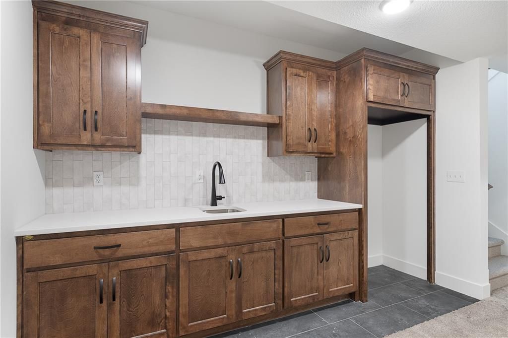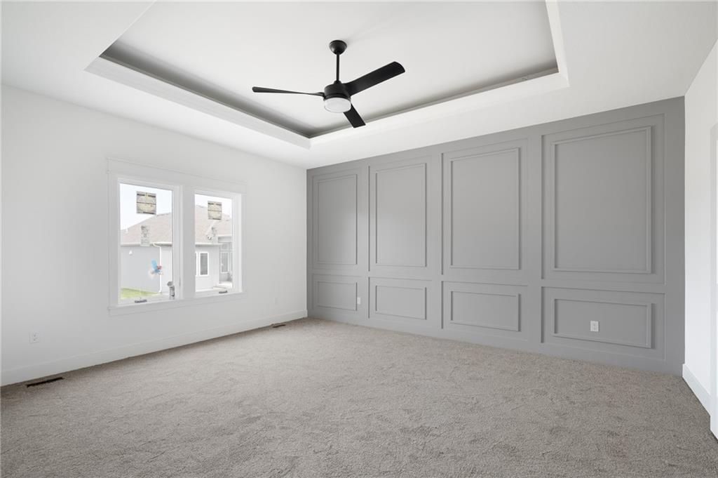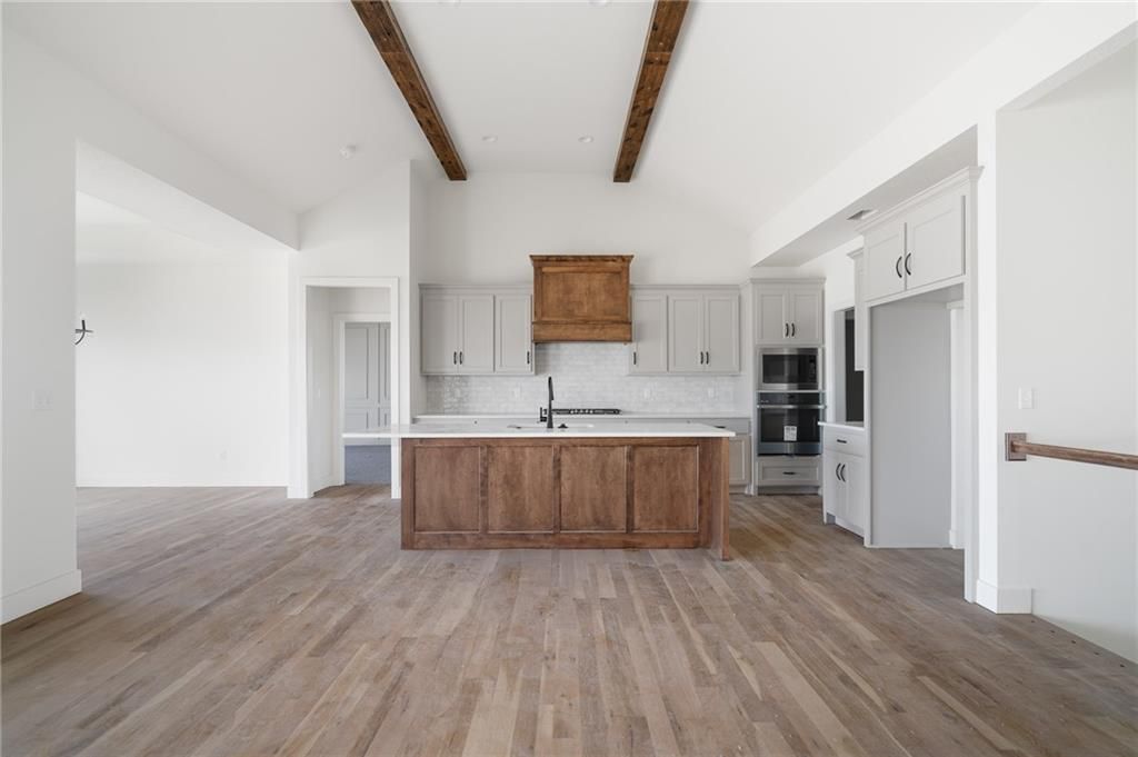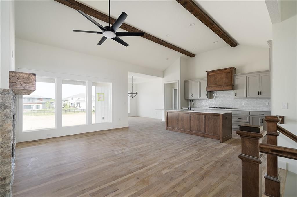 Come explore the award-winning Shea Expanded Ranch by DCB Homes! This 4-bedroom, 3-bath beauty features an inviting open layout designed for modern living. This home is loaded with upgrades and features on-trend selections & designer finishes. The main level impresses with a vaulted ceiling spanning the Great Room and Kitchen, creating a bright, airy feel and reclaimed wood beams for the perfect elevated touch. The kitchen offers abundant cabinetry, a large island, built-in appliances with a gas range, and a walk-in pantry. A spacious dining area is a buyer favorite that opens to the back deck - perfect for entertaining. The primary suite features a box vault & accent wall in the bedroom, big walk-in shower, freestanding tub, double vanities, and a generous walk-in closet. Two additional bedrooms and a full hall bath are conveniently located on the opposite side of the main level, along with a laundry attached to the Primary and mudroom. The finished lower level includes a large rec room with bar, fourth bedroom, third full bath, and two large storage areas. A 3-car garage completes this fantastic plan. Home is at the finish stage and ready for a quick close! **HOME IS AT FINISH STAGE AVAILABLE FOR A QUICK CLOSING. HOA dues are $750 annually for the master dues and $200 a month for the soft maintenance (lawn & snow removal only).** Prairie View at Creekside Woods is a new homes community w/ high-quality homes available now & new lots available. Feeds into premier Olathe Schools - Canyon Creek Elementary, Prairie Trail Middle and Olathe NW High School.