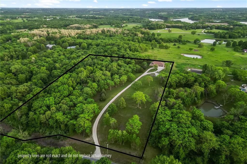 This Secluded 10-Acre Estate off paved roads offers a Customer Built Home with Luxury Features, 30x50 Garage, Privately Wooded Trails for hiking & exploring, & RV Amenities, All directly across from the Corp of Engineers. 3-bedroom, 2-bathroom home offers the perfect blend of comfort, seclusion, and outdoor living. Whether you're hosting guests, exploring private trails, or simply soaking in the natural surroundings, this property is a true retreat. Inside, you'll find an open-concept layout with sun-drenched living spaces, a cozy screened in porch with stone fireplace, & spacious kitchen designed for gatherings. Kitchen offers custom cabinets, large island, quartz countertops, stainless steel appliances, convenient pot filler, and large walk-in pantry cleverly doubles as a storm shelter with steel construction, offering peace of mind during Missouri's stormy seasons. The laundry and mudroom are just off the garage. The primary suite includes a generous walk-in closet and an en-suite bathroom for your own quiet sanctuary. Onyx Shower with glass door, soaking tub, & radiant heated floors throughout the home. The secondary bedrooms offer walk-in closets, and the third bedroom could be used as a home office. Outside, discover private wooded trails perfect for hiking, riding, or nature watching. Oversized 4-car tandem garage gives you ample room for vehicles, hobbies, or a workshop. This property includes full RV hookups - ideal for guests, travel lovers, or future rental potential or FUTURE SHOP!!! Step inside to discover radiant heated floors, spray foam insulation for energy efficiency, a thoughtfully designed open floor plan with upscale finishes. Additional features include a central vacuum system, hard-wired security camera system, & ceiling speakers throughout the home, garage, & patio for integrated sound and security. Smithville Schools. No HOA. Minutes to Smithville Lake for fishing, boat ramp access, camping, & more. Appraisal of $795k available to buyers.