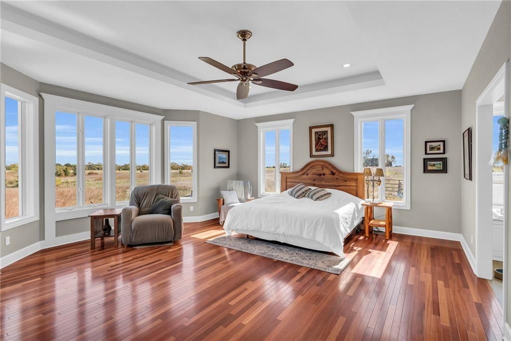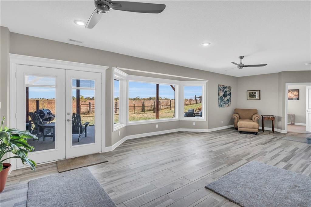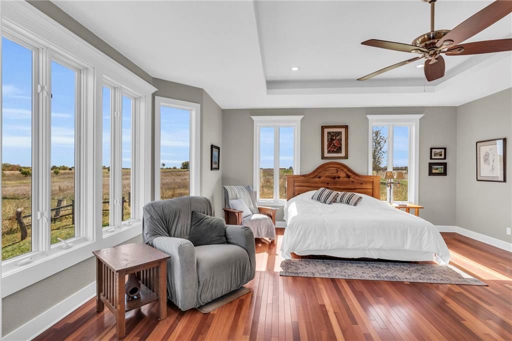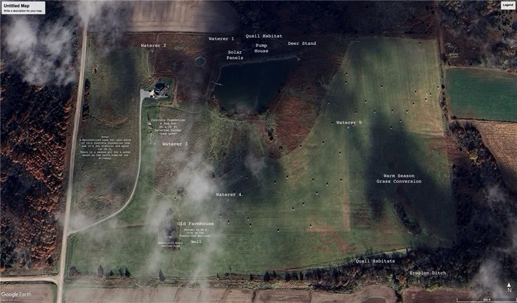 Welcome to your serene retreat! This charming four-bedroom ranch home with walkout basement is nestled on a sprawling 64-acre property, offering a perfect blend of comfort and nature. The spacious layout features an open concept living area, ideal for family gatherings and entertaining, while large windows throughout the home flood the space with natural light. The oversized kitchen boasts hard surface countertops, marble tile flooring, large pantry, custom cabinets, perfect for the cooking enthusiasts. The master bedroom features a see-through fireplace and master bath has a whirlpool tub, double vanity, walk in shower and closet! The lower level includes a convenient kitchenette, large family room perfect for entertaining or creating a cozy retreat. A three-car garage provides ample space for vehicles and storage. The property is a true haven for animal lovers, tons of deer, turkey, and wildlife galore. This property also features a watering system (solar powered pump and 5 Kobett waterers) perfect for your livestock, along with fenced pastures ideal for grazing. A picturesque, stocked pond with dock adds to the charm, perfect for fishing or enjoying tranquil moments by the water. The land is adorned with warm-season grasses, enhancing the natural beauty, and providing excellent grazing. This home has a brand-new roof and gutters. The property also has a 20 x 30 concrete foundation and pad with available electric as well as two water hookups to build a detached garage, shop, barn or second home. With no neighbors nearby, you'll enjoy complete privacy in this peaceful rural setting. Whether you seek a family home, a hobby farm, or a weekend getaway, this property is a must-see!