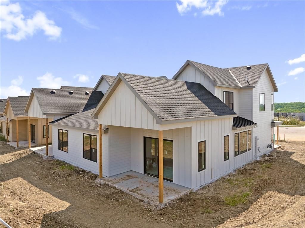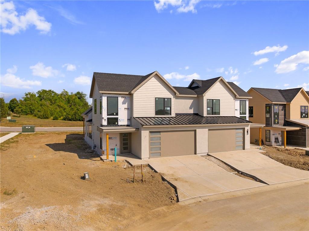 Discover modern, low-maintenance luxury living in this stunning 1.5-story villa featuring contemporary Elevation A with a modern garage door with glass panels and modern front door. Thoughtfully designed with the Primary Suite on the main level, this home offers an open, airy floor plan that seamlessly connects the Kitchen, Great Room, and outdoor patio - perfect for everyday living and entertaining. Upstairs, you'll find two spacious bedrooms with walk-in closets, a versatile loft area, and plenty of extra storage. Set in a one-of-a-kind community that blends residential comfort with walkable access to dining, shopping, and entertainment at Vista Village, this is more than a home - it's a lifestyle. Enjoy top-tier amenities including a clubhouse with a pool, fitness center, entertainment space, pickleball courts, and a putting green. Monthly HOA dues cover private streets, lawn care, snow removal, and irrigation - providing ease and peace of mind year-round. Located in a prime Lenexa setting near Prairie Star Parkway and Ridgeview, you're just steps from scenic trails, minutes to Lenexa City Center, close to multiple golf courses, and have easy access to K-10 and I-435. HOME IS AT FINISH STAGE. Ask about our BUYER BONUS promotion. Now is the PERFECT time to pick your perfect villa & make selections. Taxes are estimated.