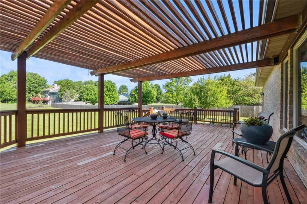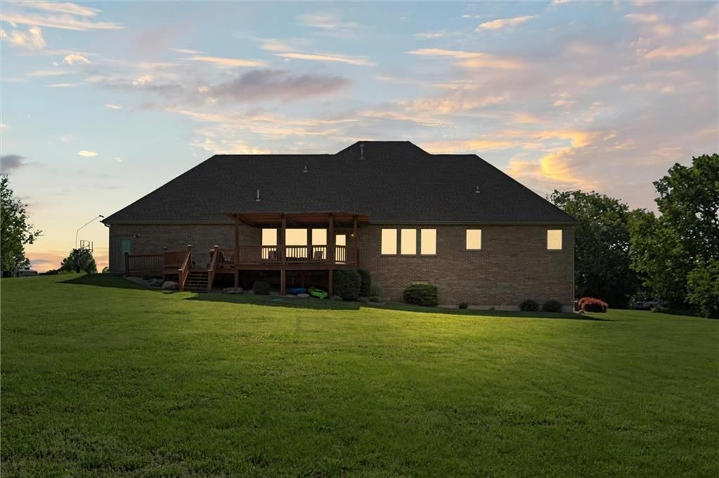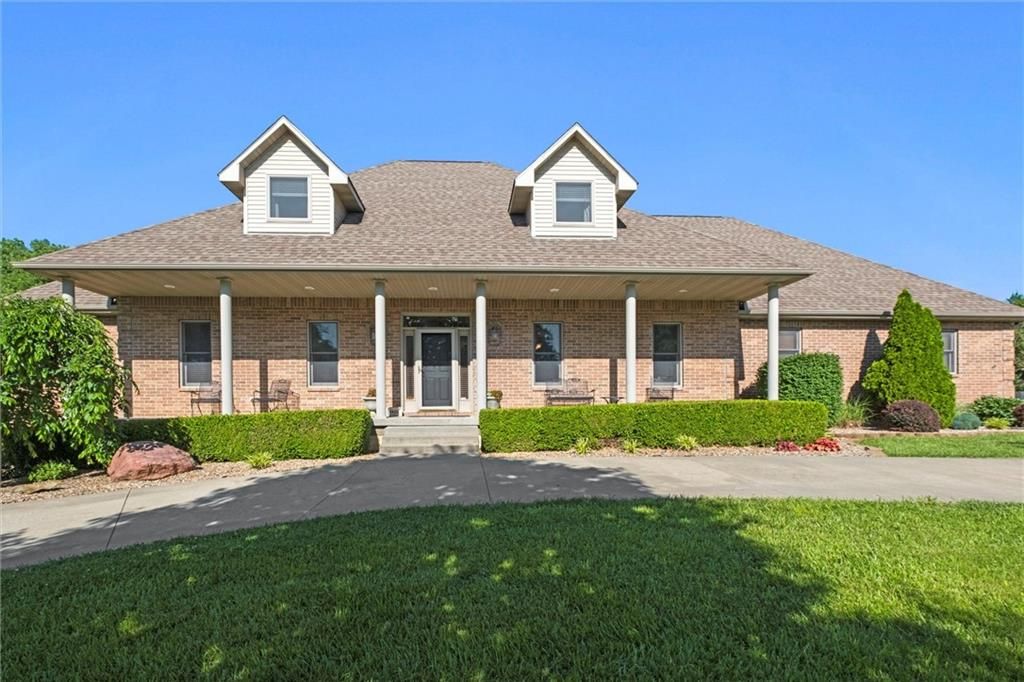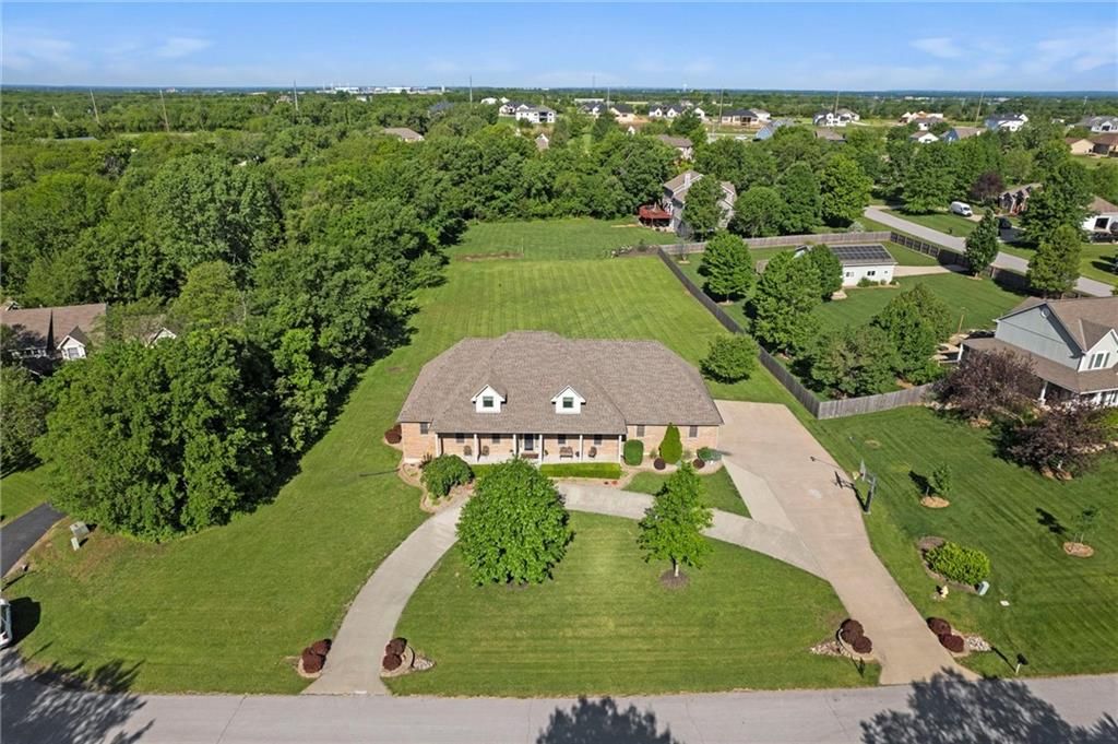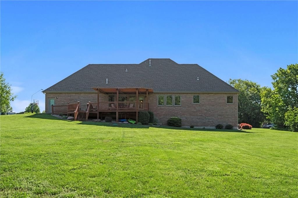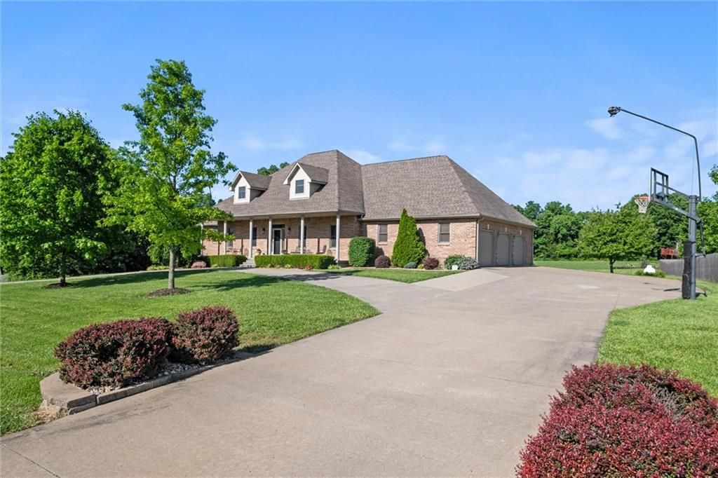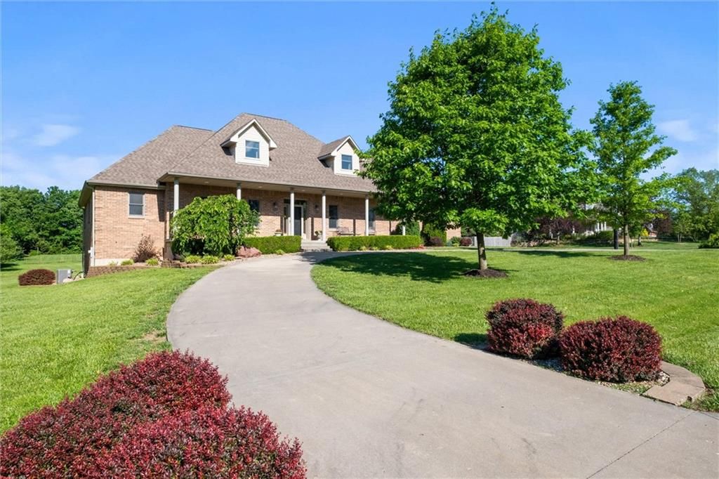 No need for fancy adjectives to describe this already remarkable home! Schedule a visit to see for yourself this meticulously clean and well-maintained ALL BRICK 1.5 story home situated on a 1.26 acre lot offering solid QUALITY with room for your personal touch. This home boasts 9-foot ceilings, Andersen windows, 2 x 6 construction, solid-core doors & trim upgrade (on the main level), an oversized 3 car garage with ample workspace & storage area, a concrete circle driveway, a spacious laundry/mudroom, a large covered front porch, and an established front landscape. On the back of the home is an attached deck and pergola plus a huge backyard that has plenty of space for a future pool and detached garage. The primary suite has an enormous bedroom, walk-in closet, double vanity, large tub, and walk-in shower. There is a second main-level bedroom (or sitting room), and a den/office with french doors. Two additional bedrooms each with large closet space share a full bath on the upper level. Bonus: two light-filled dormer windows that create the perfect reading nooks. Delight in not only one, but two staircases allowing basement access from both inside the home as well as the garage. Already installed in the unfinished lower level is a reverse osmosis whole home water filter, a water softener, a radon mitigation system, plumbing for a bath, and three large windows. There is additional work & storage space along with 9-foot ceilings and an open-web floor joist system all adding ease in completing the basement finish. With EASY K-10 access and HIGHLY-RATED De Soto Schools, this property combines quality and space in a beautiful setting. Schedule a visit and see for yourself - don't miss this opportunity to explore what this remarkable home has to offer!
