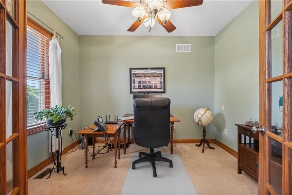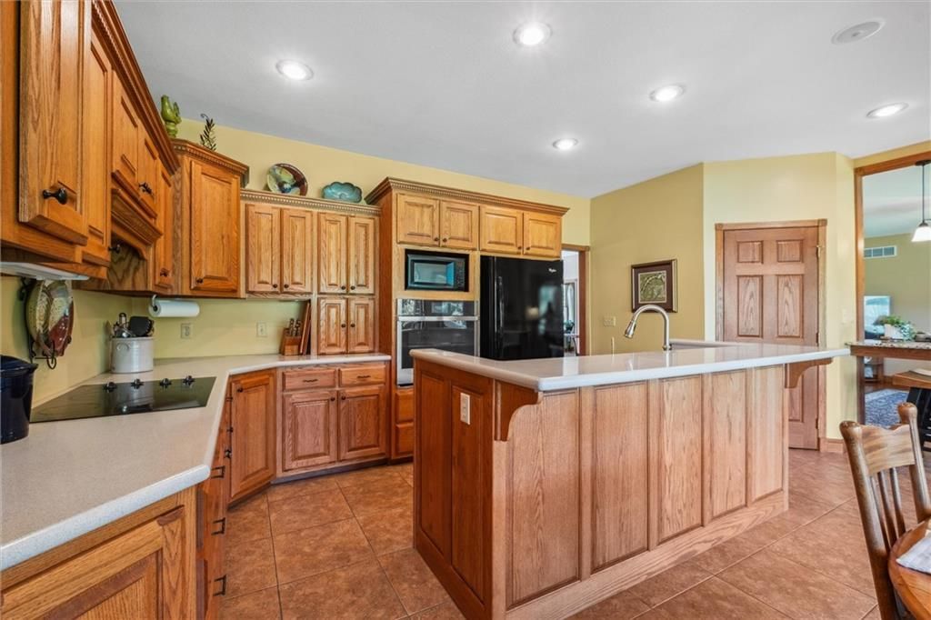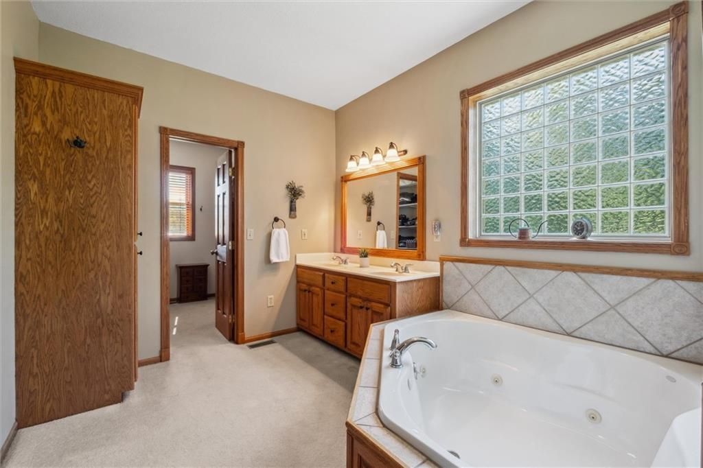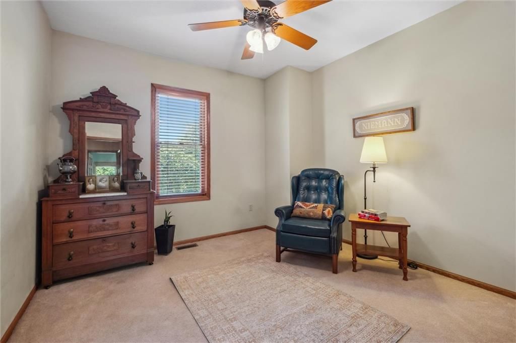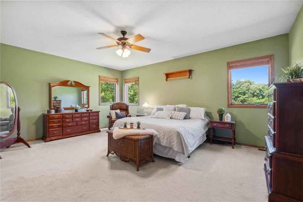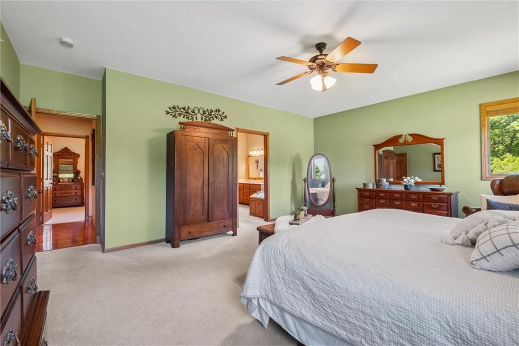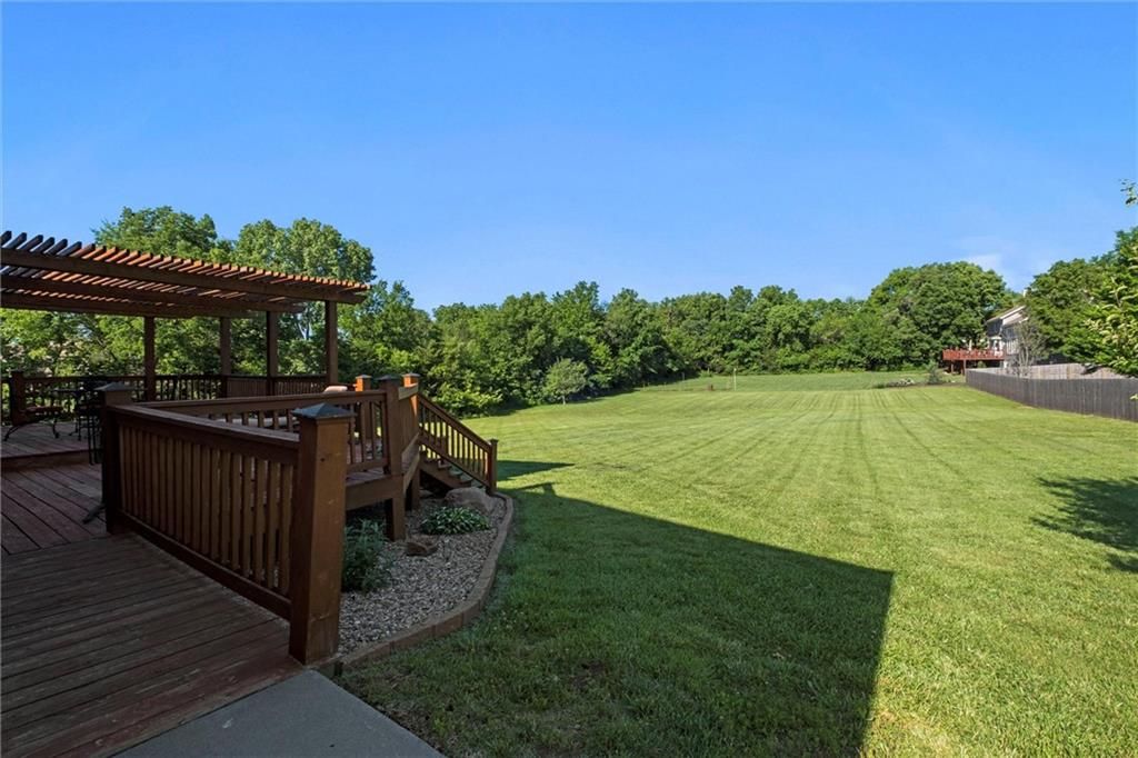 No need for fancy adjectives to describe this already remarkable home! Schedule a visit to see for yourself this meticulously clean and well-maintained ALL BRICK 1.5 story home situated on a 1.26 acre lot offering solid QUALITY with room for your personal touch. This home boasts 9-foot ceilings, Andersen windows, 2 x 6 construction, solid-core doors & trim upgrade (on the main level), an oversized 3 car garage with ample workspace & storage area, a concrete circle driveway, a spacious laundry/mudroom, a large covered front porch, and an established front landscape. On the back of the home is an attached deck and pergola plus a huge backyard that has plenty of space for a future pool and detached garage. The primary suite has an enormous bedroom, walk-in closet, double vanity, large tub, and walk-in shower. There is a second main-level bedroom (or sitting room), and a den/office with french doors. Two additional bedrooms each with large closet space share a full bath on the upper level. Bonus: two light-filled dormer windows that create the perfect reading nooks. Delight in not only one, but two staircases allowing basement access from both inside the home as well as the garage. Already installed in the unfinished lower level is a reverse osmosis whole home water filter, a water softener, a radon mitigation system, plumbing for a bath, and three large windows. There is additional work & storage space along with 9-foot ceilings and an open-web floor joist system all adding ease in completing the basement finish. With EASY K-10 access and HIGHLY-RATED De Soto Schools, this property combines quality and space in a beautiful setting. Schedule a visit and see for yourself - don't miss this opportunity to explore what this remarkable home has to offer!