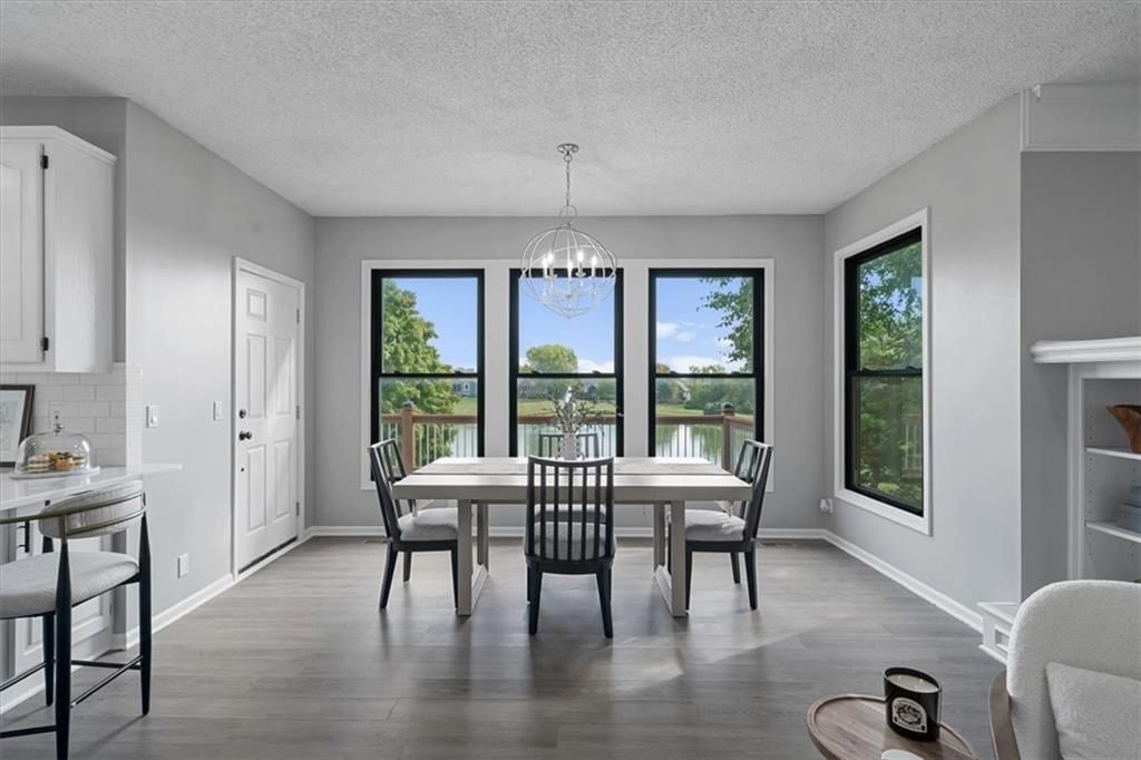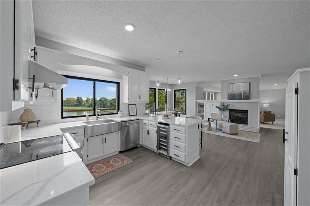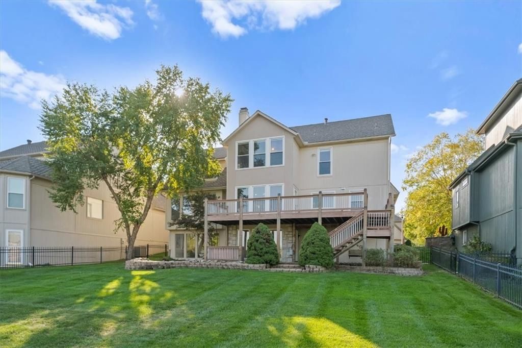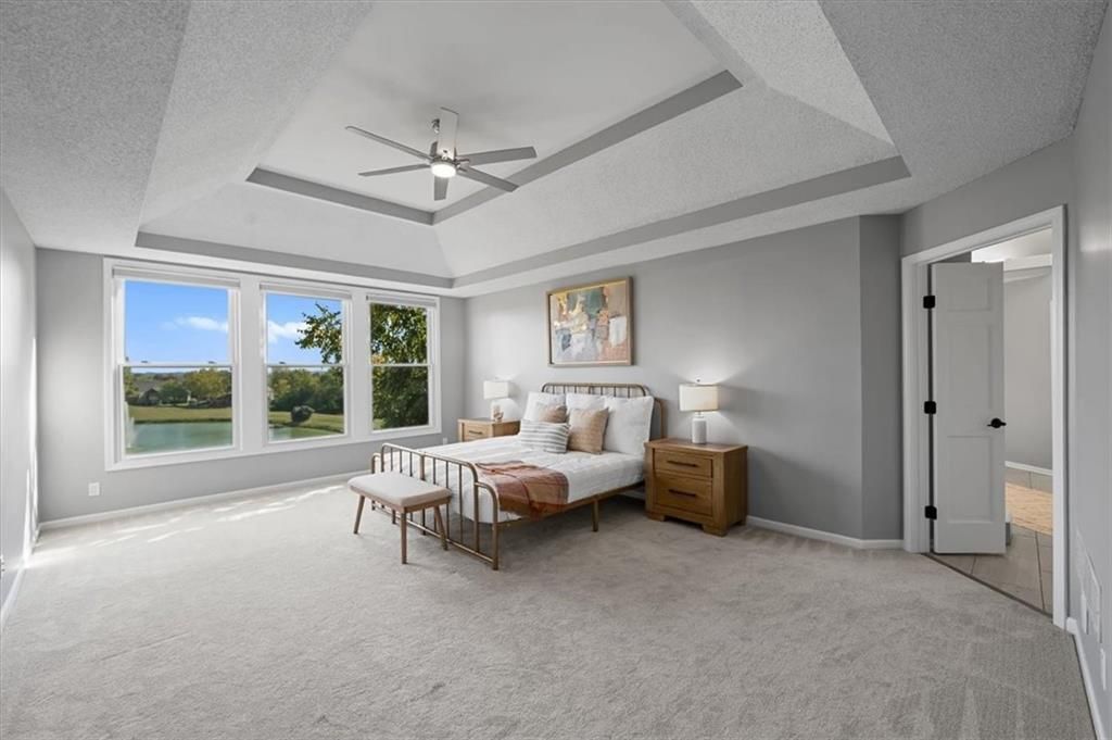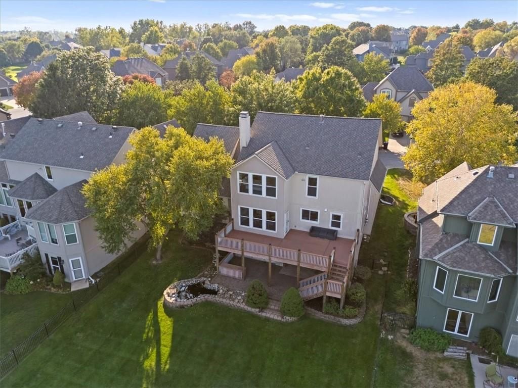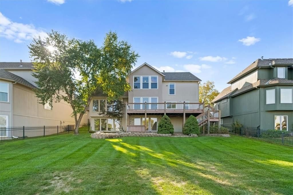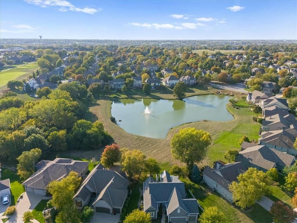 Welcome to your private lakeside retreat in the heart of Lenexa! This stunning home sits on one of the most picturesque lots in the neighborhood - perfectly positioned to capture peaceful water views from nearly every room. The updated kitchen and bathrooms blend modern comfort with timeless style, making this home move-in ready and effortlessly elegant. Step inside to find an open, light-filled layout where the kitchen, dining area, living room, primary suite, and walkout basement are all framed by floor-to-ceiling windows overlooking the shimmering neighborhood lake and fountain. Enjoy morning coffee or evening sunsets with a view that feels like a getaway every day. If you need space this home delivers, with 4 bedrooms, 4 full baths and an additional main floor half, a dedicated office with lovely french doors, 2 dining spaces, and a bonus room in the basement. The exterior is equally impressive, with water features in both the front and back yards and a spot for a hot tub and electrical is already set up. The garage is also updated complete with epoxied floor and an EV hookup. This is more than a home - it's a rare opportunity to live lakeside in Lenexa, surrounded by beauty and tranquility while still just minutes from shops, dining, and top schools.