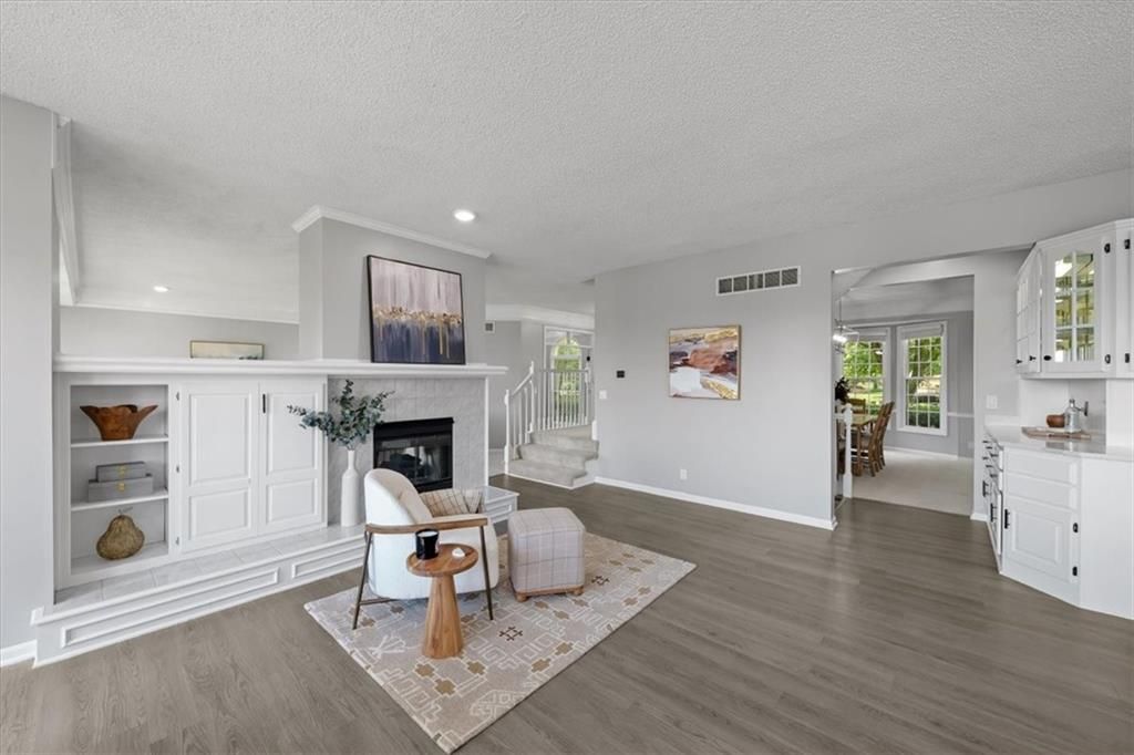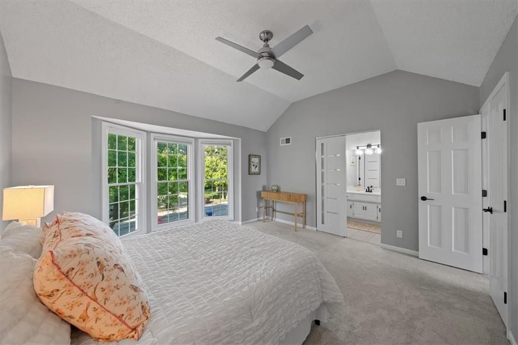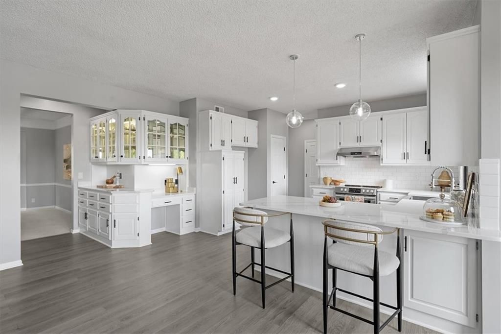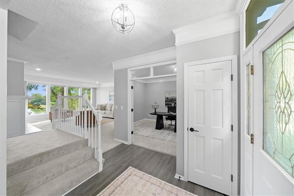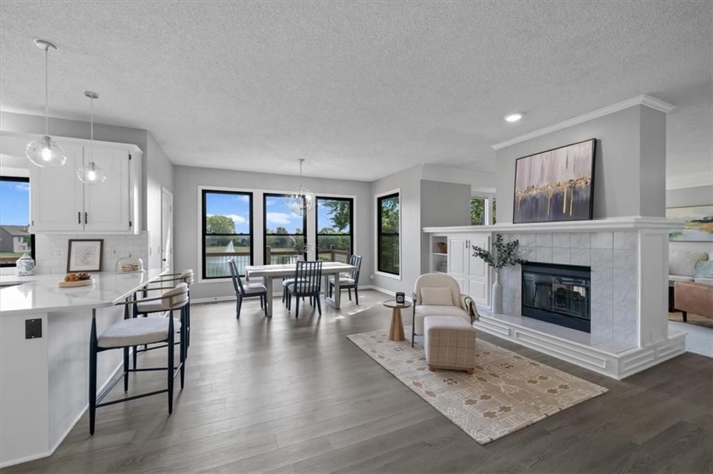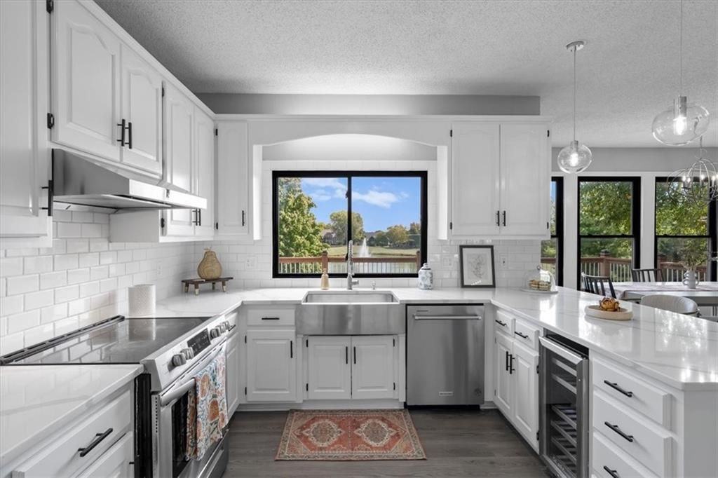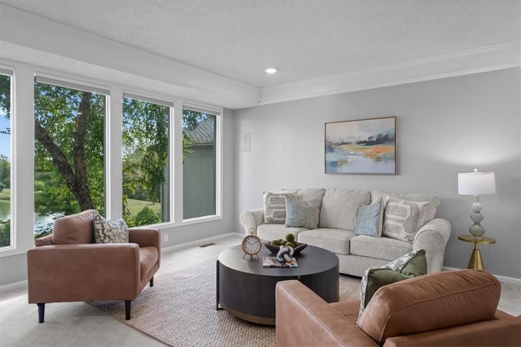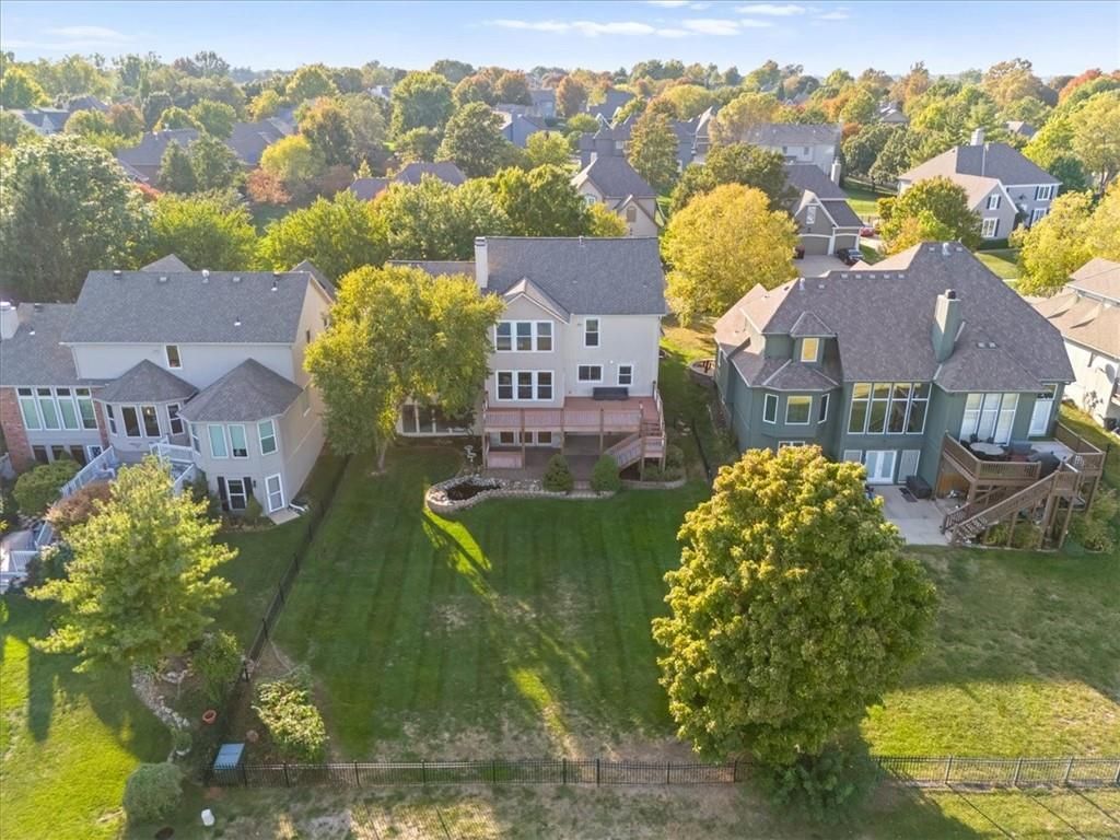 Welcome to your private lakeside retreat in the heart of Lenexa! This stunning home sits on one of the most picturesque lots in the neighborhood - perfectly positioned to capture peaceful water views from nearly every room. The updated kitchen and bathrooms blend modern comfort with timeless style, making this home move-in ready and effortlessly elegant. Step inside to find an open, light-filled layout where the kitchen, dining area, living room, primary suite, and walkout basement are all framed by floor-to-ceiling windows overlooking the shimmering neighborhood lake and fountain. Enjoy morning coffee or evening sunsets with a view that feels like a getaway every day. If you need space this home delivers, with 4 bedrooms, 4 full baths and an additional main floor half, a dedicated office with lovely french doors, 2 dining spaces, and a bonus room in the basement. The exterior is equally impressive, with water features in both the front and back yards and a spot for a hot tub and electrical is already set up. The garage is also updated complete with epoxied floor and an EV hookup. This is more than a home - it's a rare opportunity to live lakeside in Lenexa, surrounded by beauty and tranquility while still just minutes from shops, dining, and top schools.